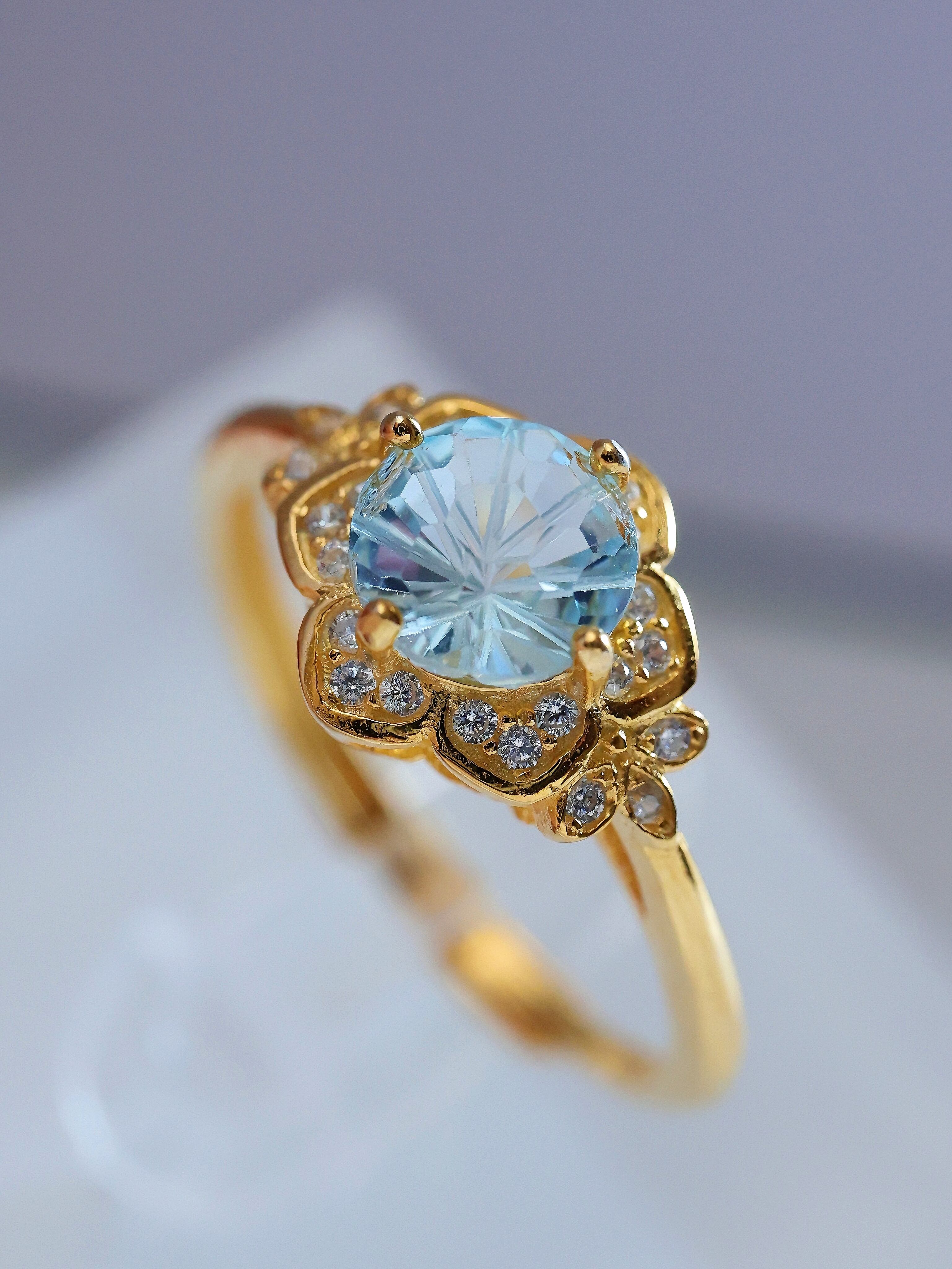 【菫・SUMIRE】11月誕生石 スカイブルートパーズ 花火カット 天然石 S925 シルバー リング