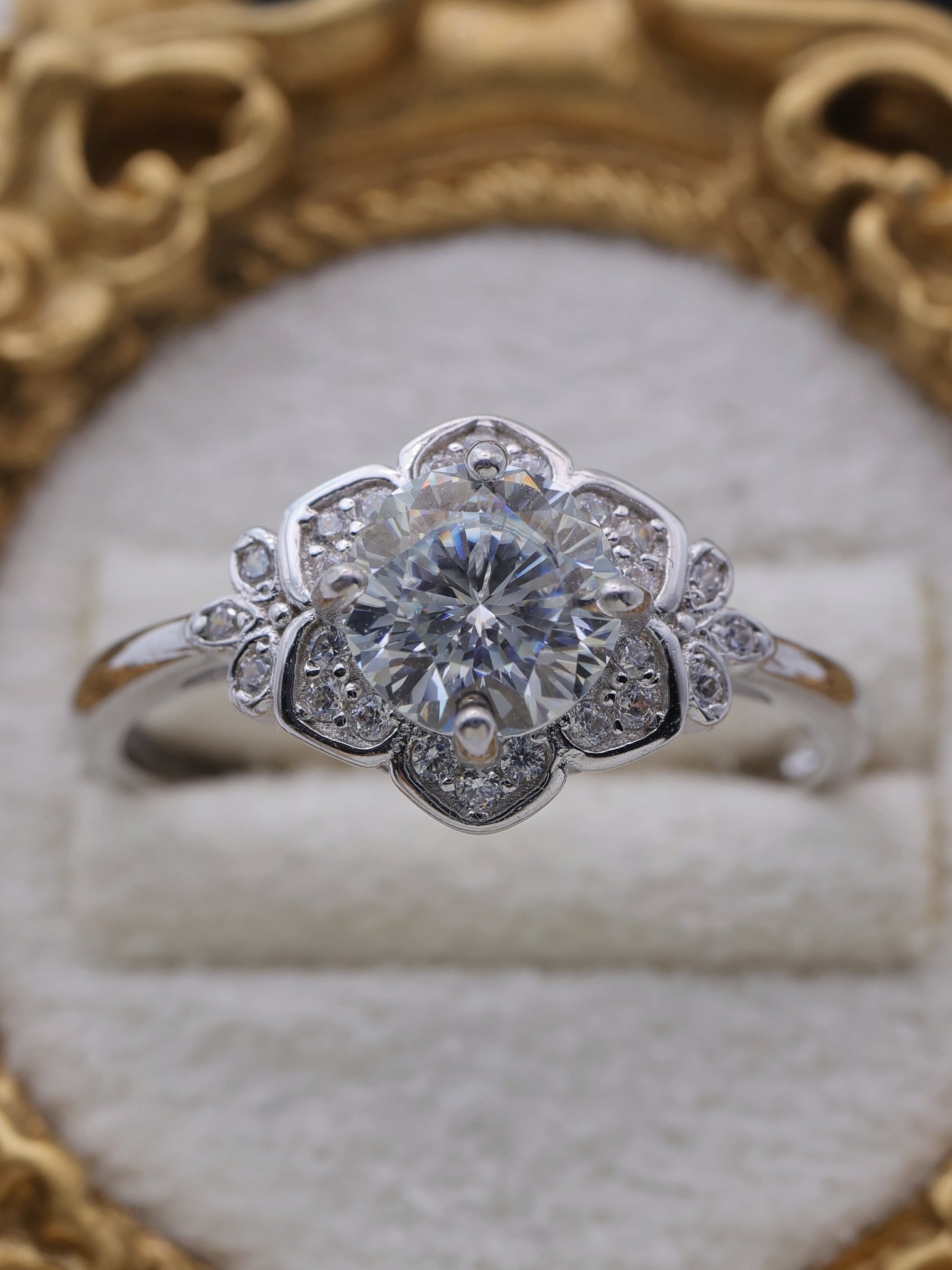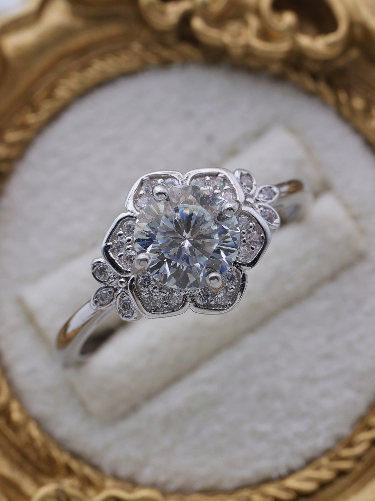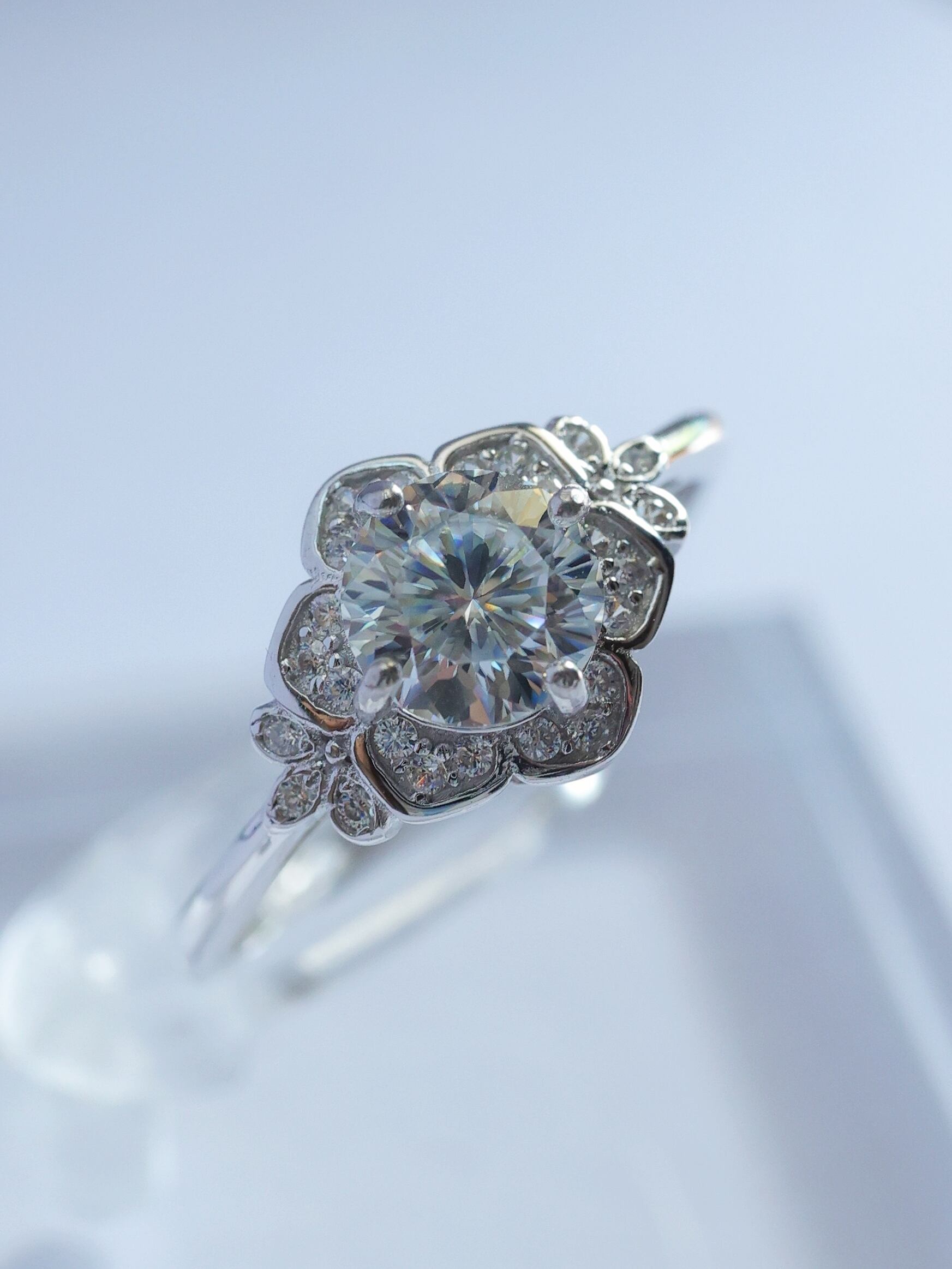 【菫・SUMIRE】VVS モアサナイト ハート&フラワーカット S925 シルバー リング