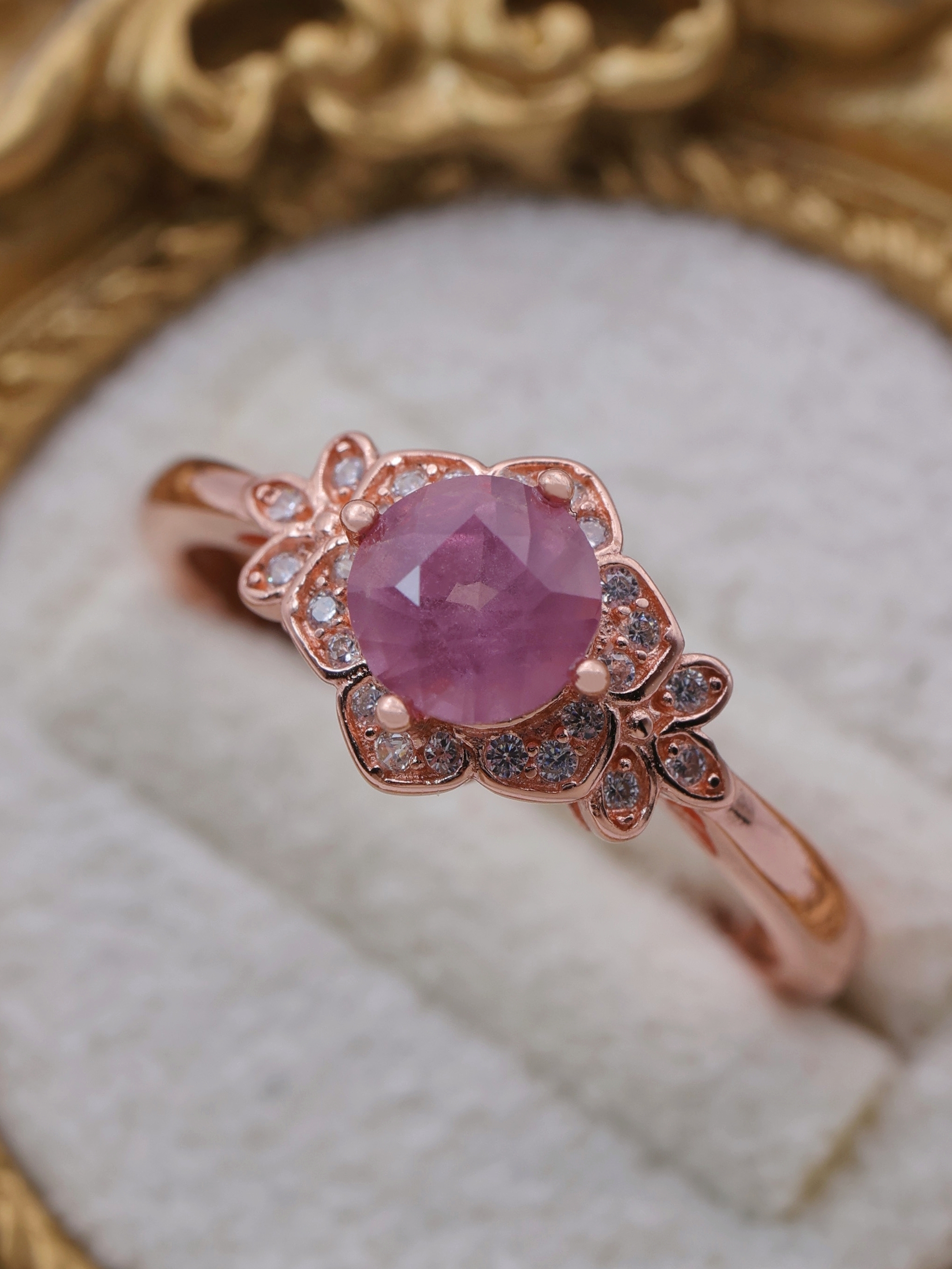 【当店オリジナル】【菫・SUMIRE(ミニ)】8月誕生石 非加熱 ピンクスピネル マヘンゲ S925 リング 花 天然石