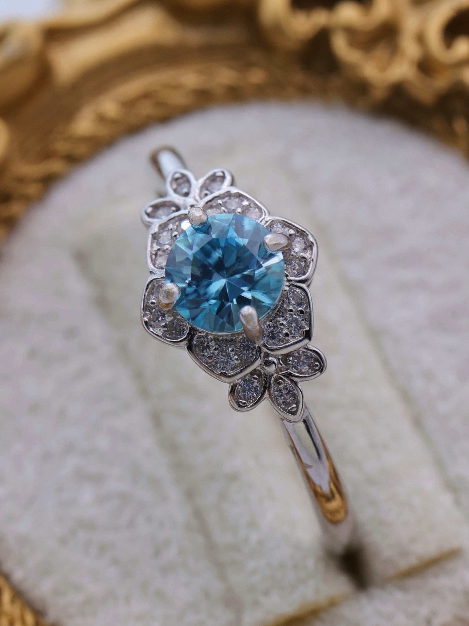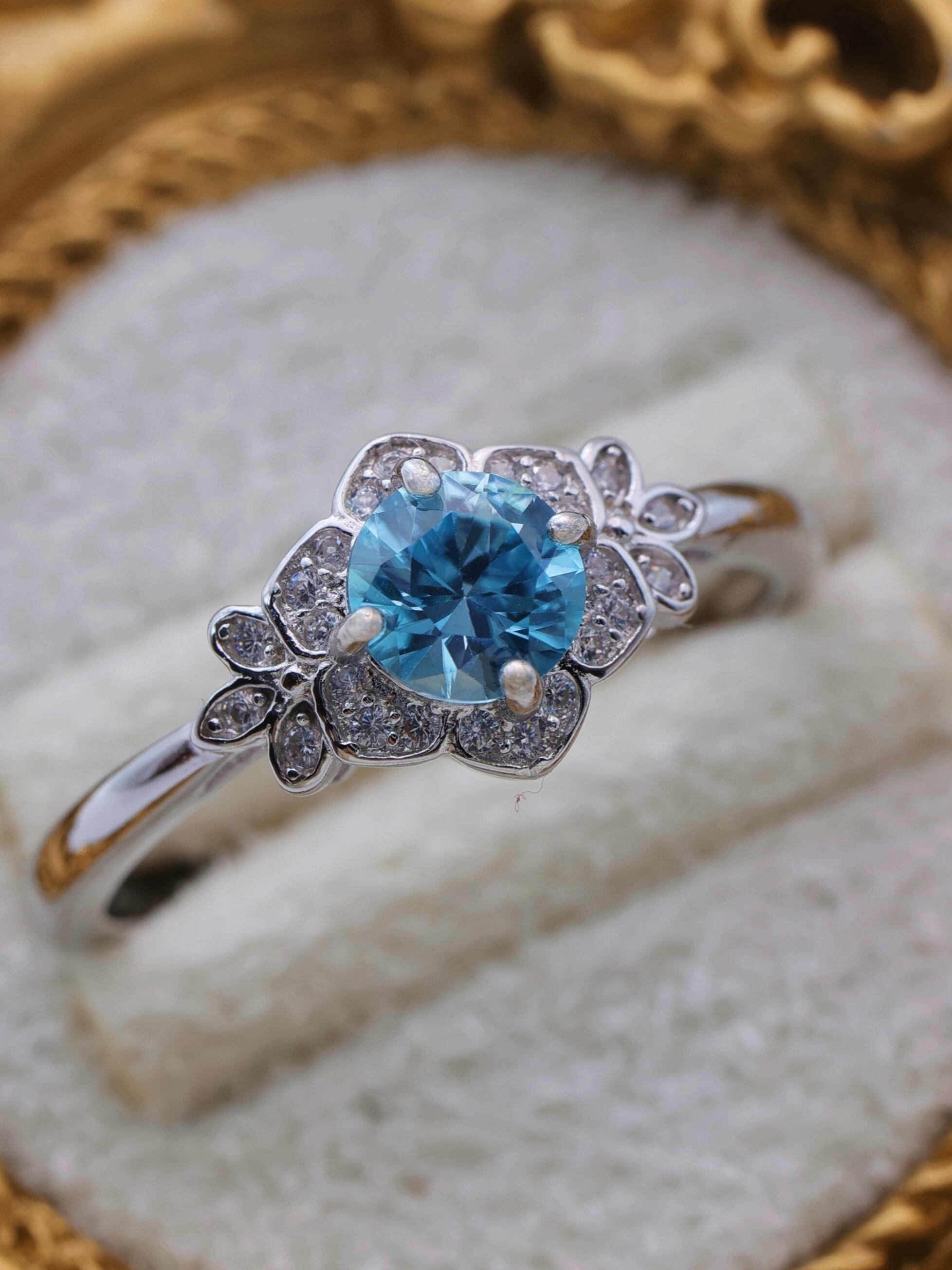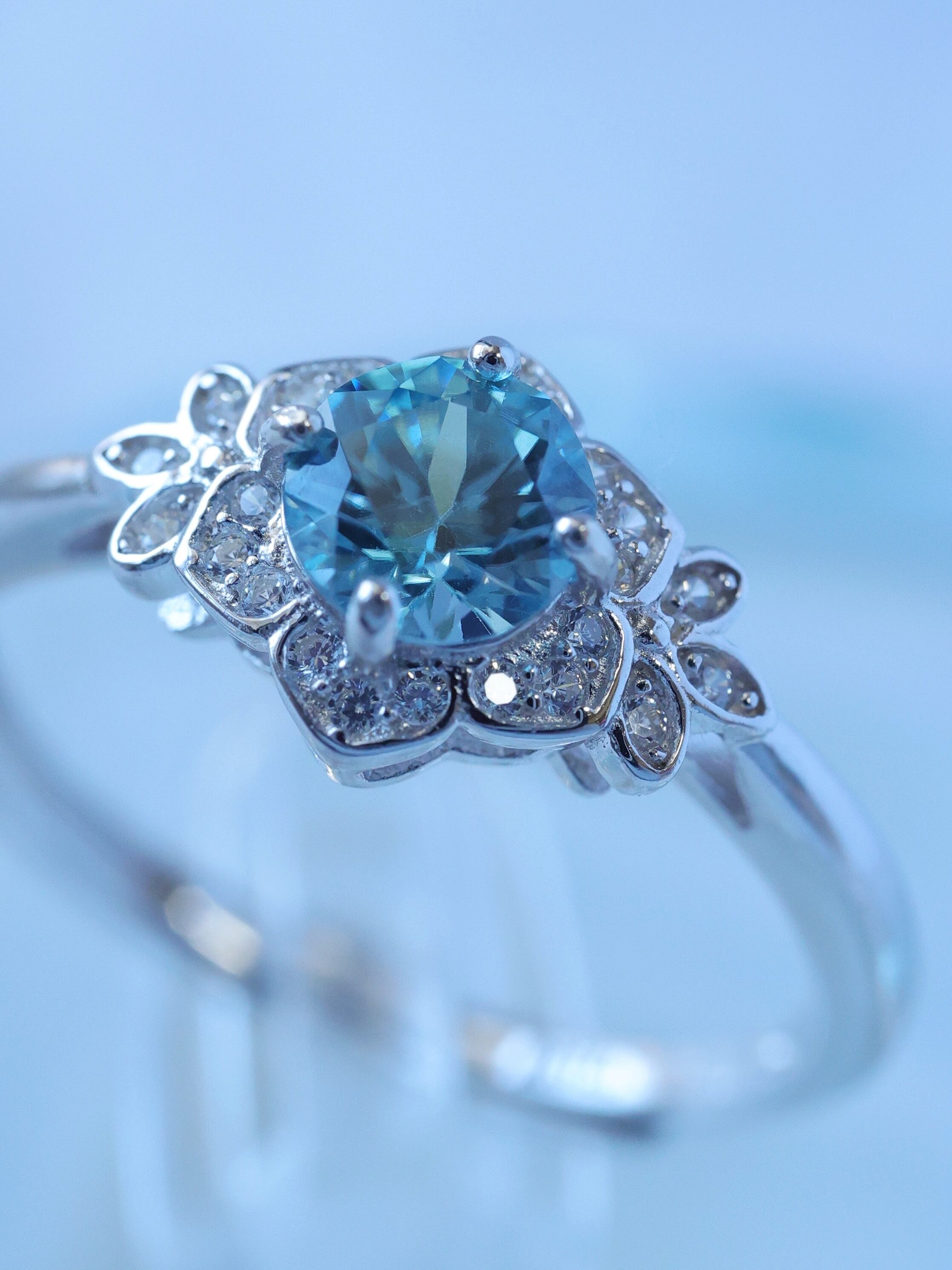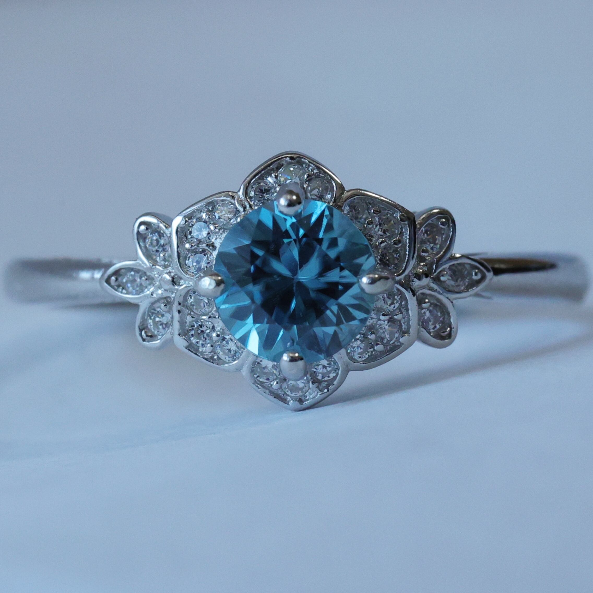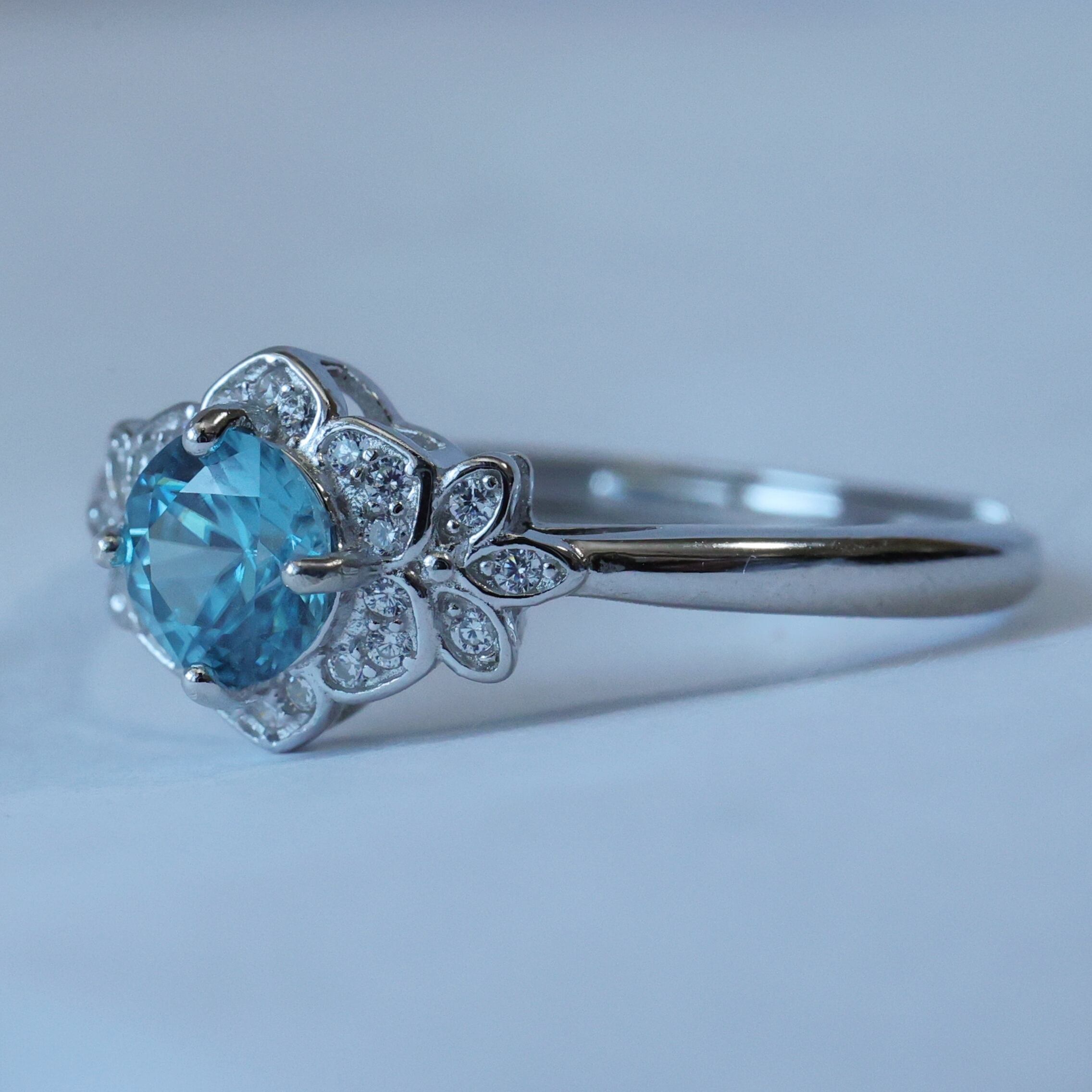 【当店オリジナル】【菫・SUMIRE(ミニ)】12月誕生石 ブルージルコン 花 リング シルバー 天然石 鑑別済