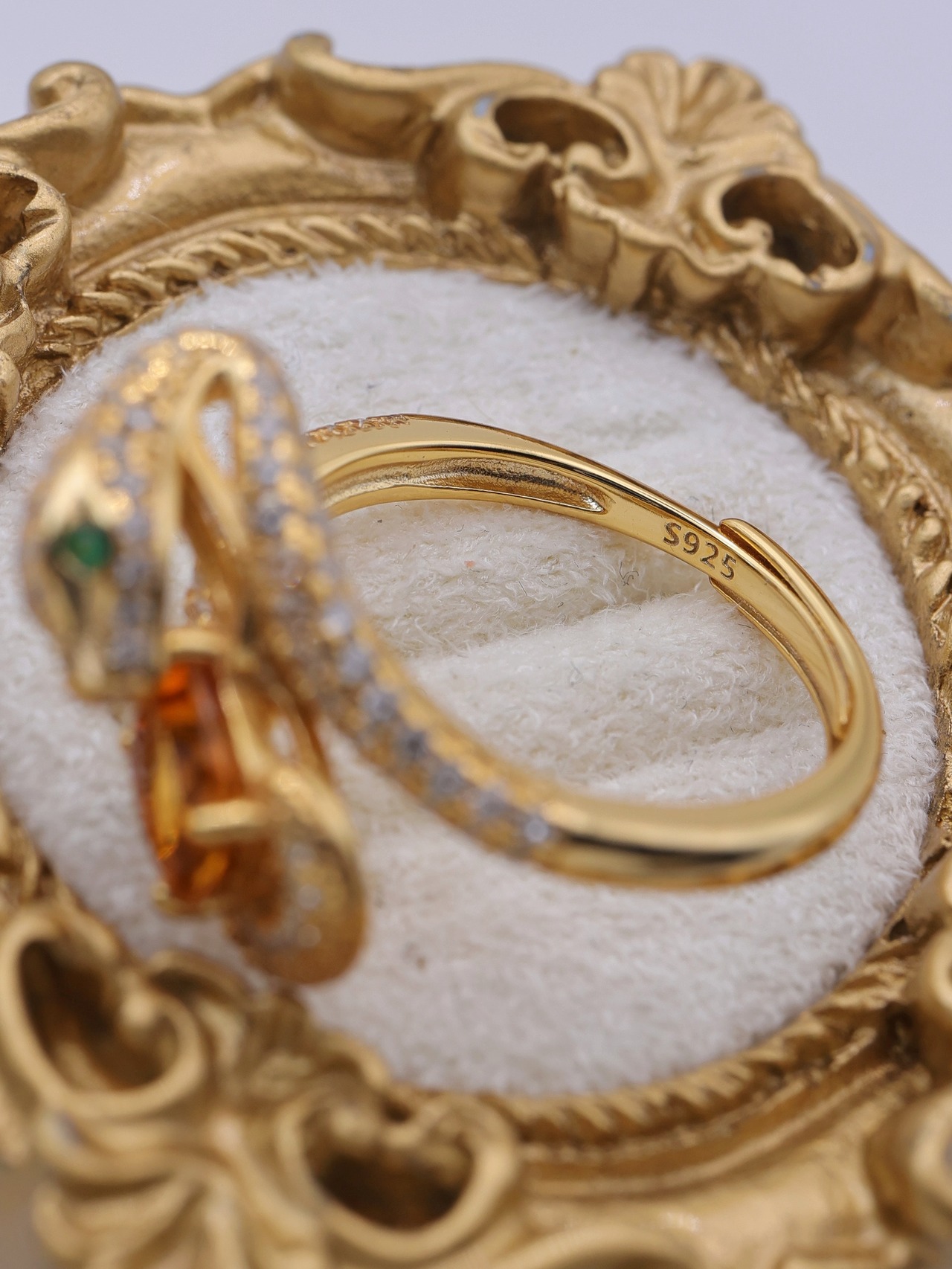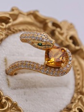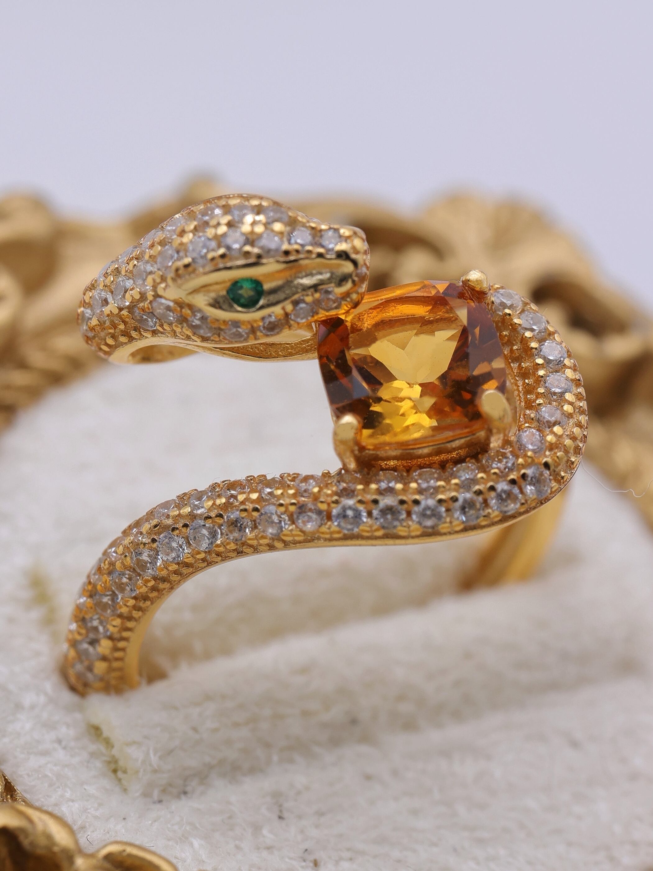 黄金の光を宿すシトリンを中心に据えた、神秘と繁栄を象徴する蛇モチーフのリング。