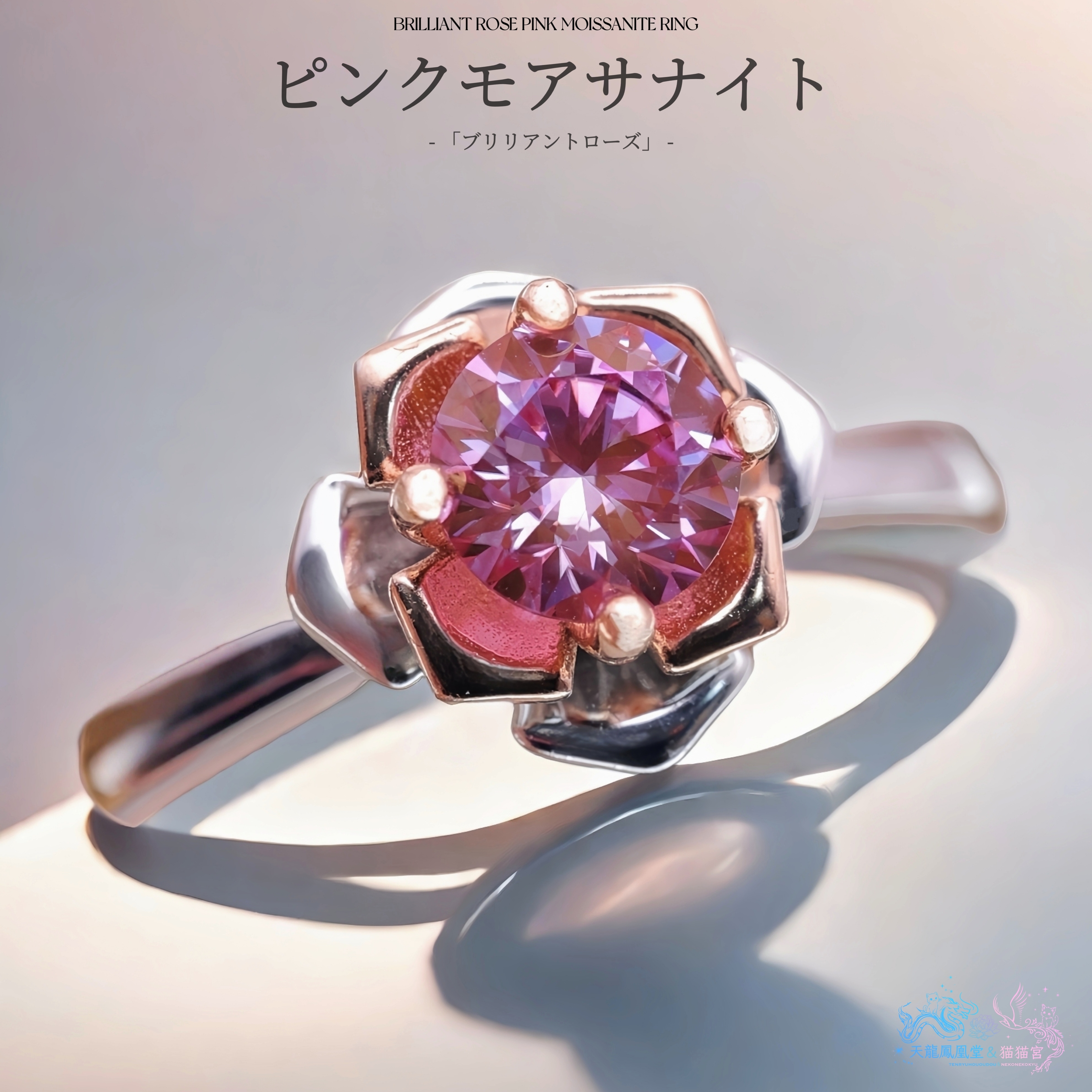 【当店オリジナル】【ブリリアントローズ】ピンクモアサナイト VVS S925 シルバー 薔薇 リング