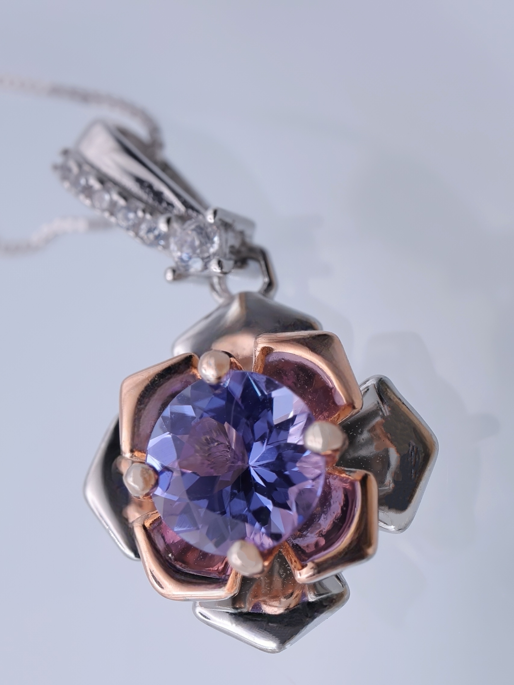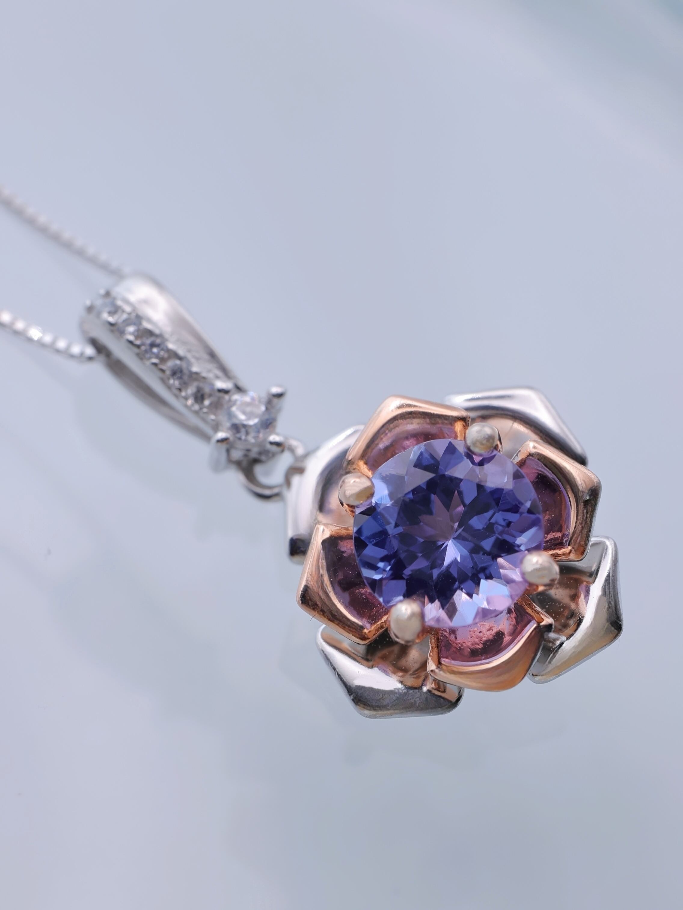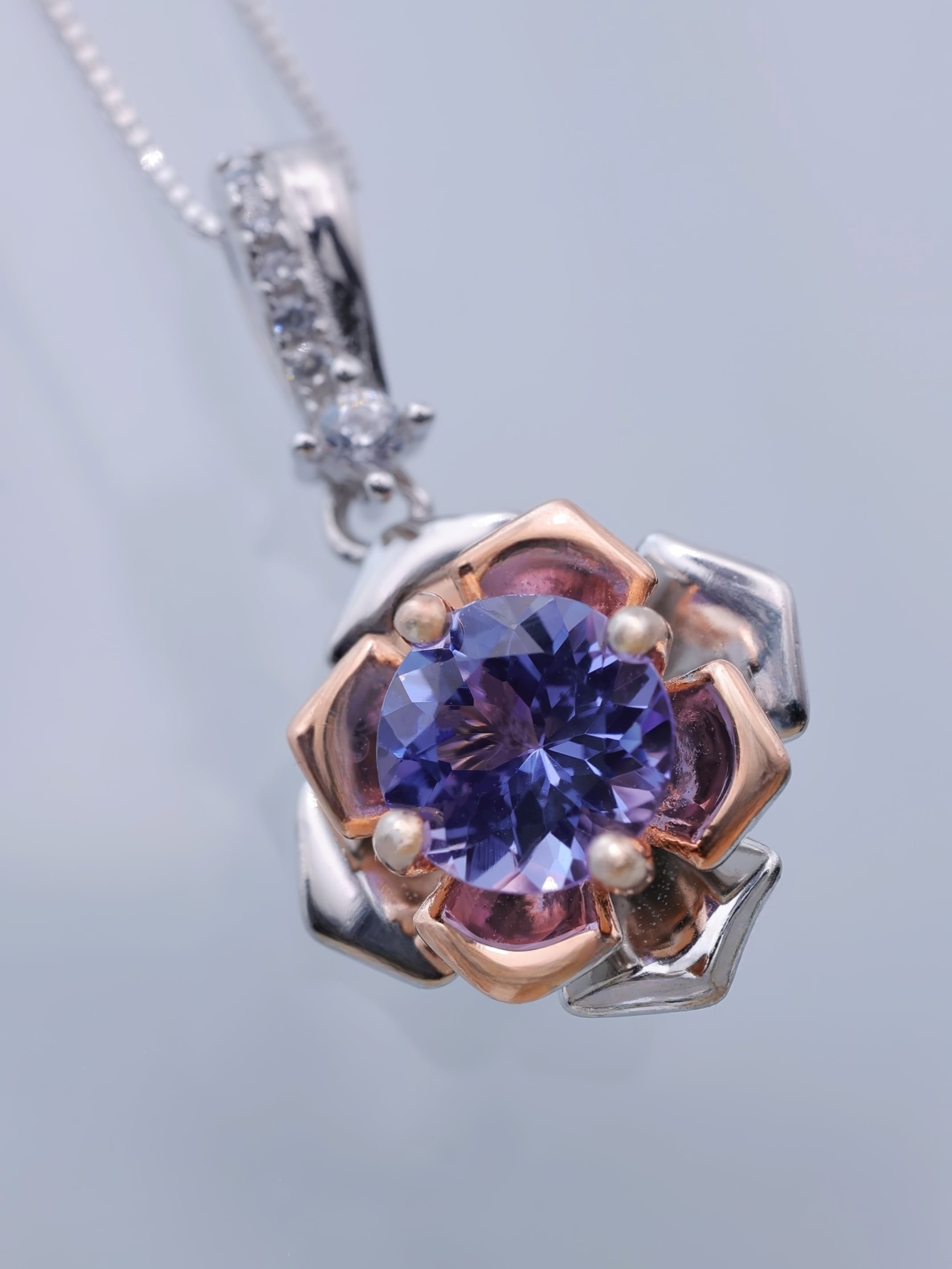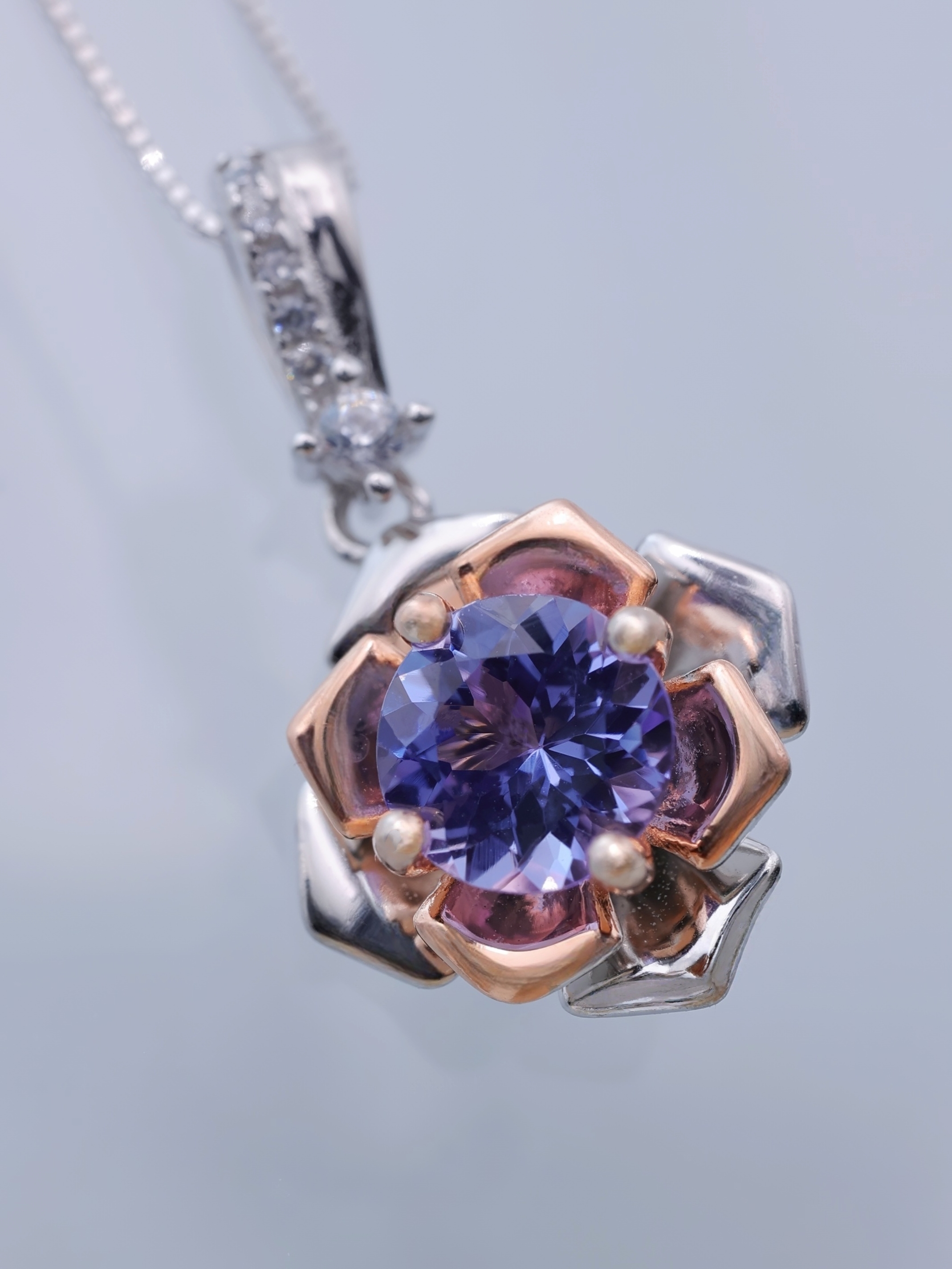 中央には、タンザナイトを一輪の薔薇に見立ててセッティング。