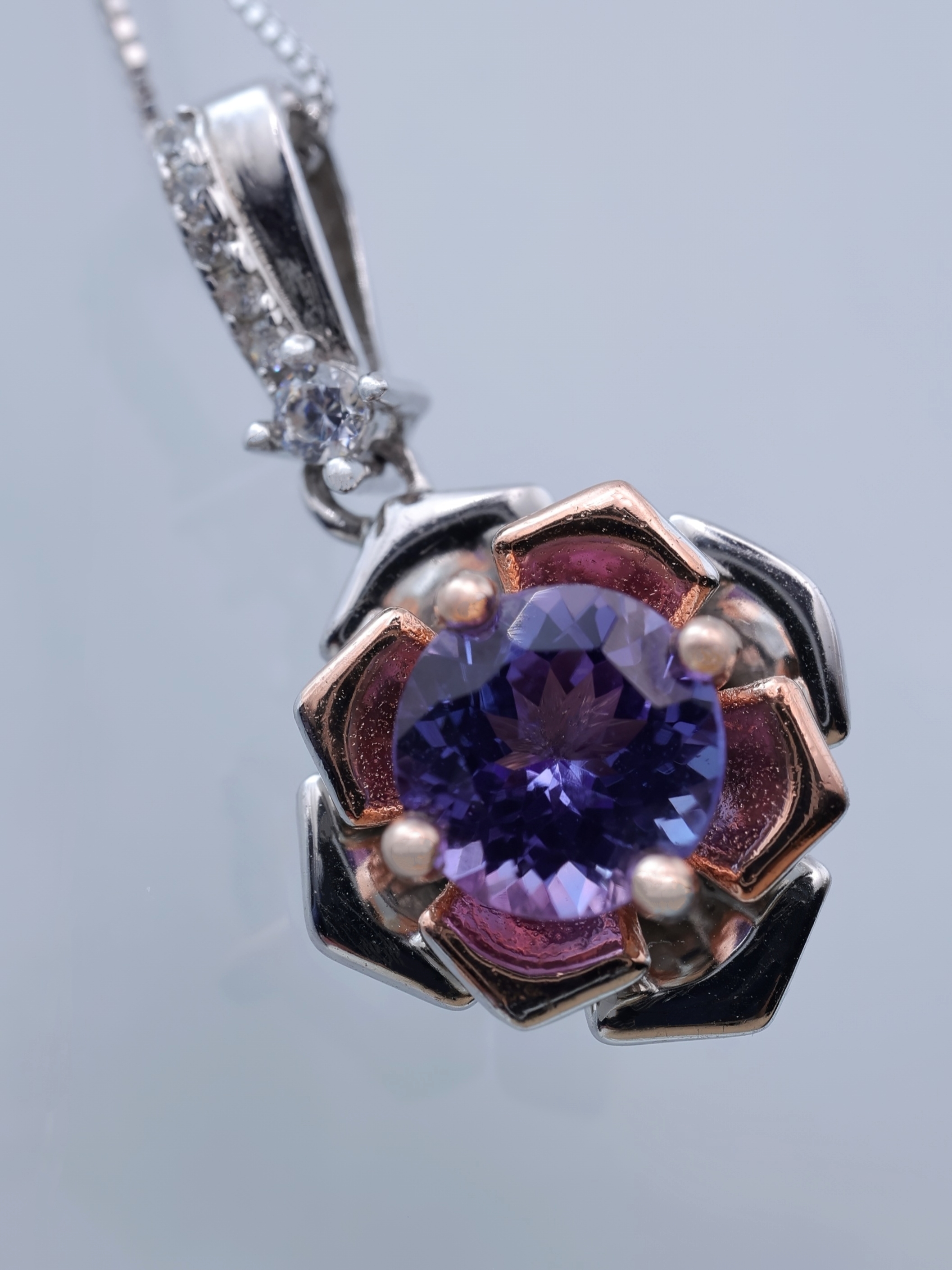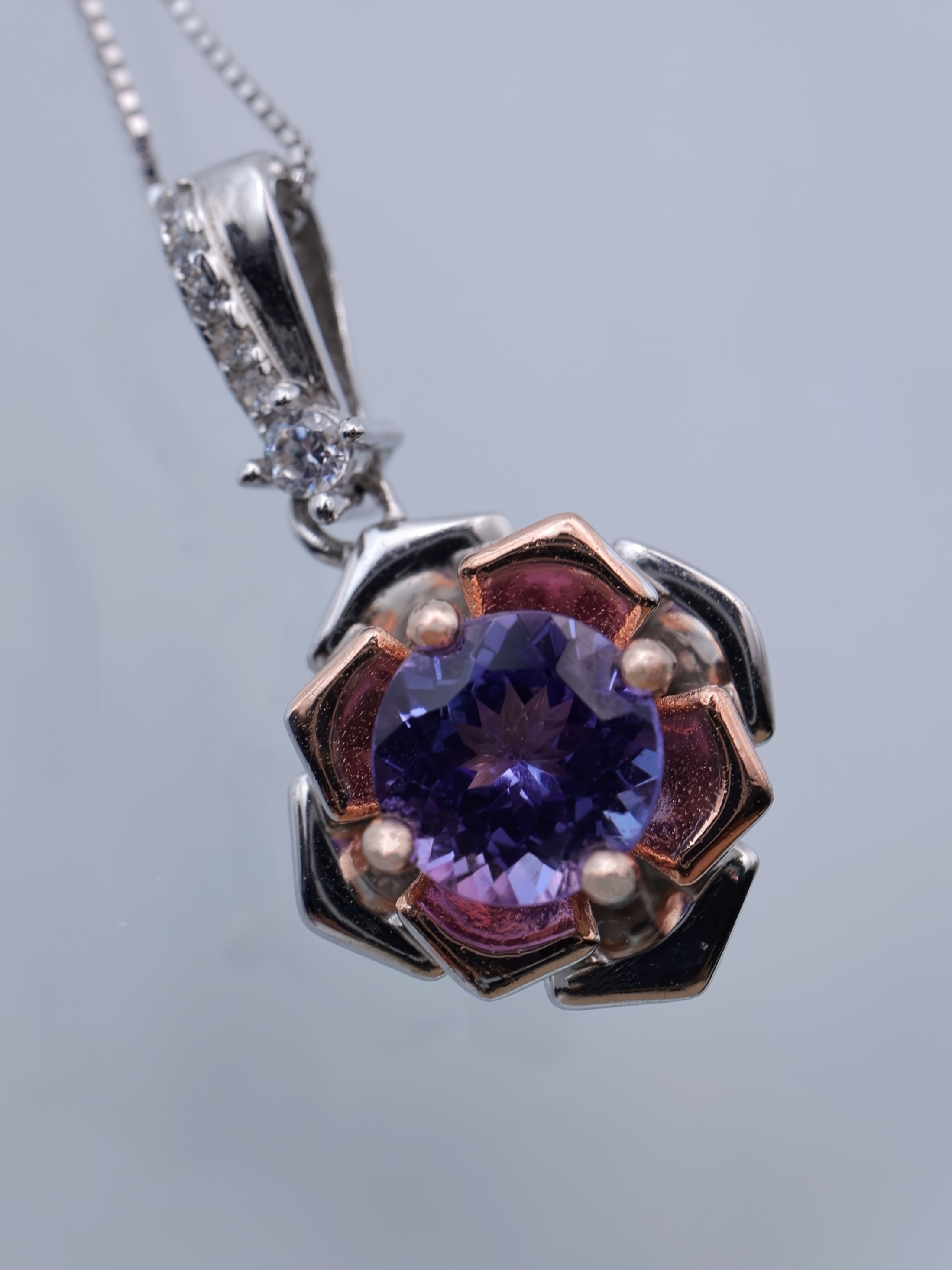 【当店オリジナル】【ブリリアントローズ】タンザナイト プレミアム 天然石 S925 シルバー 薔薇 ネックレス