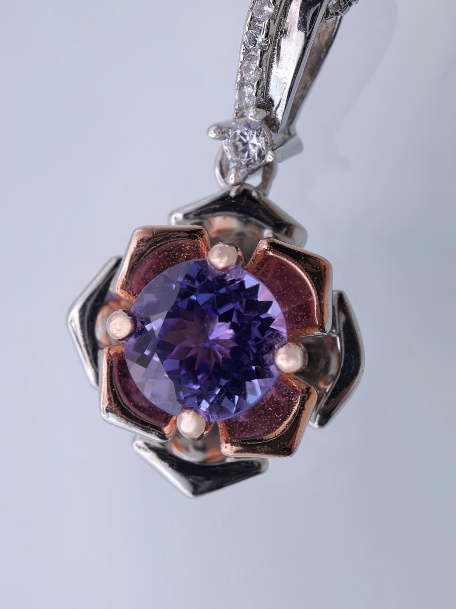 中央には、タンザナイトを一輪の薔薇に見立ててセッティング。