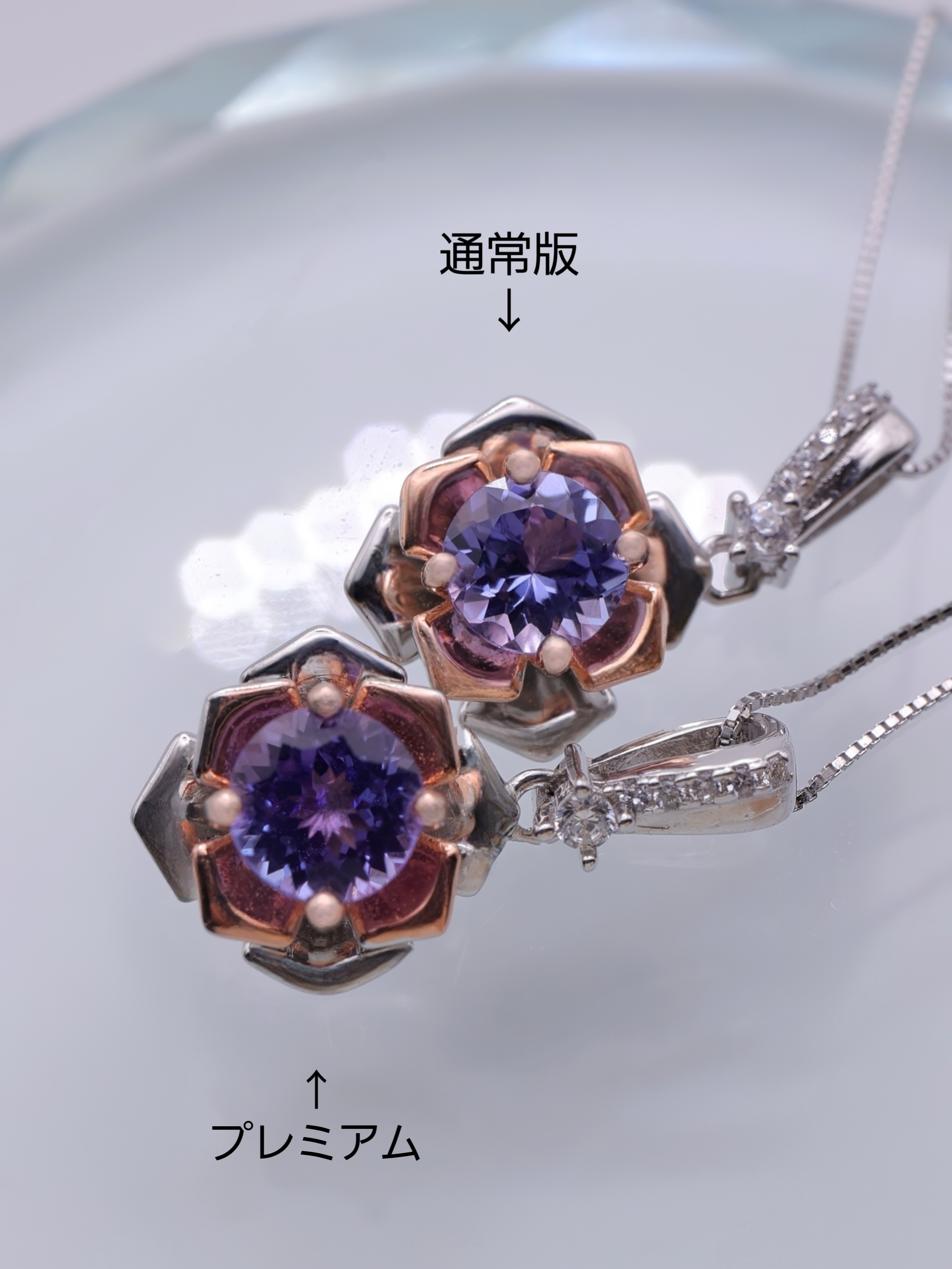 今回使用したタンザナイトは、本来K18やPt仕立てで使用されるプレミアムランクのルース。
