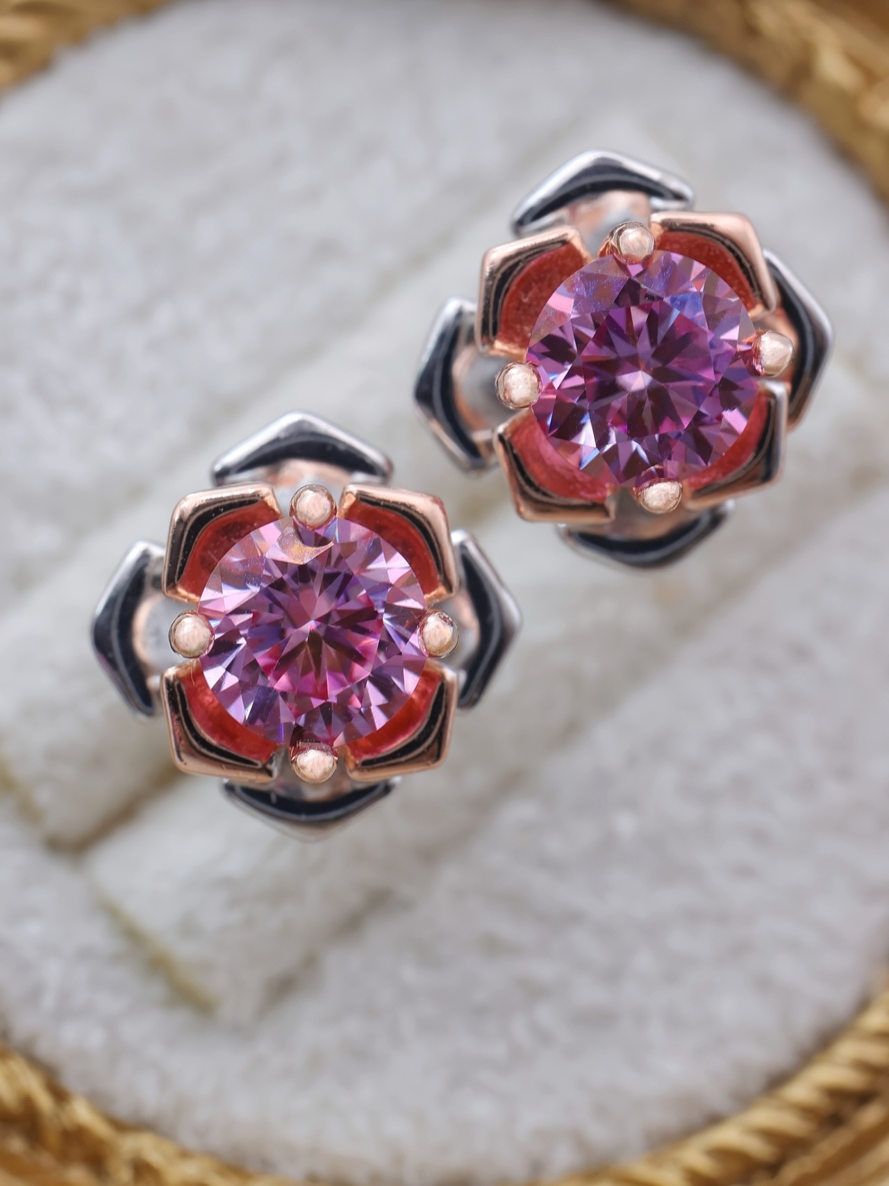 【当店オリジナル】【ブリリアントローズ】さくらピンク モアッサナイトS925 シルバー 薔薇 ピアス