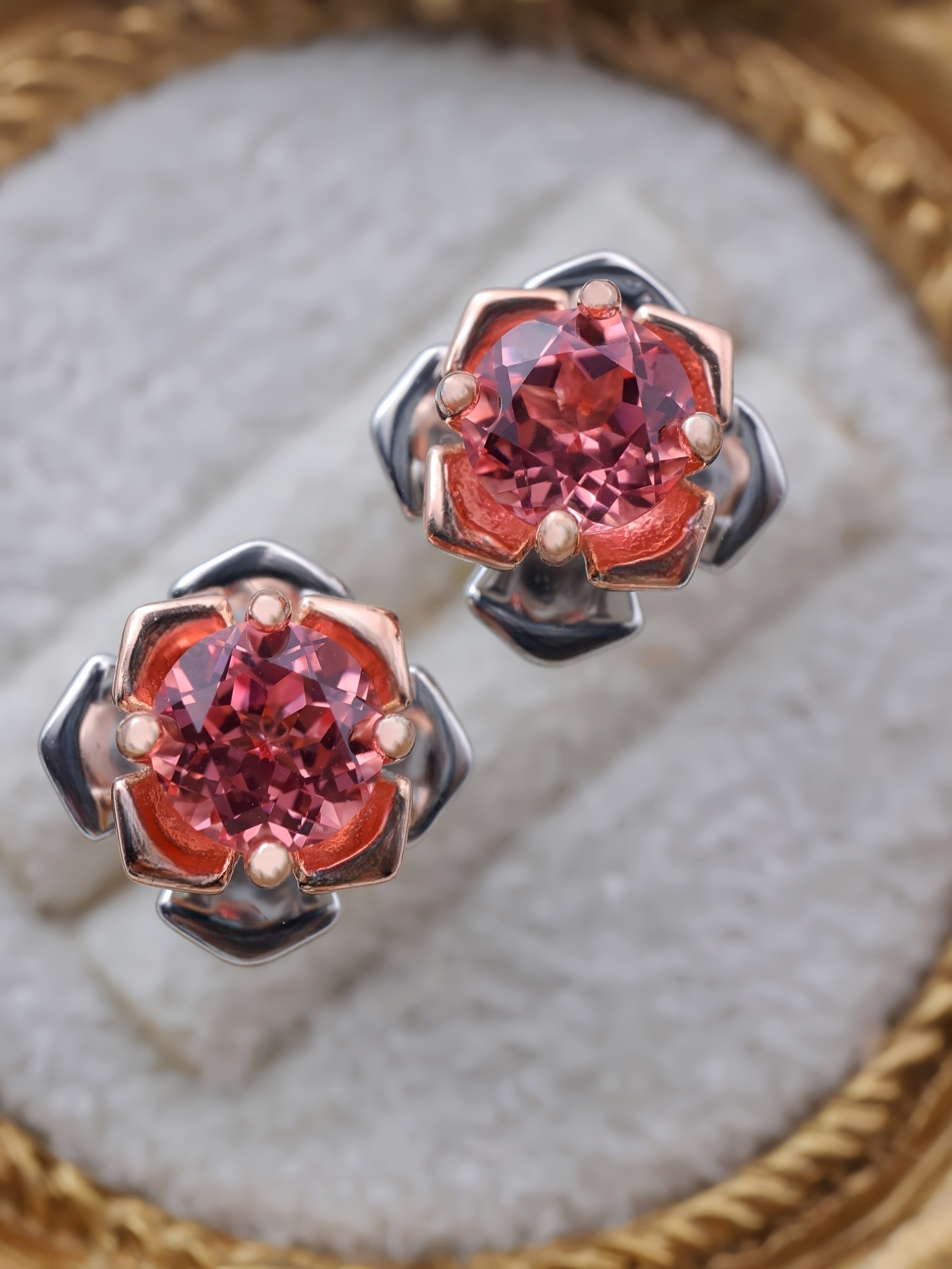 外側にはロジウムカラー、内側にはピンクゴールドカラーを施した二重構造の花びらデザイン。