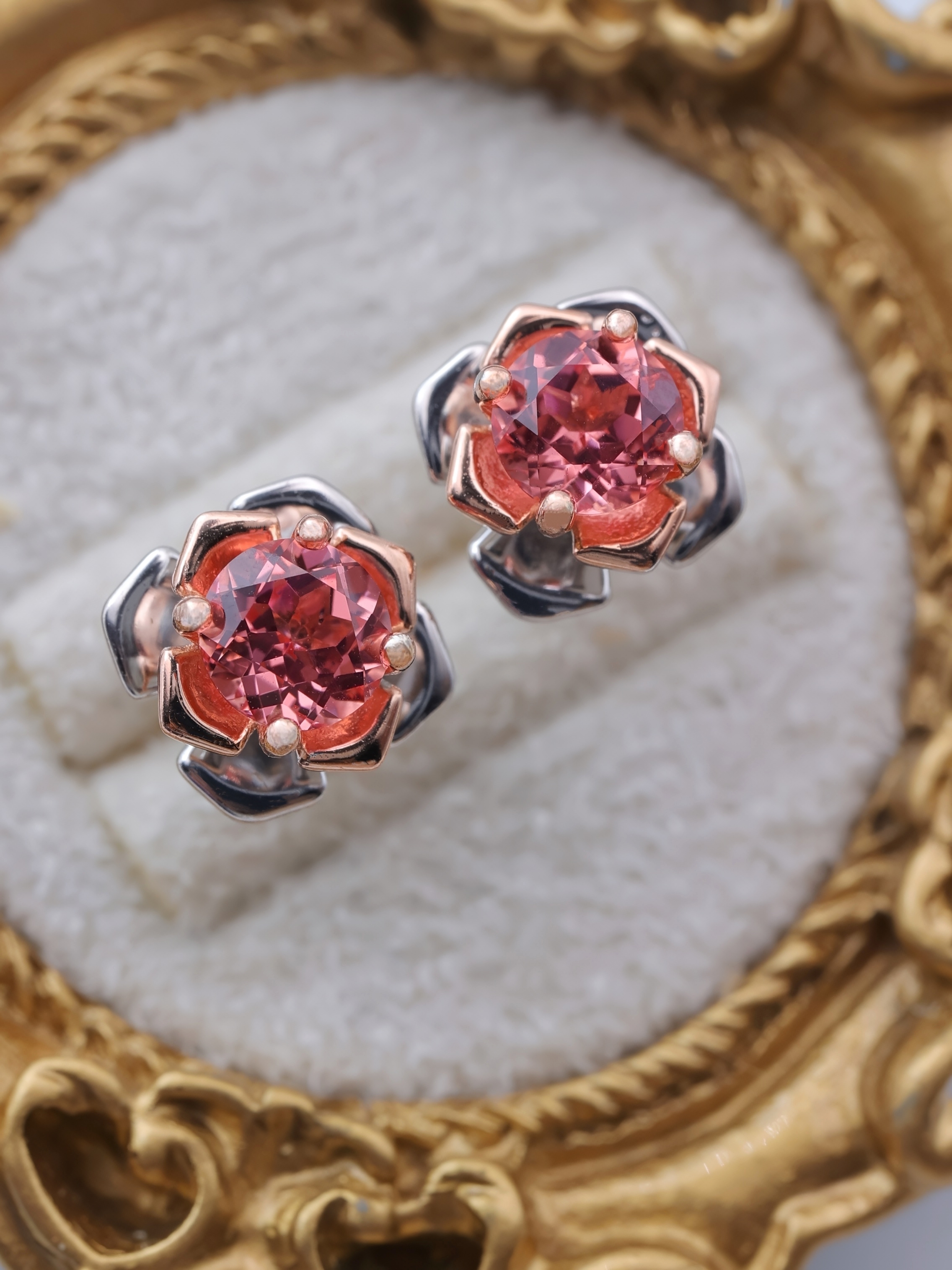 光を受けるたび、まるで夕陽に染まる花びらのように優しく色づき、耳元に上品な彩りを添えます。