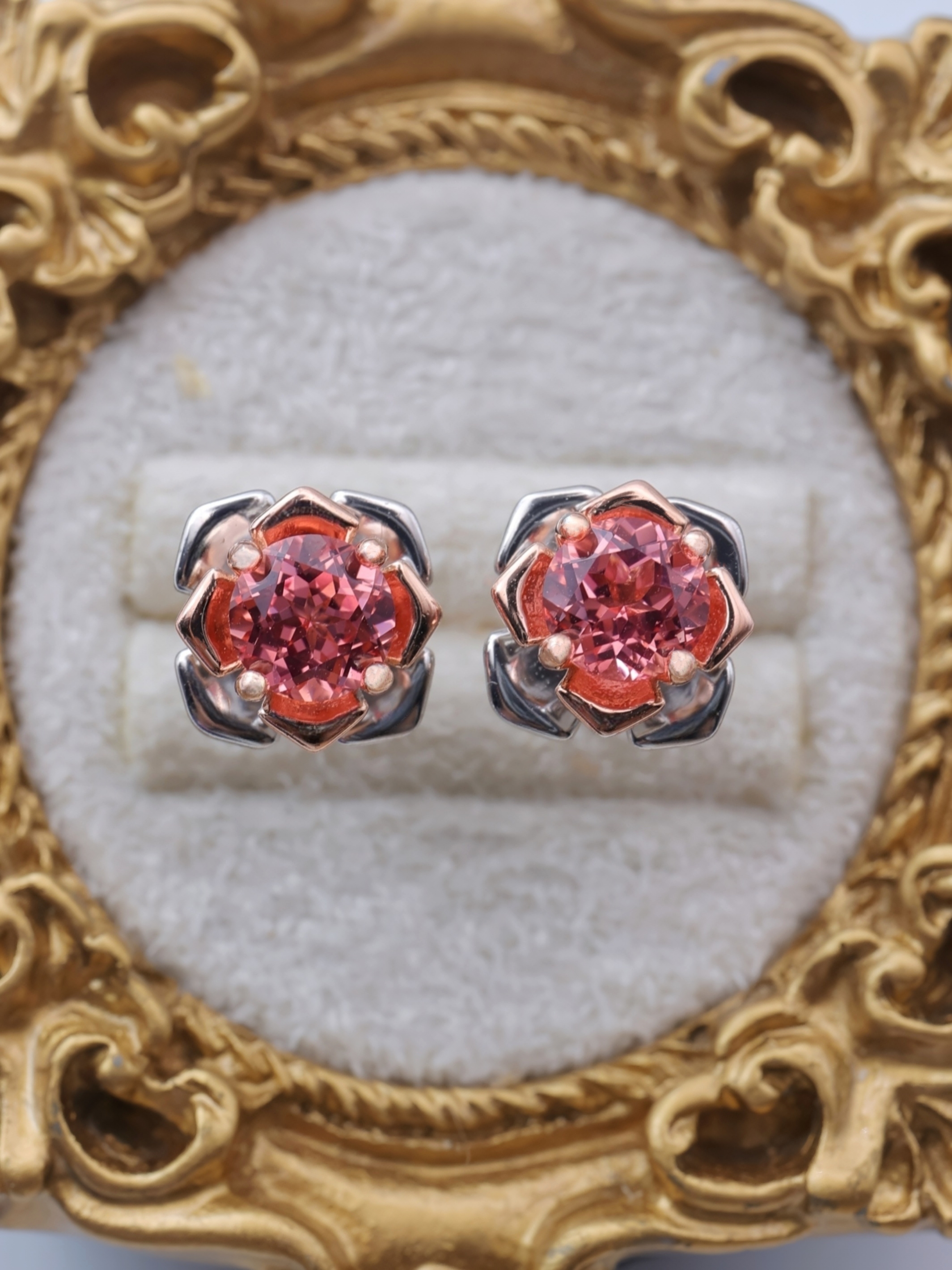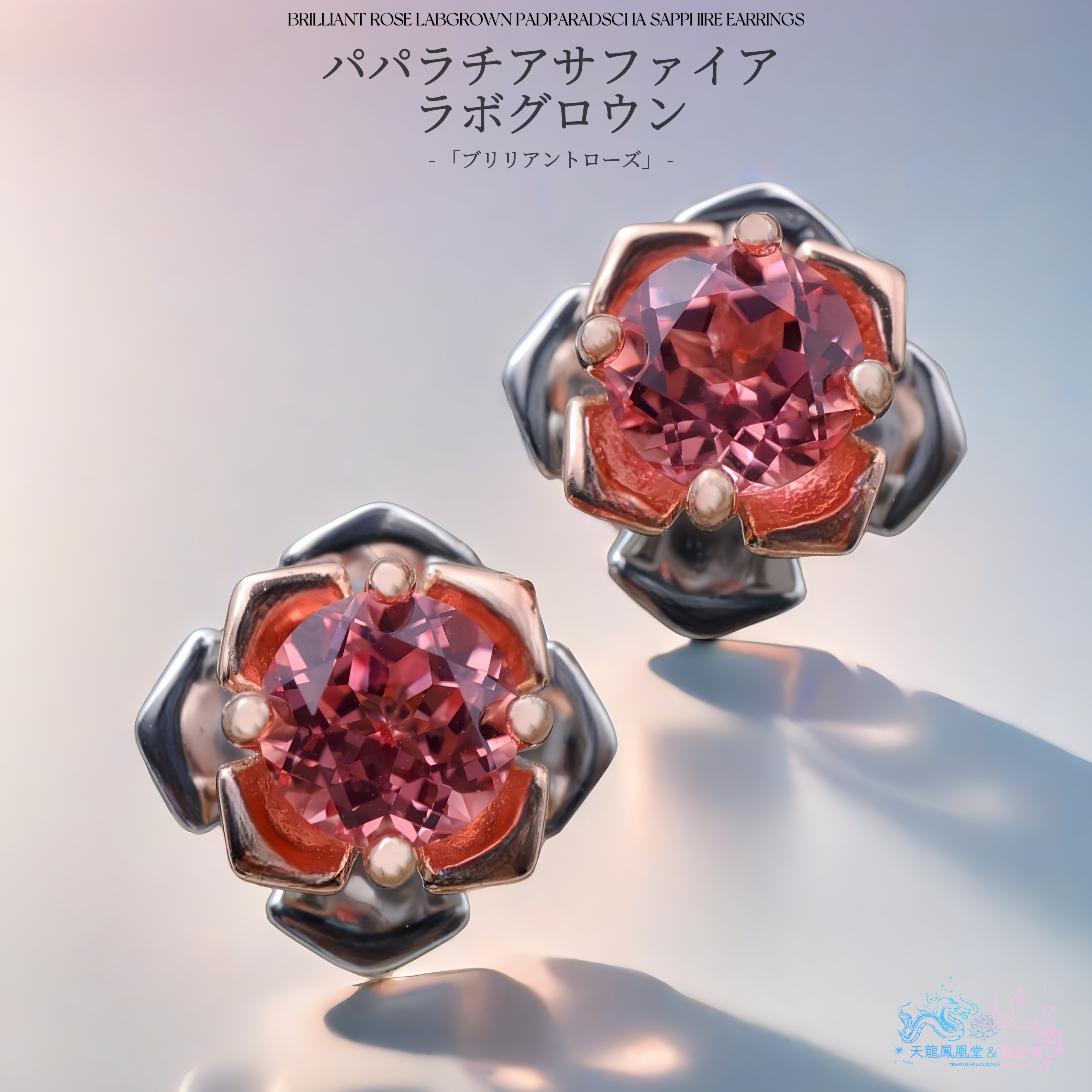 【当店オリジナル】【ブリリアントローズ】パパラチアサファイア ラボグロウン S925 シルバー 薔薇 ピアス