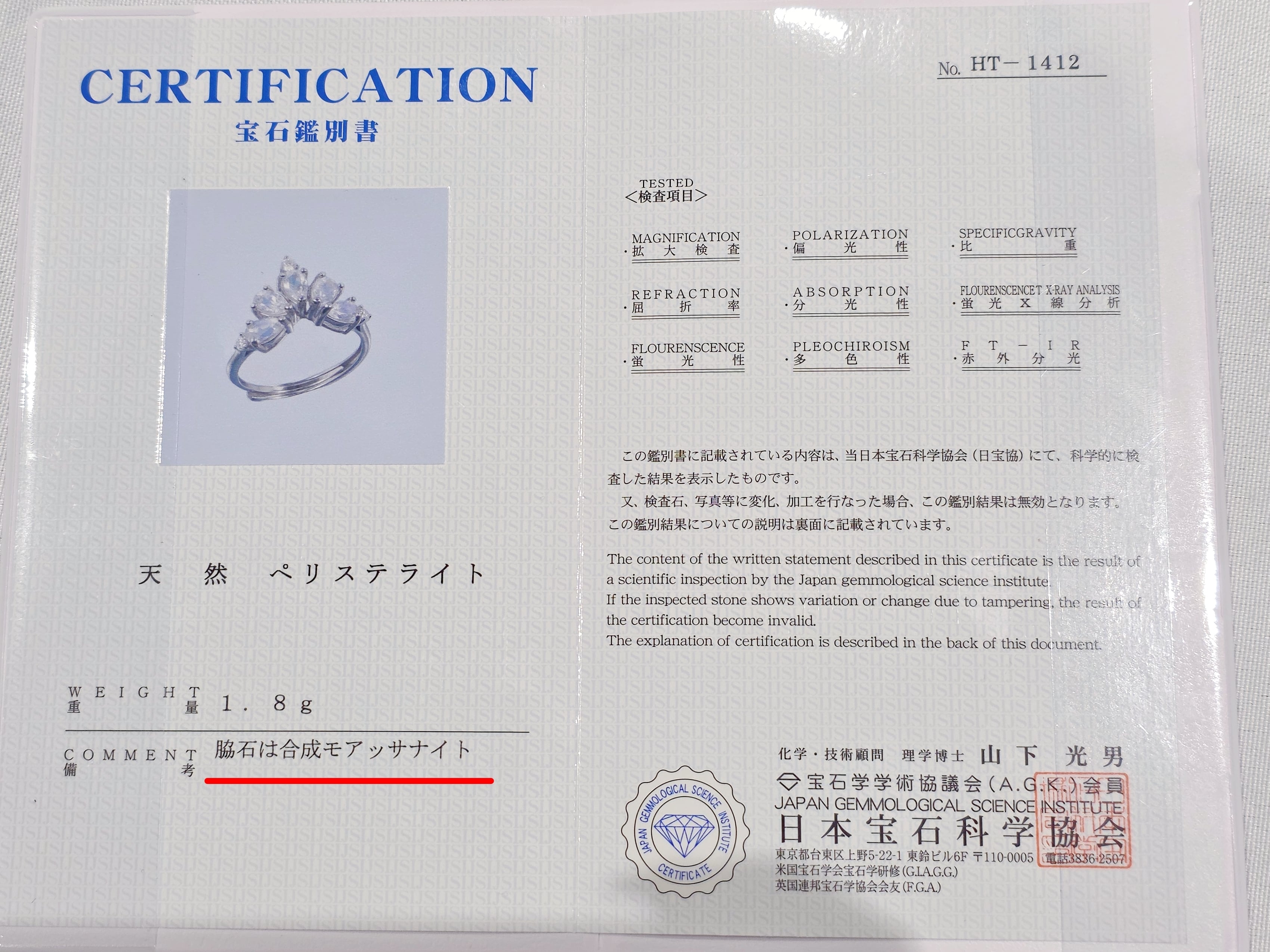 ※本商品には鑑別書は付属しておりません(ご