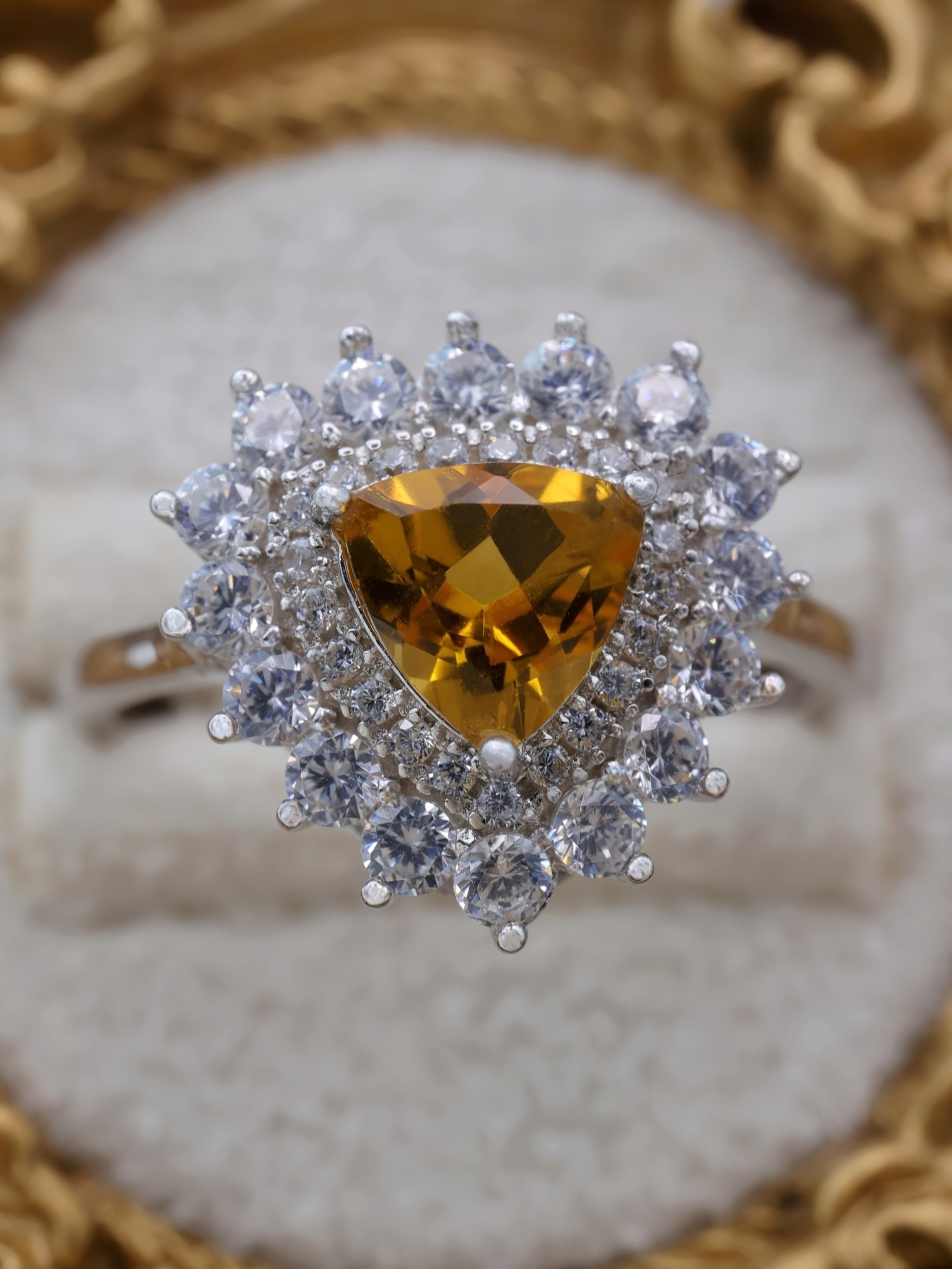ここまで濃い黄金色とルーペクリーンの透明度を兼ね備えた美石は多くなく、選び抜かれた希少な個体です。