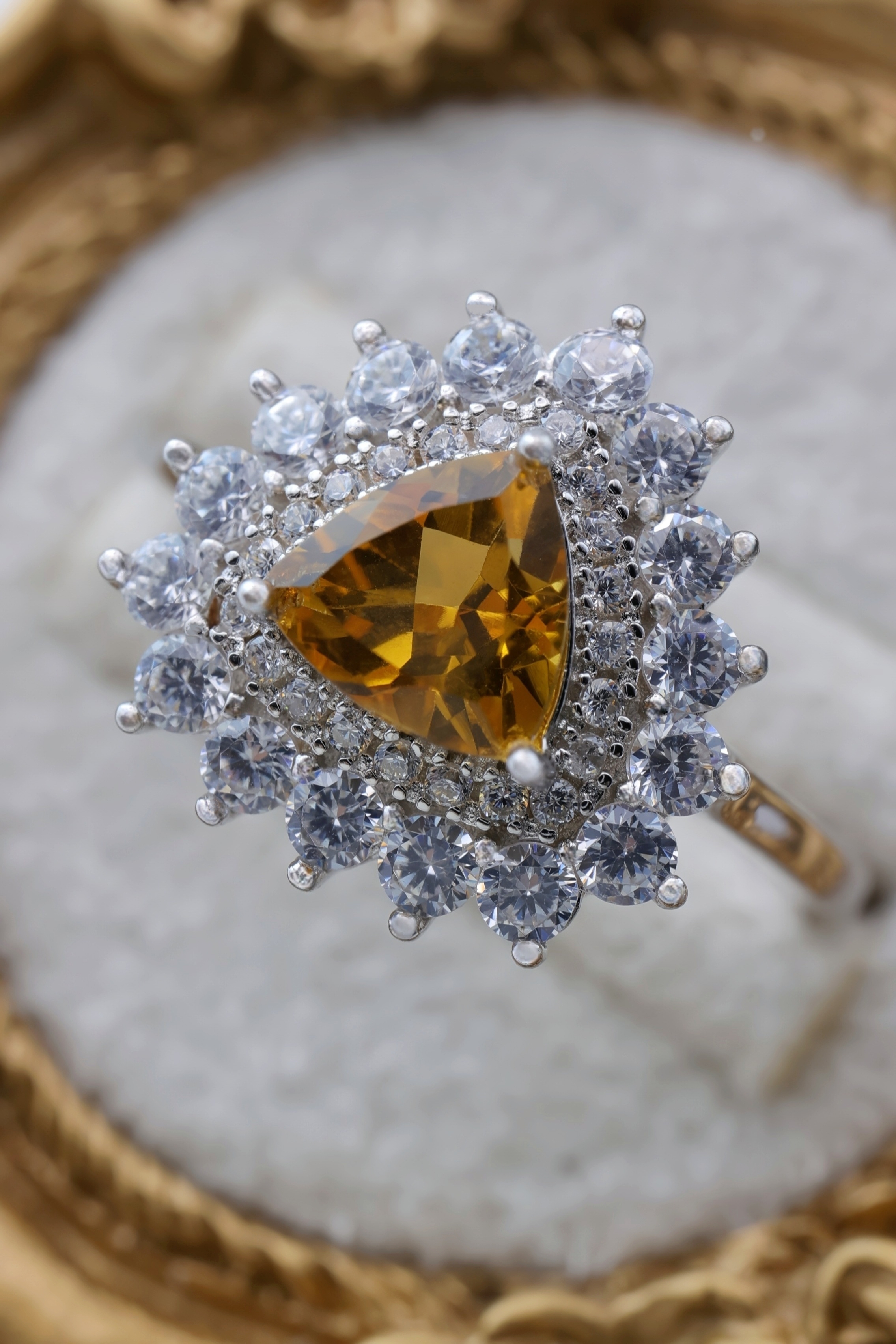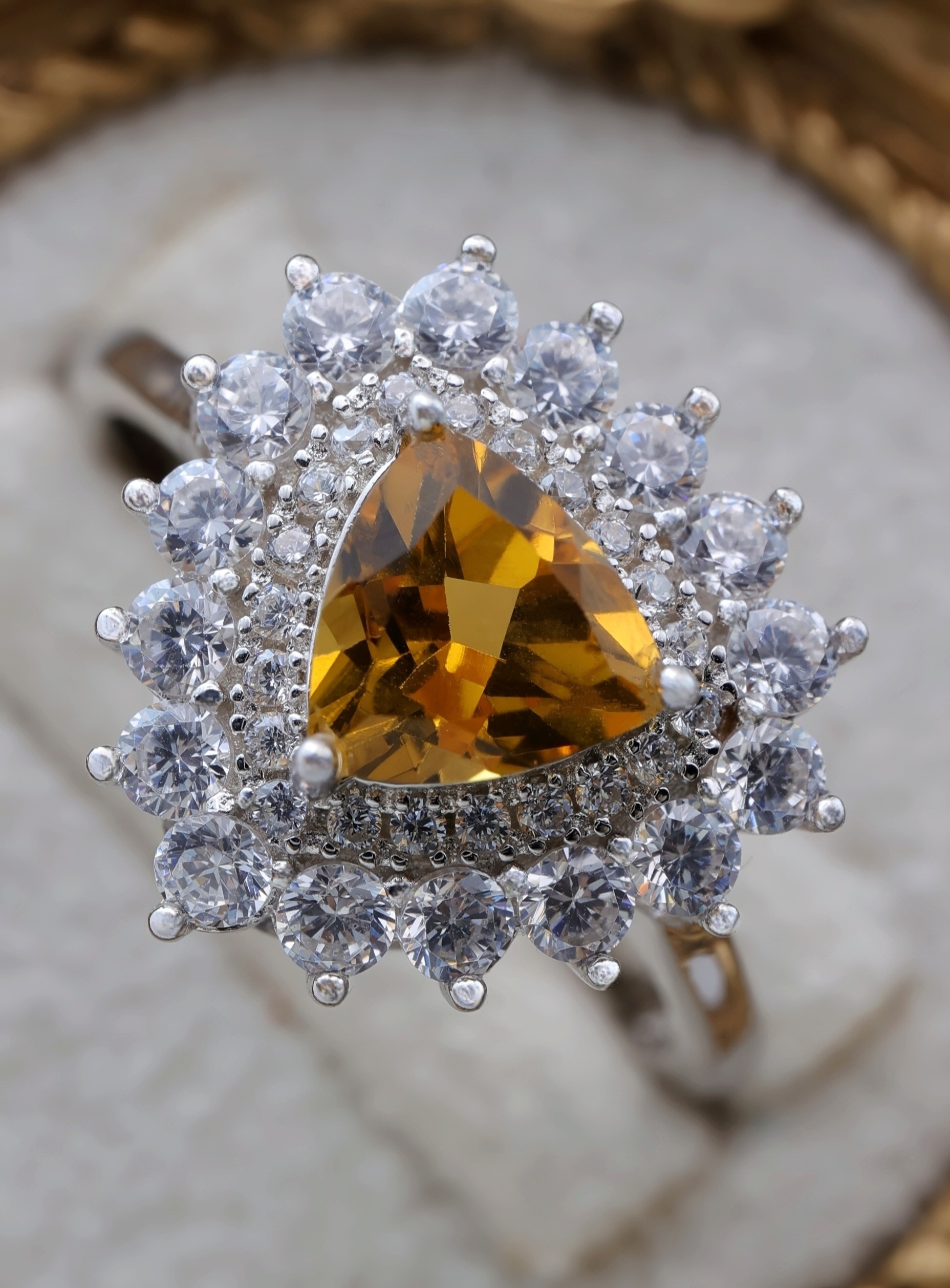 シルバーカラーの地金がゴールデンベリルの華やかさを引き締め、気品と存在感を併せ持つ仕上がりに。