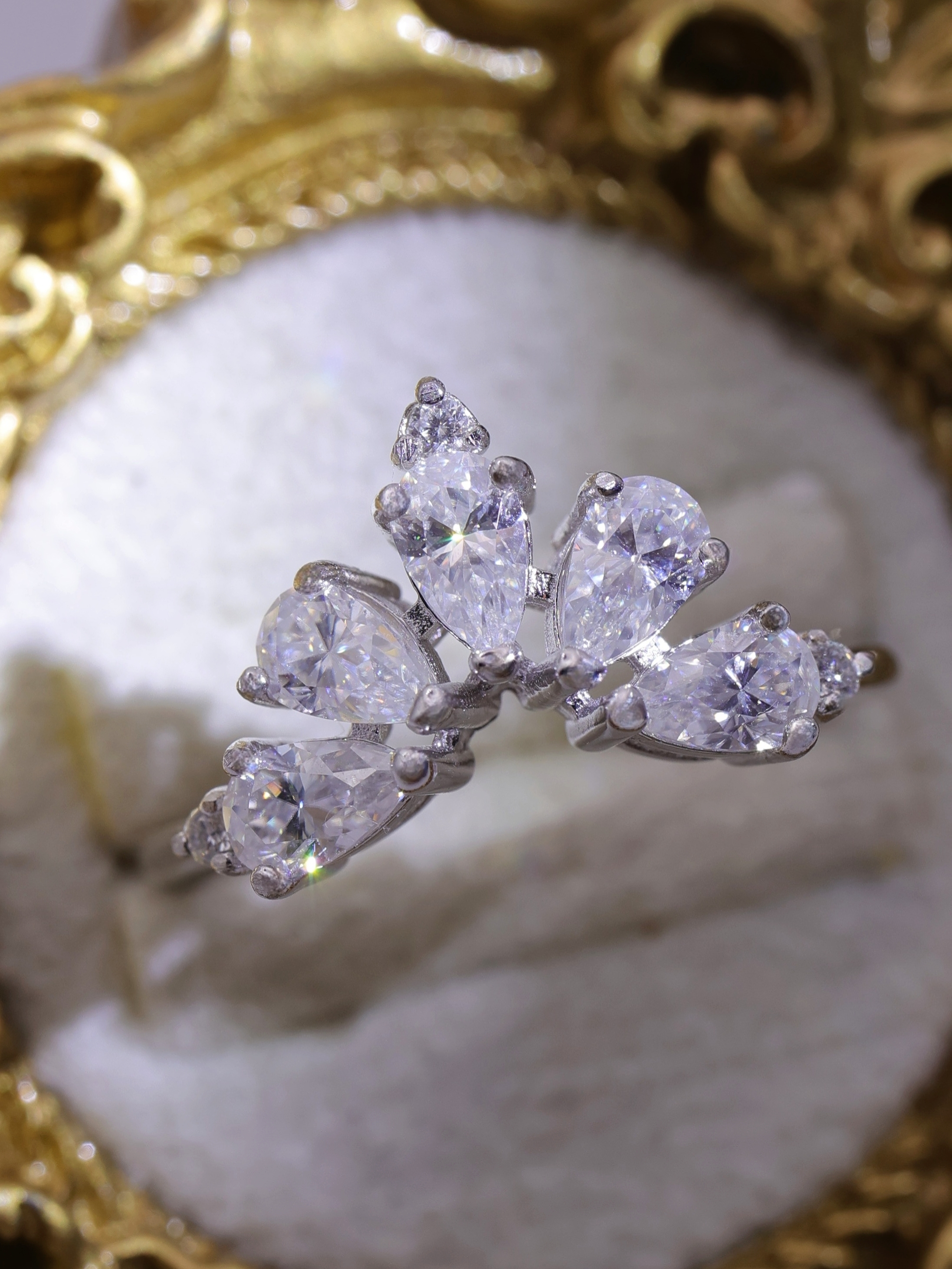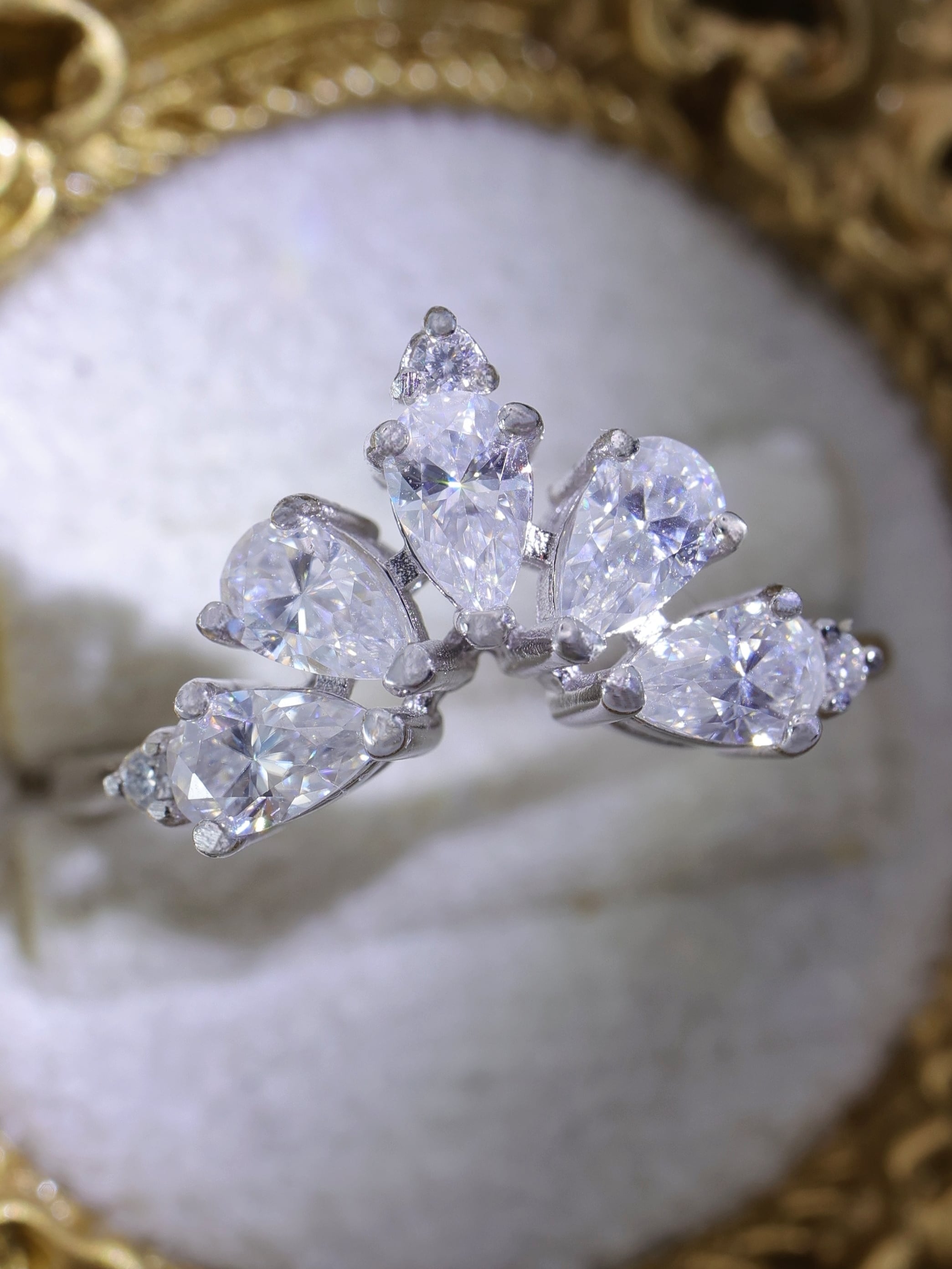 大粒のペアシェイプを王冠のように並べることで、花びらのような優雅さと、クラウンの名にふさわしい気品を併せ持つデザインに仕上げました。