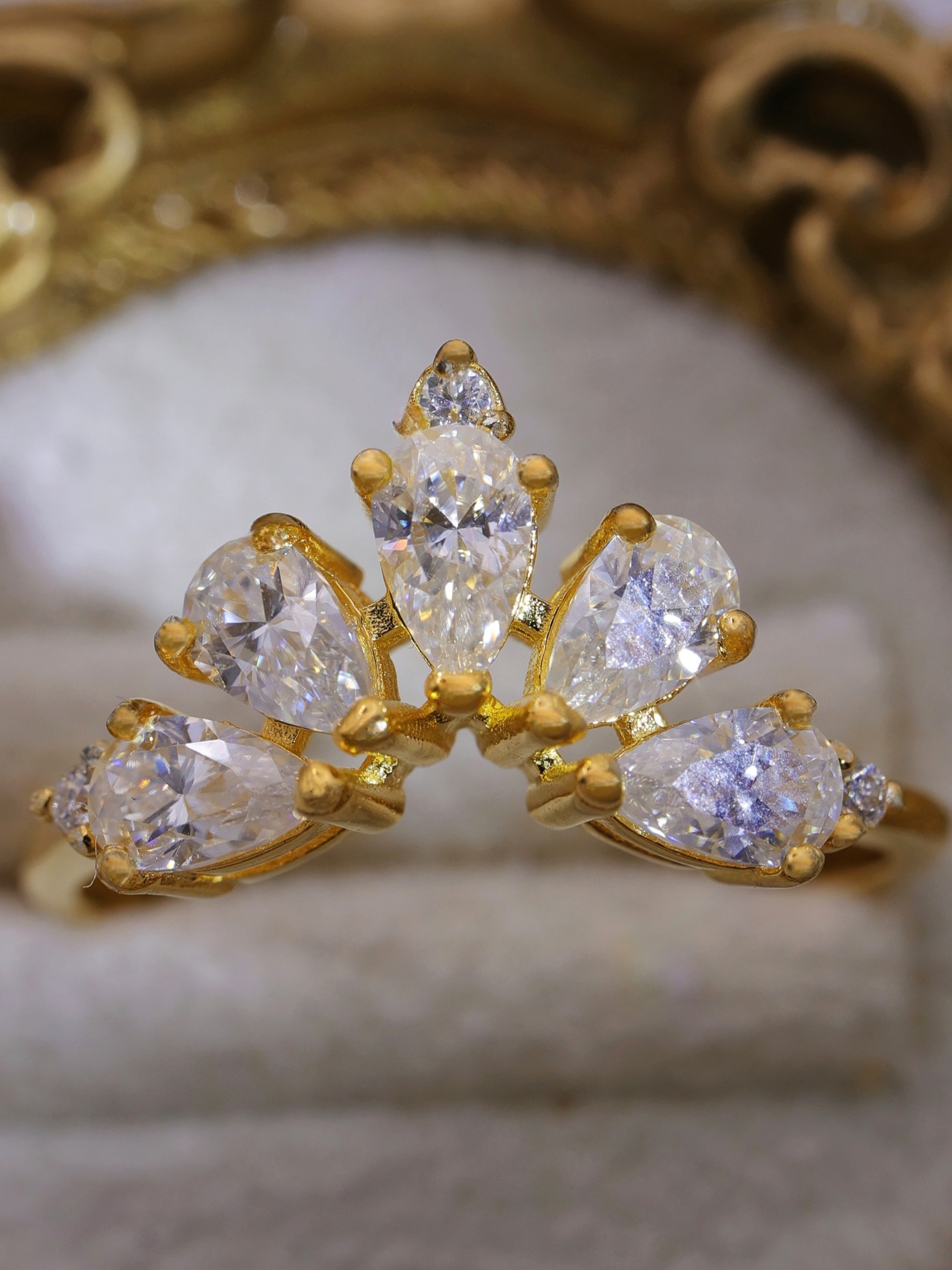 大粒のペアシェイプを王冠のように並べることで、花びらのような優雅さと、クラウンの名にふさわしい気品を併せ持つデザインに仕上げました。