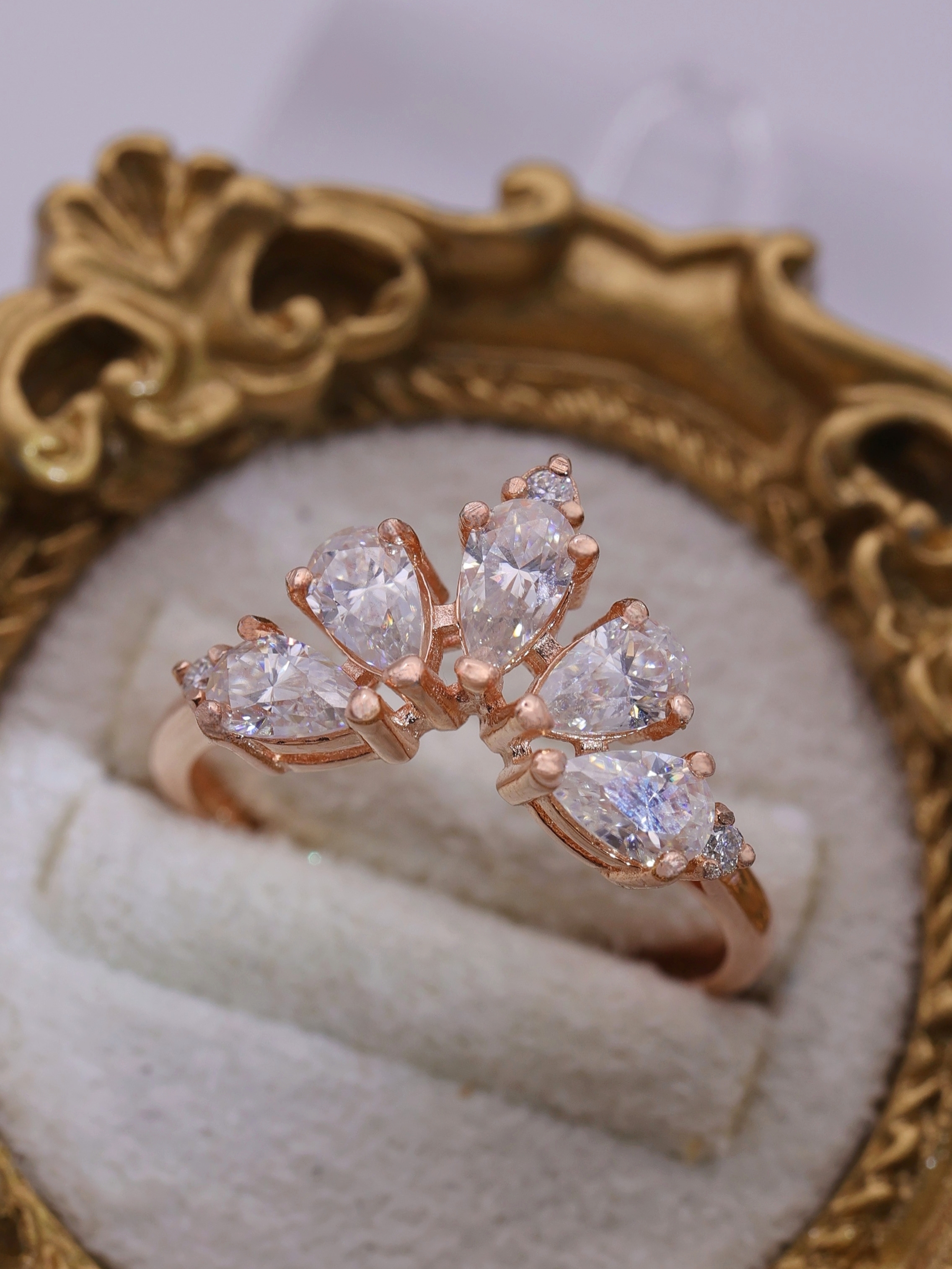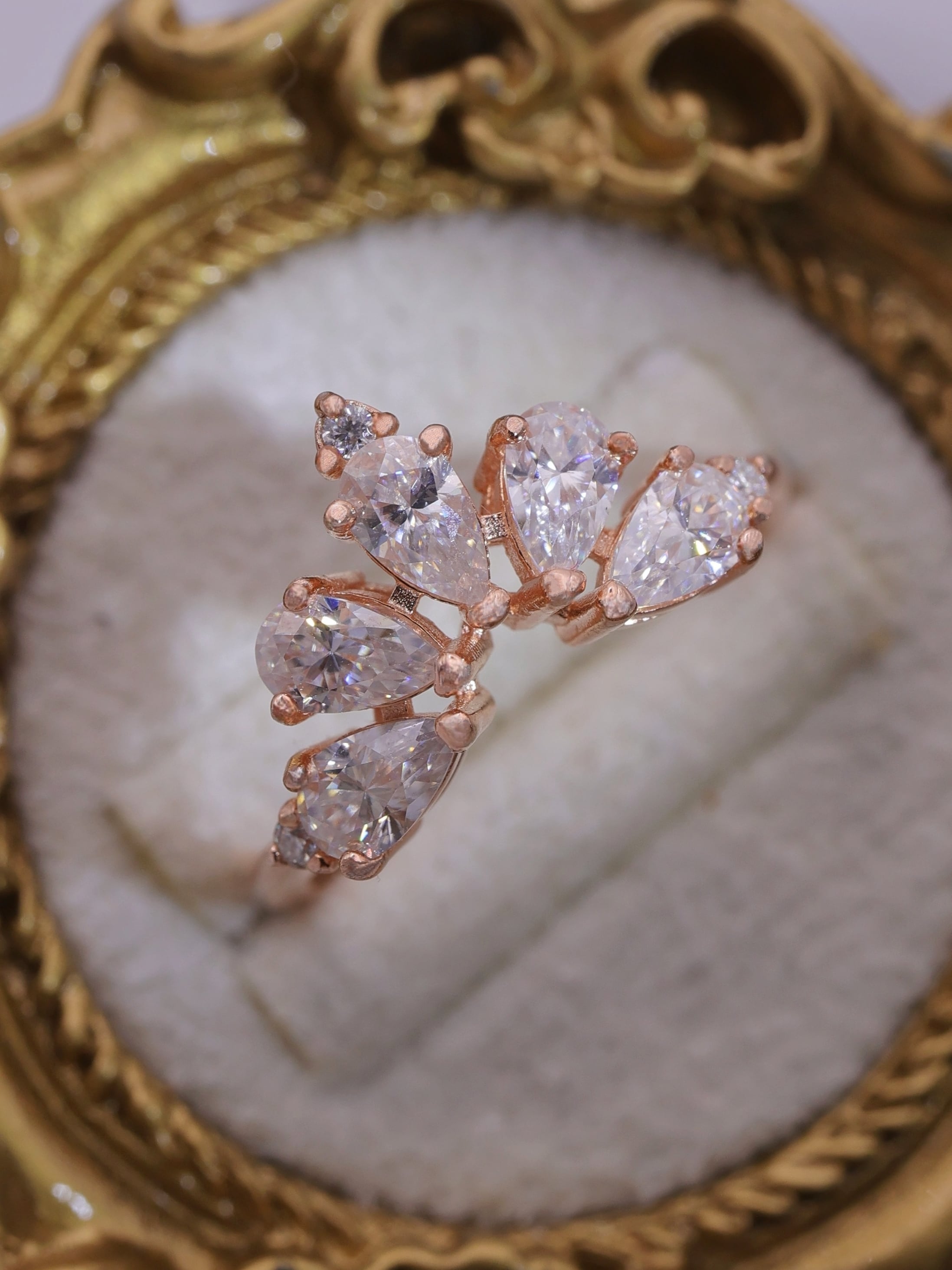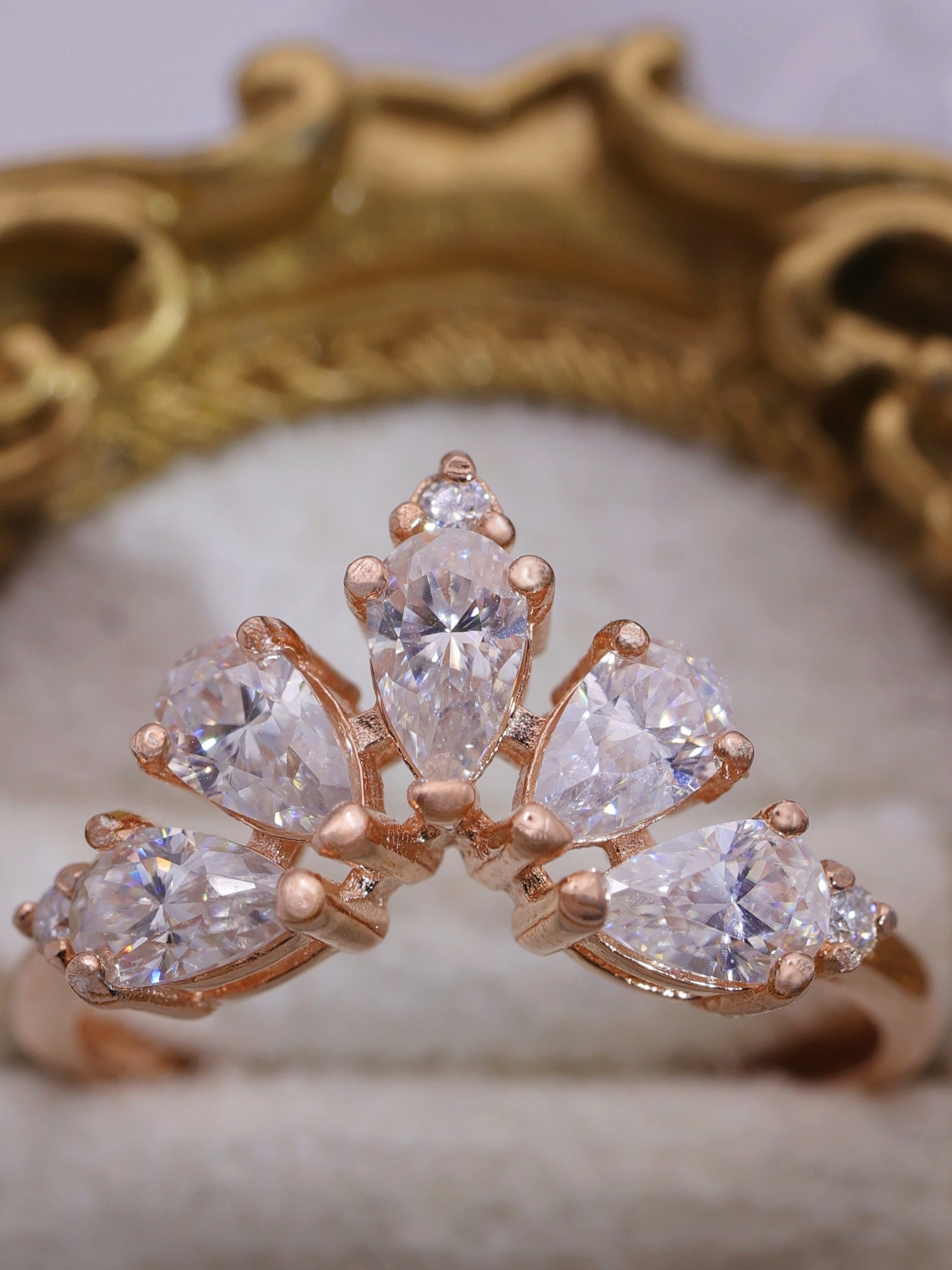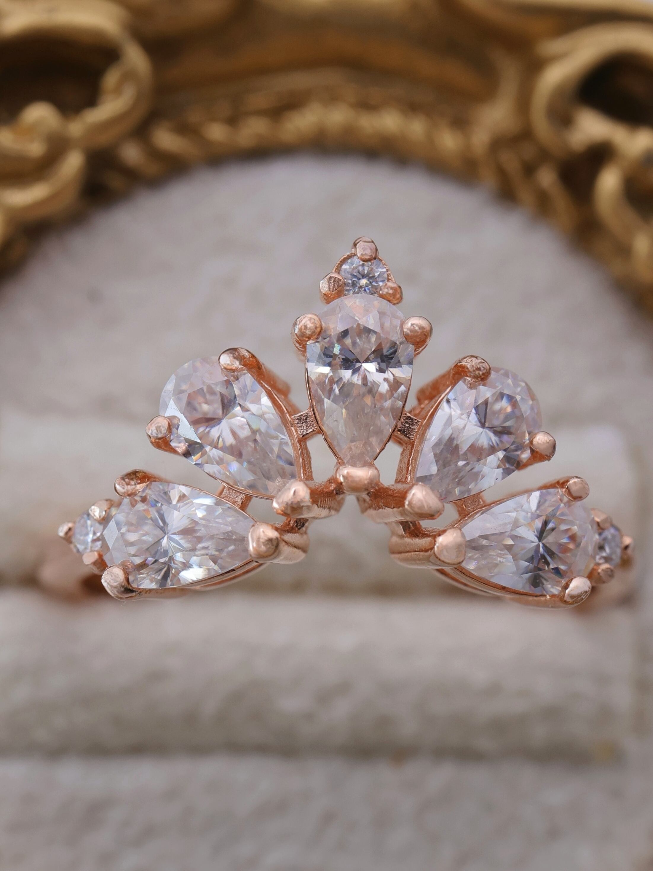 大粒のペアシェイプを王冠のように並べることで、花びらのような優雅さと、クラウンの名にふさわしい気品を併せ持つデザインに仕上げました。