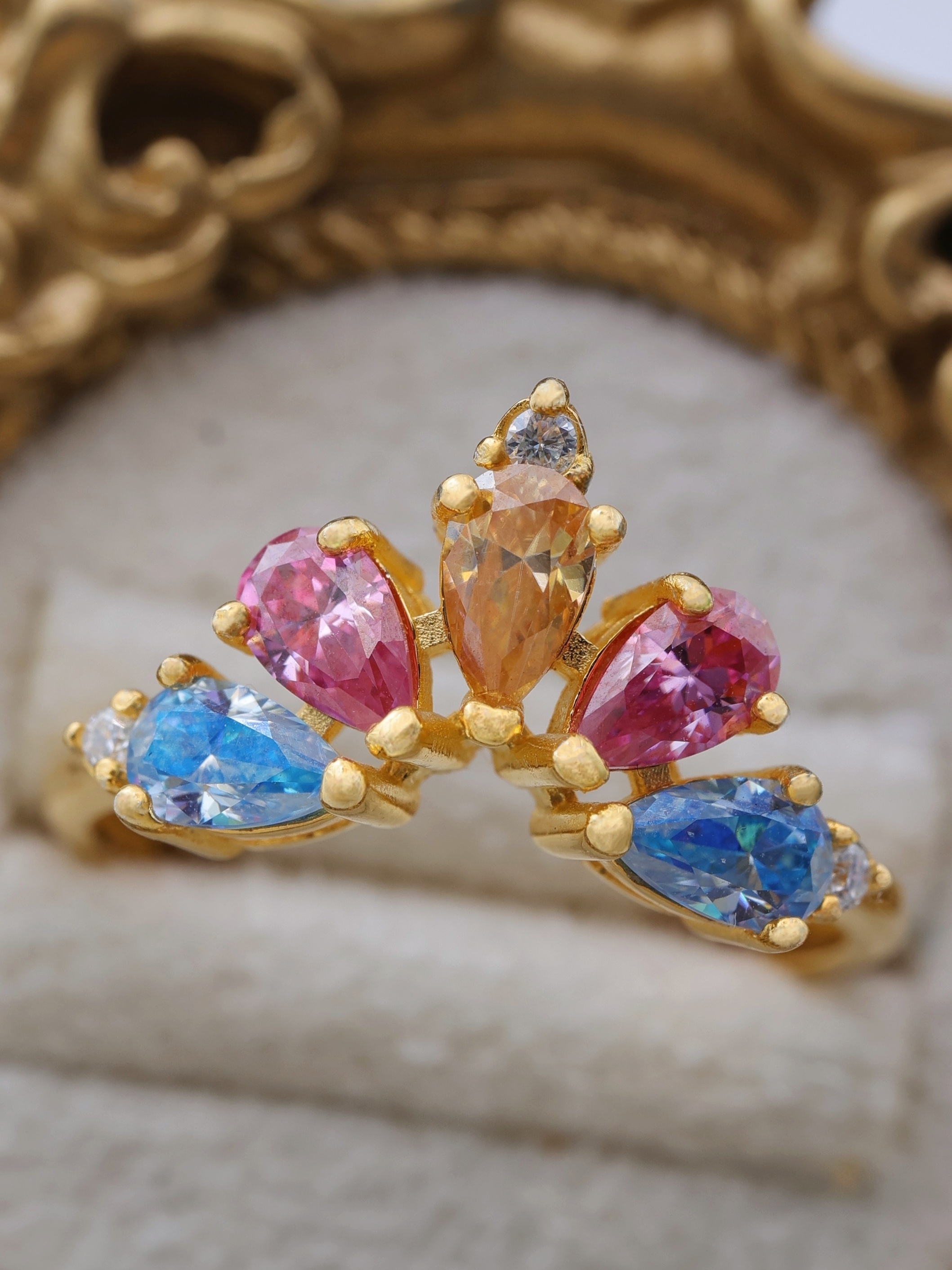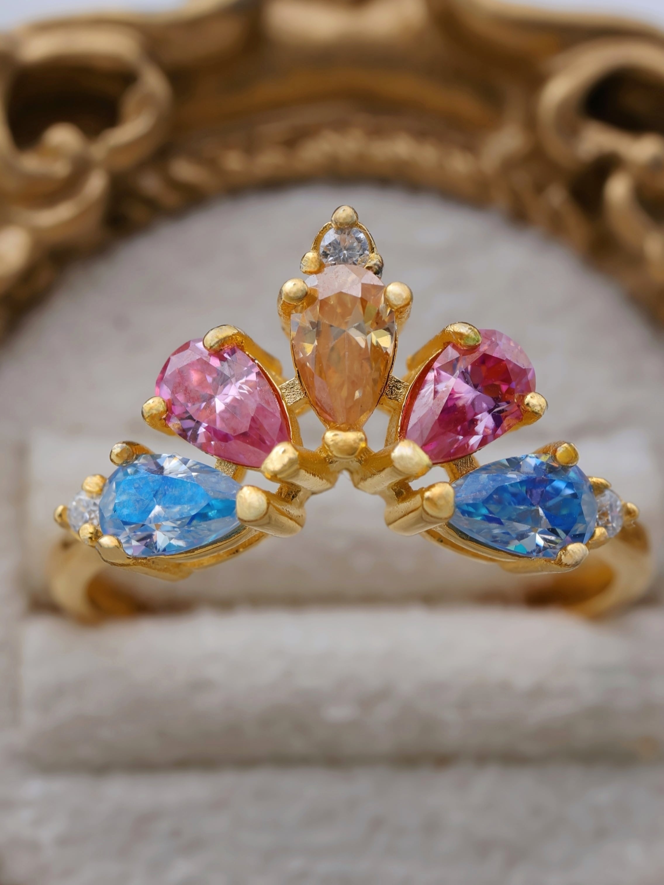 柔らかな春の訪れを思わせる色彩を、そのまま一つの王冠に閉じ込めたようなイメージです。