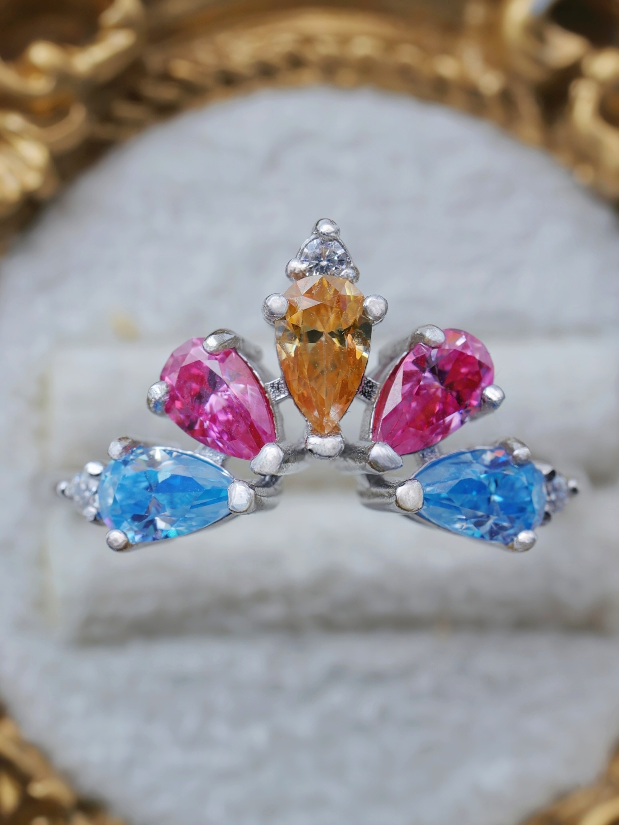 柔らかな春の訪れを思わせる色彩を、そのまま一つの王冠に閉じ込めたようなイメージです。