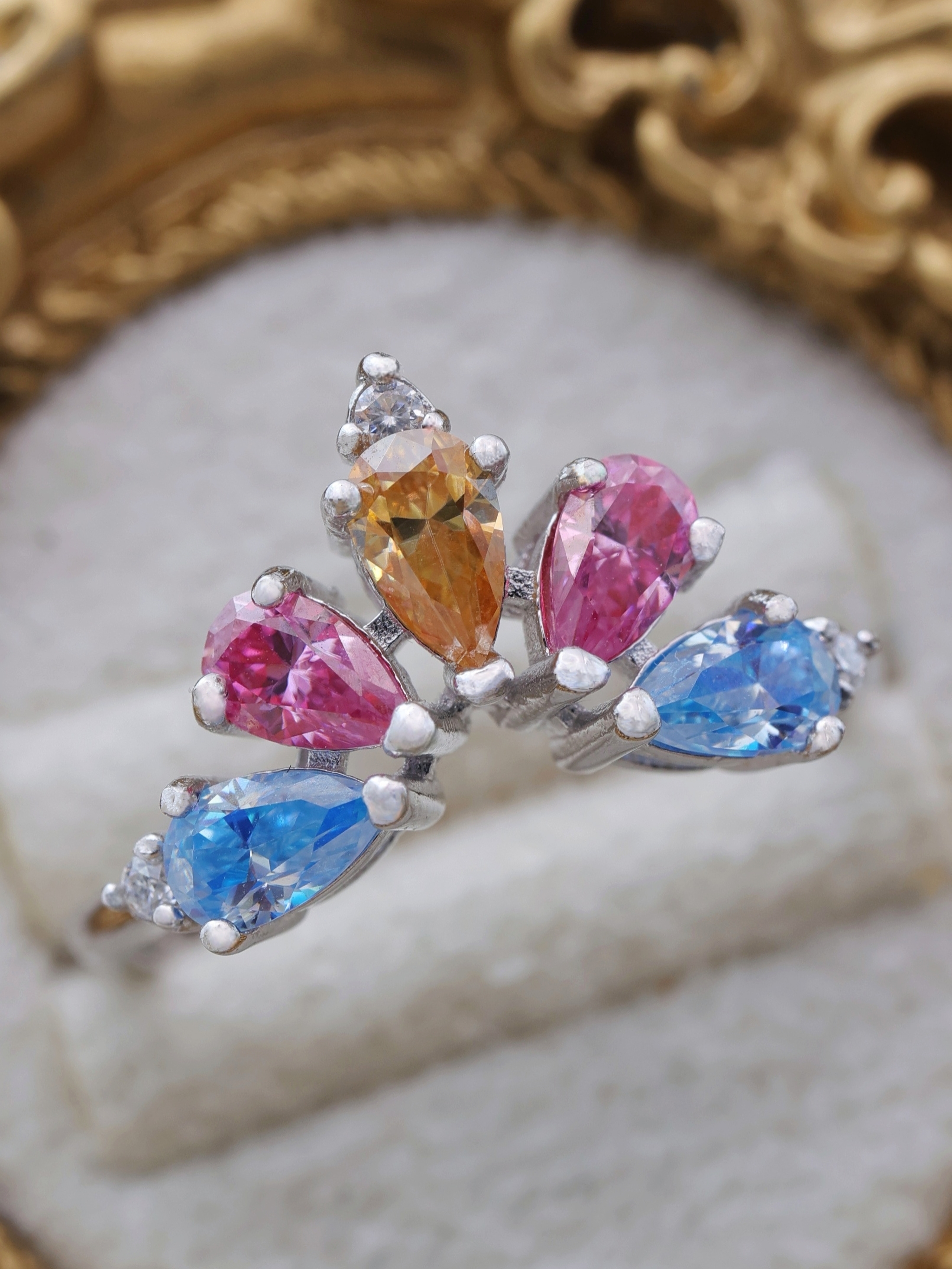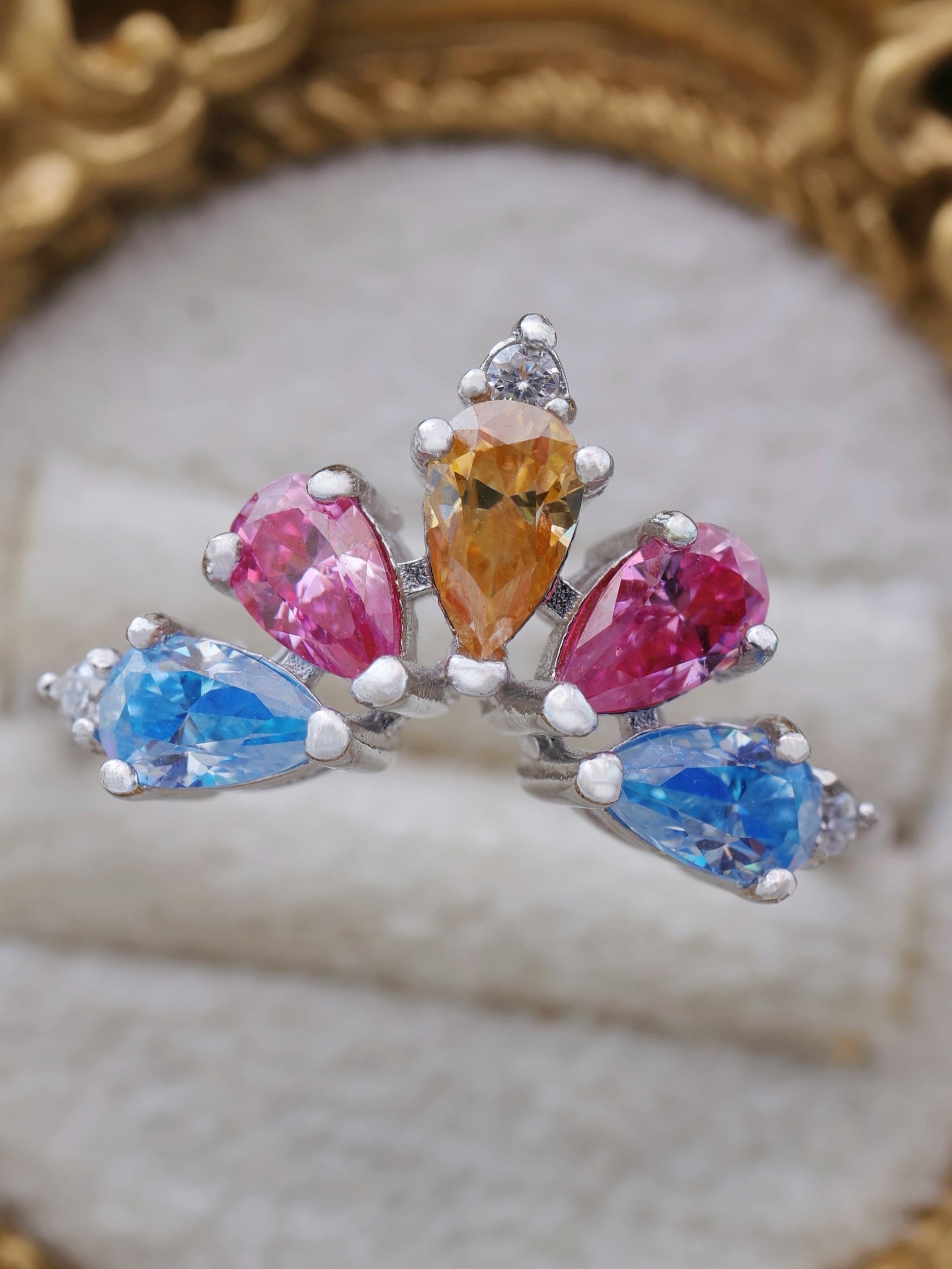 【当店限定モデル】【DREAM CROWN】マルチカラー モアサナイト 虹 S925 シルバー リング