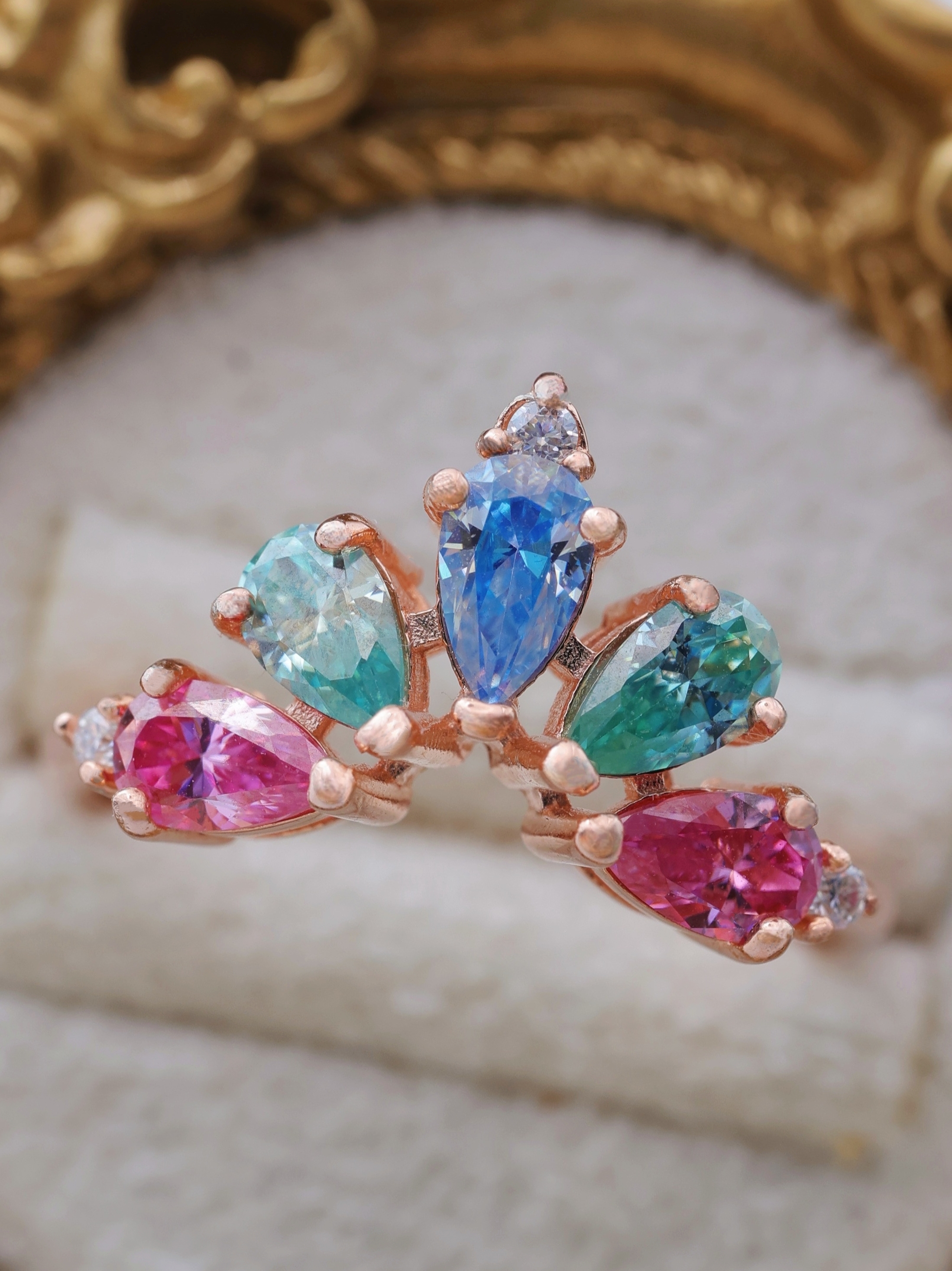 透明度が高く、凛とした青。王冠の中心にふさわしい気品を放つカラー。