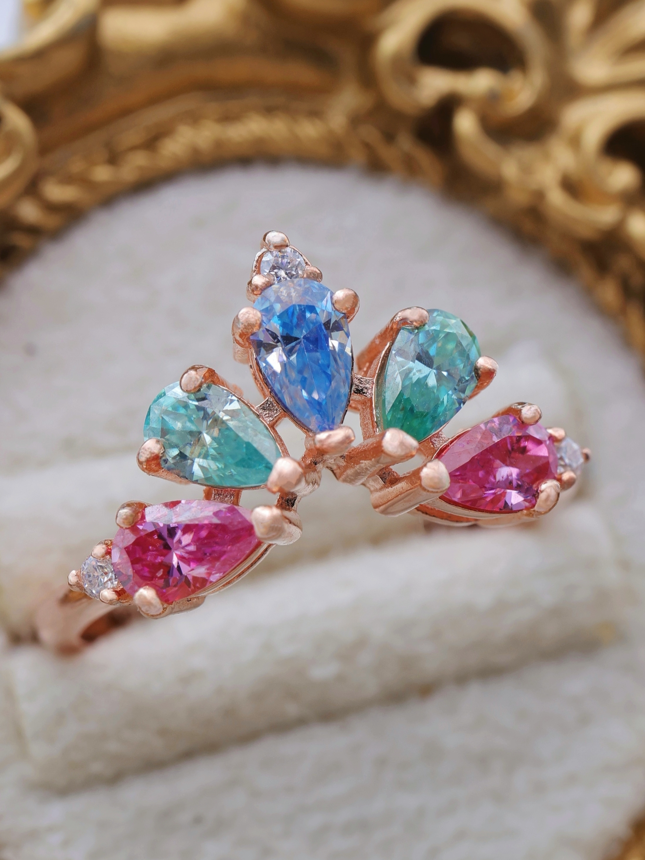 【当店限定モデル】【DREAM CROWN】マルチカラー モアサナイト 虹 S925 シルバー リング
