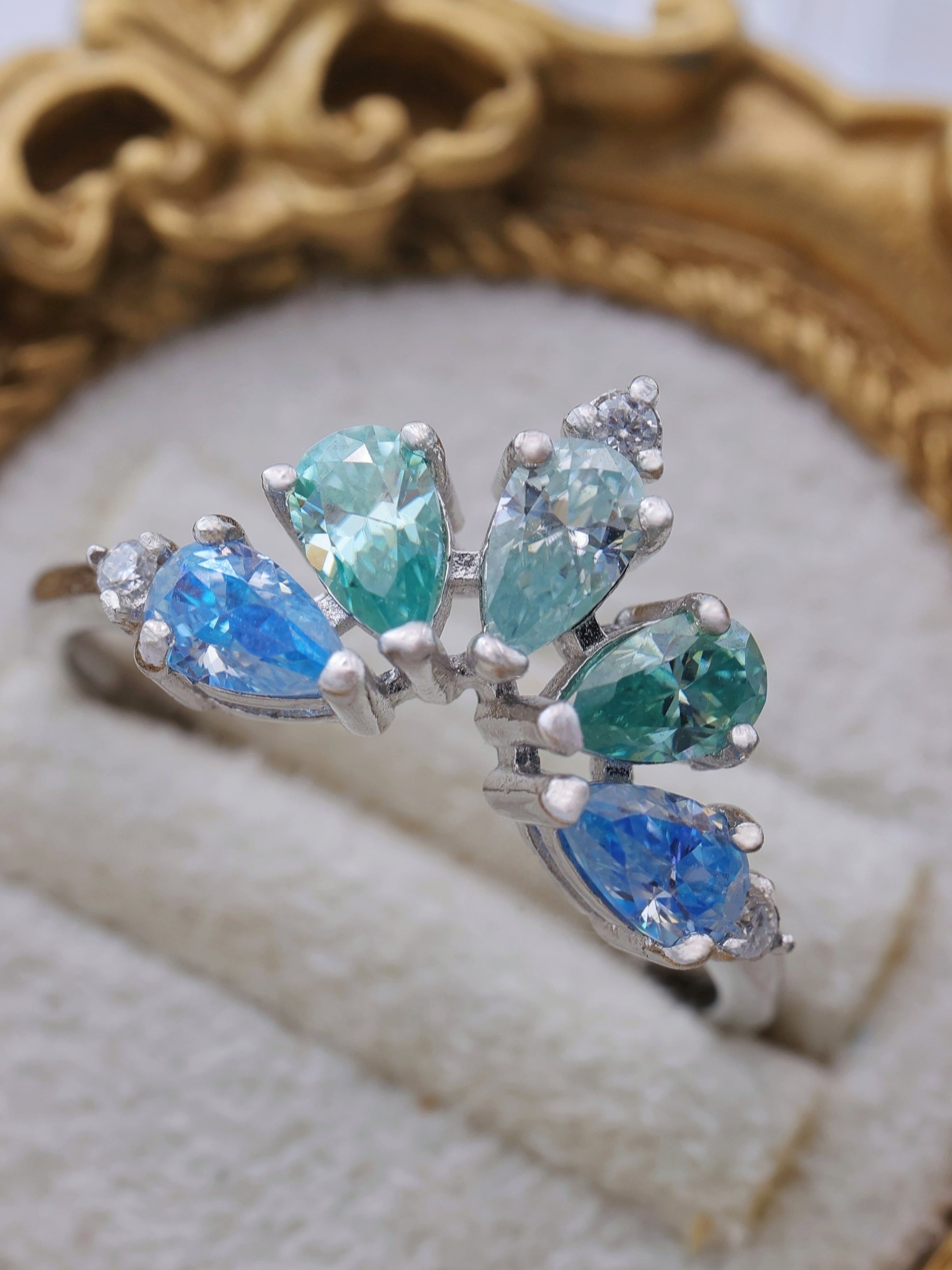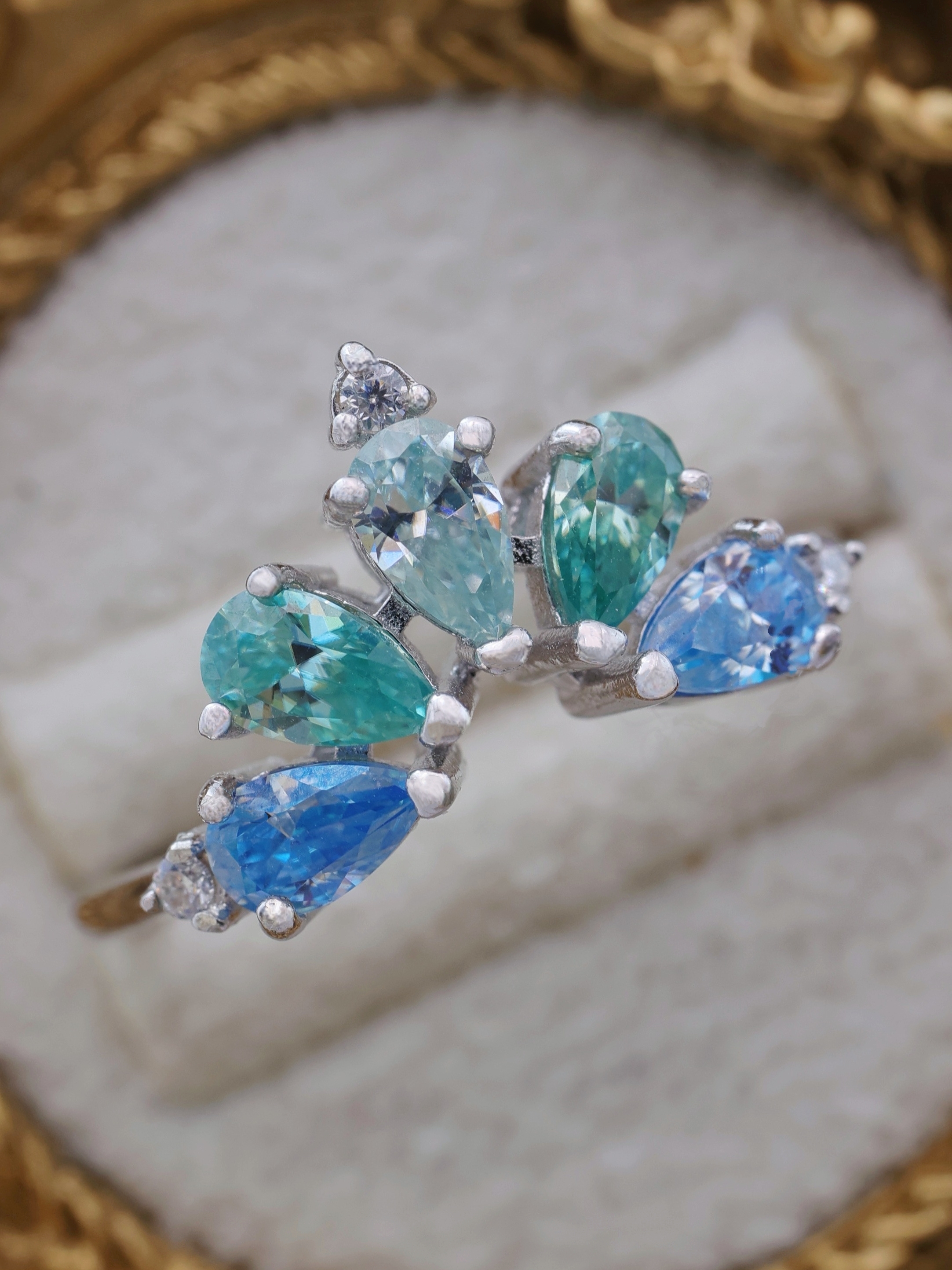 澄んだ光を含んだようなグリーン。王冠の先端に涼やかな輝きを添えます。