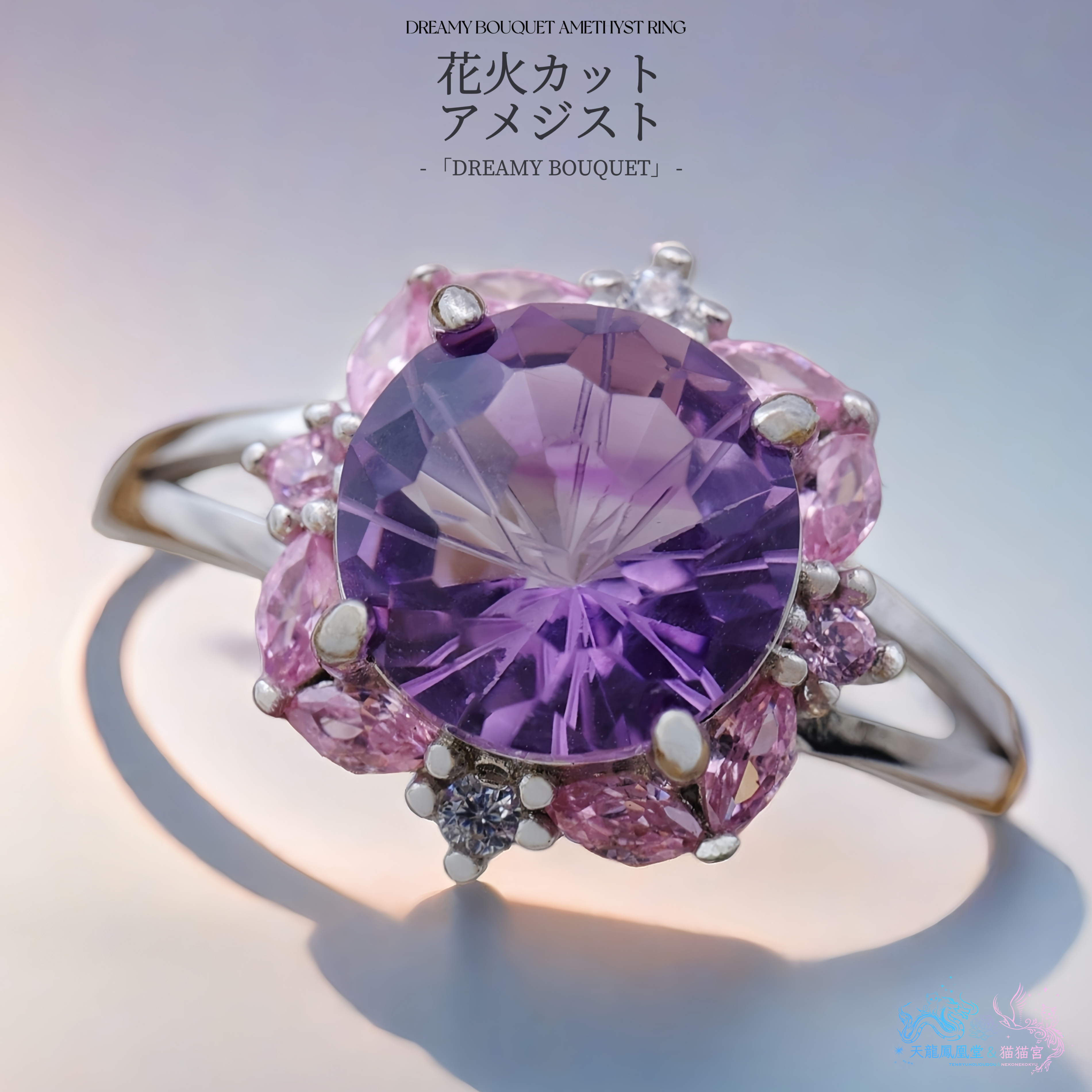 【DREAMY BOUQUET】アメジスト 花火カット 天然石 S925 シルバー リング