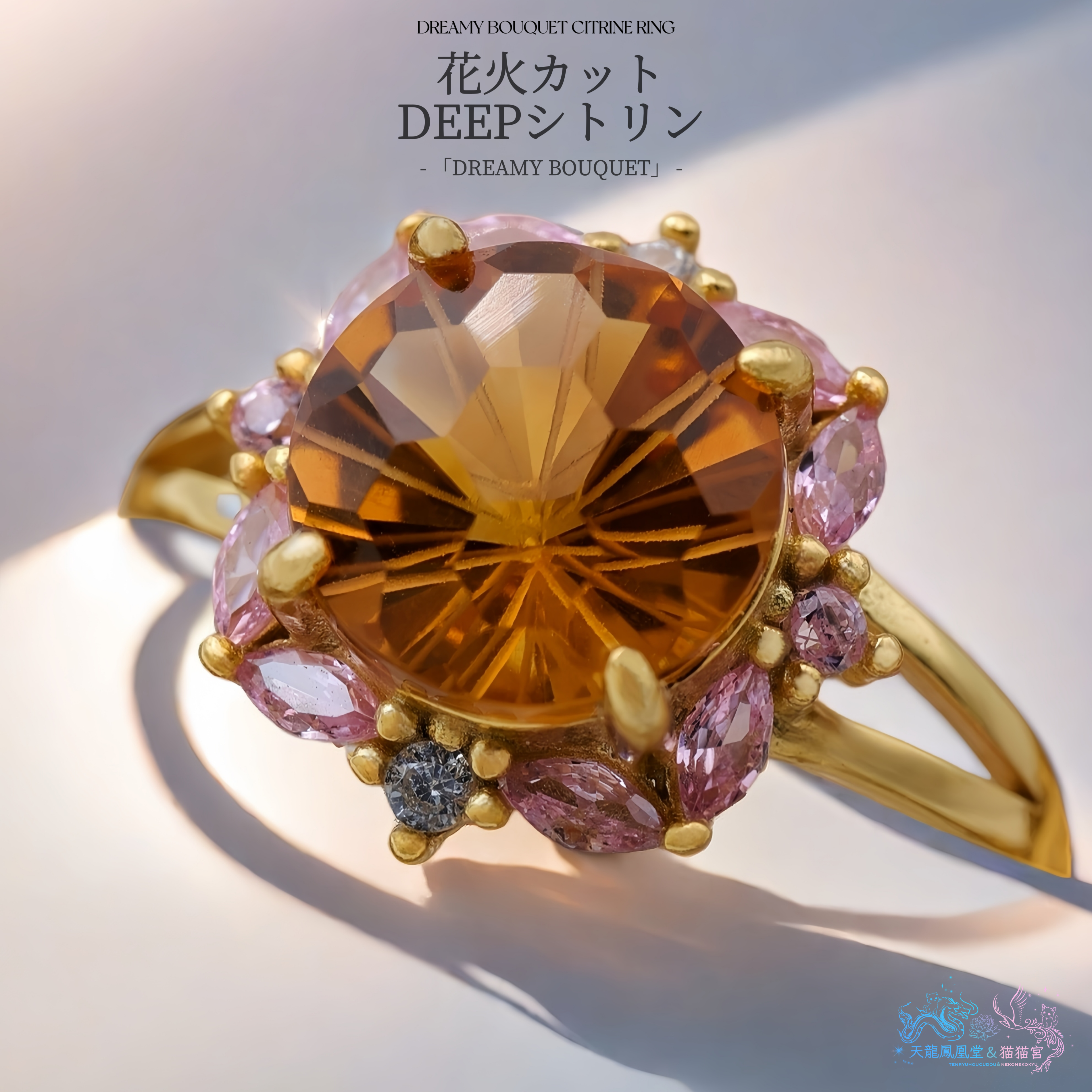 【DREAMY BOUQUET】DEEPシトリン 花火カット 天然石 S925 シルバー リング