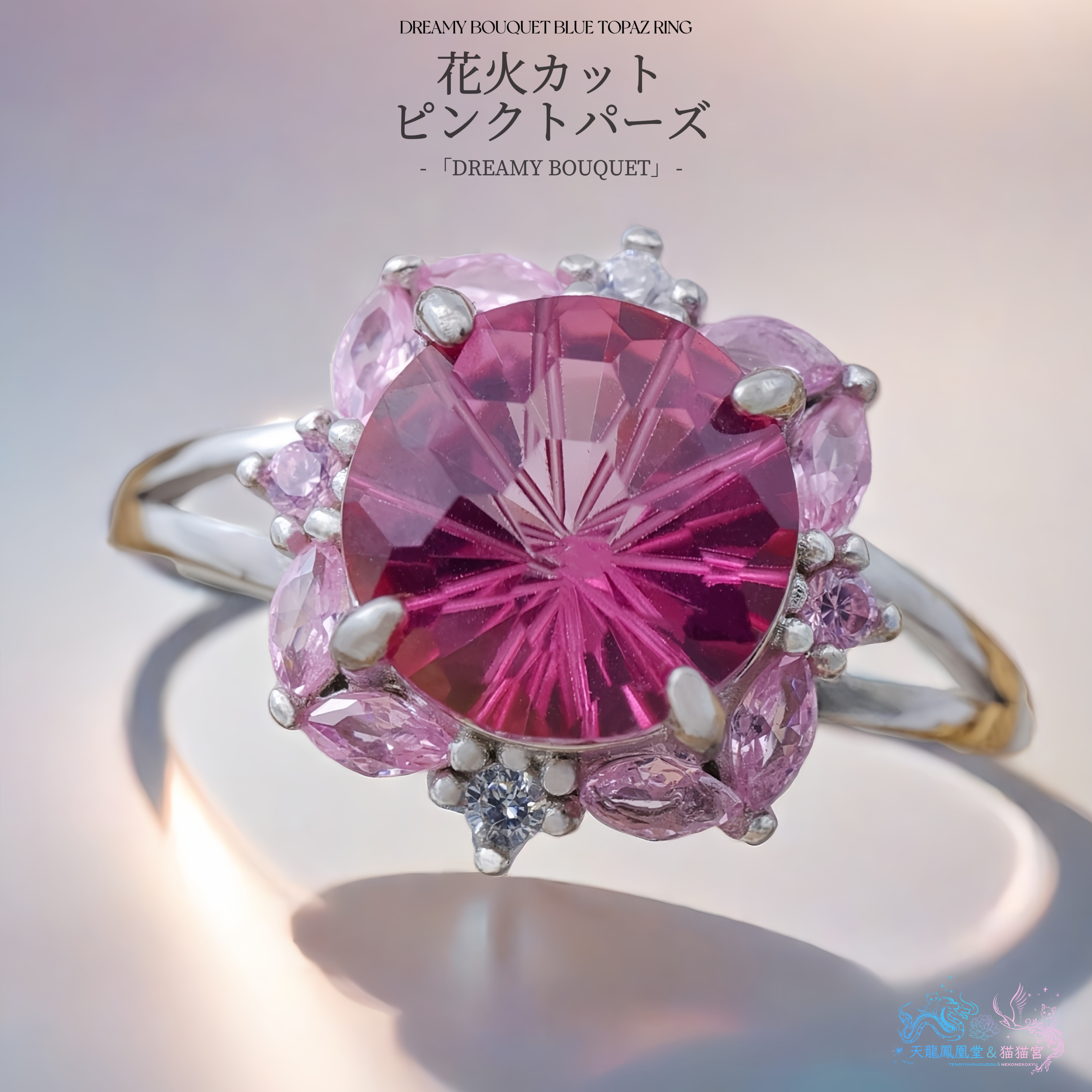 【DREAMY BOUQUET】ピンクトパーズ 花火カット 天然石 S925 シルバー リング
