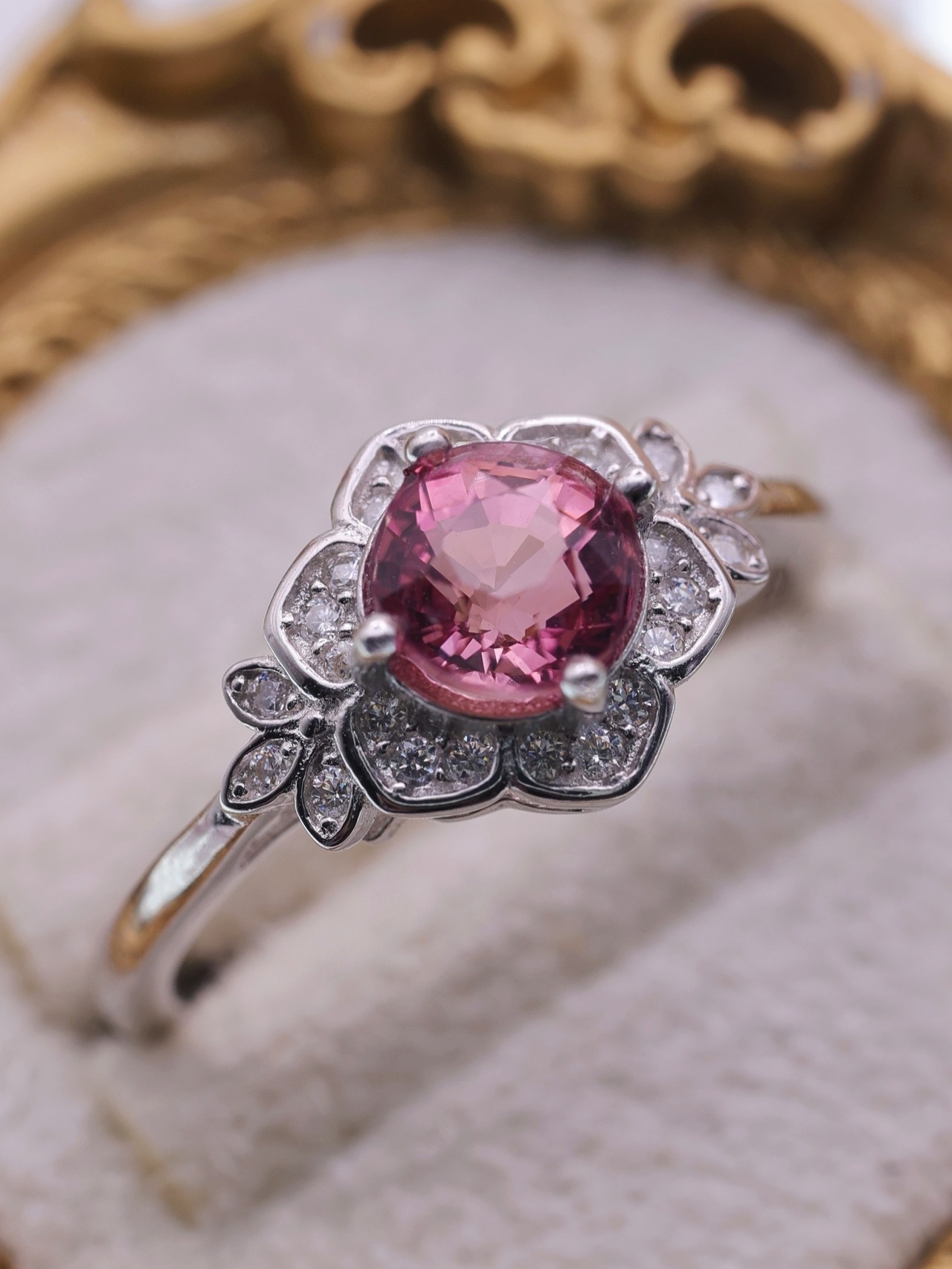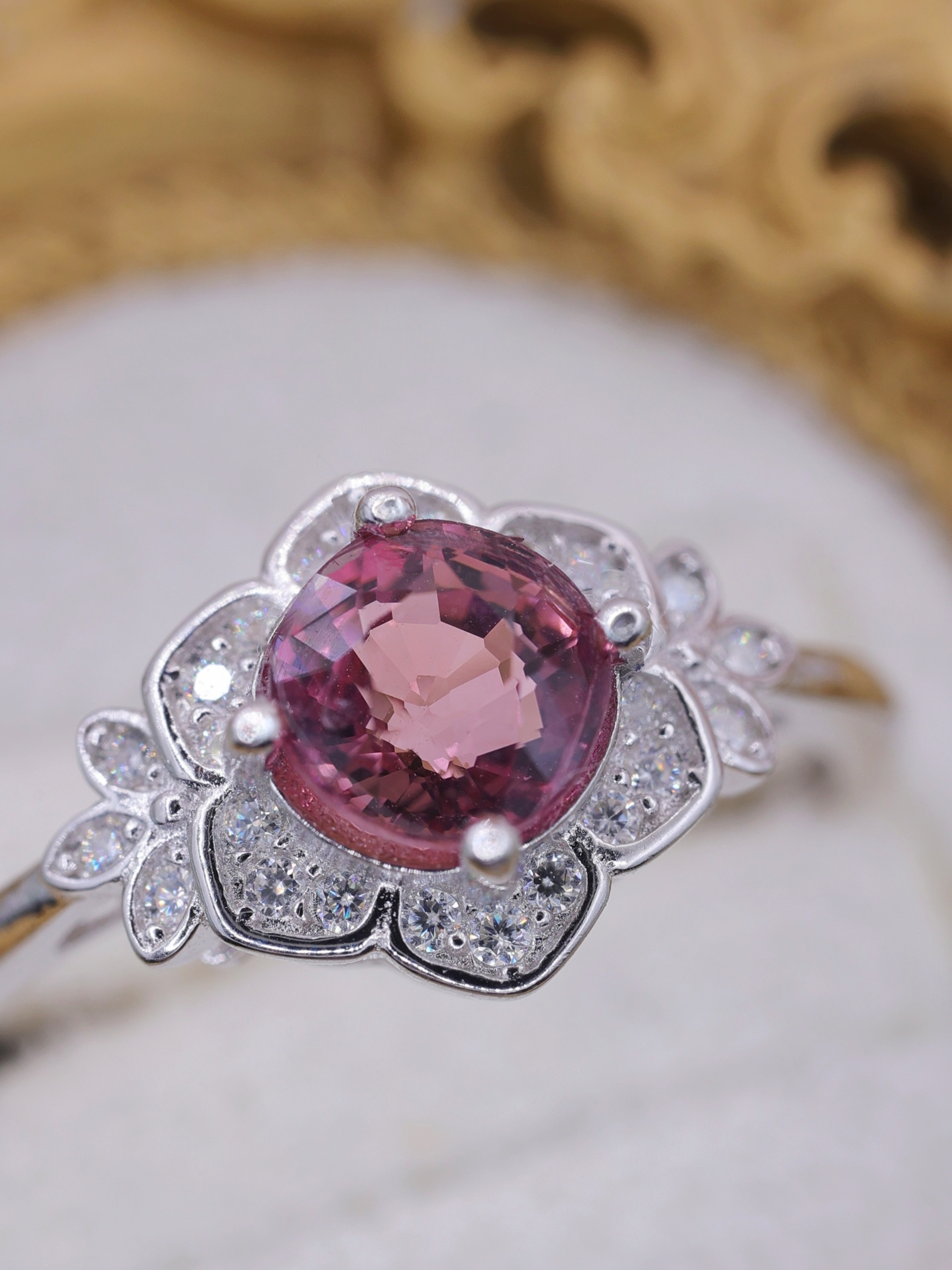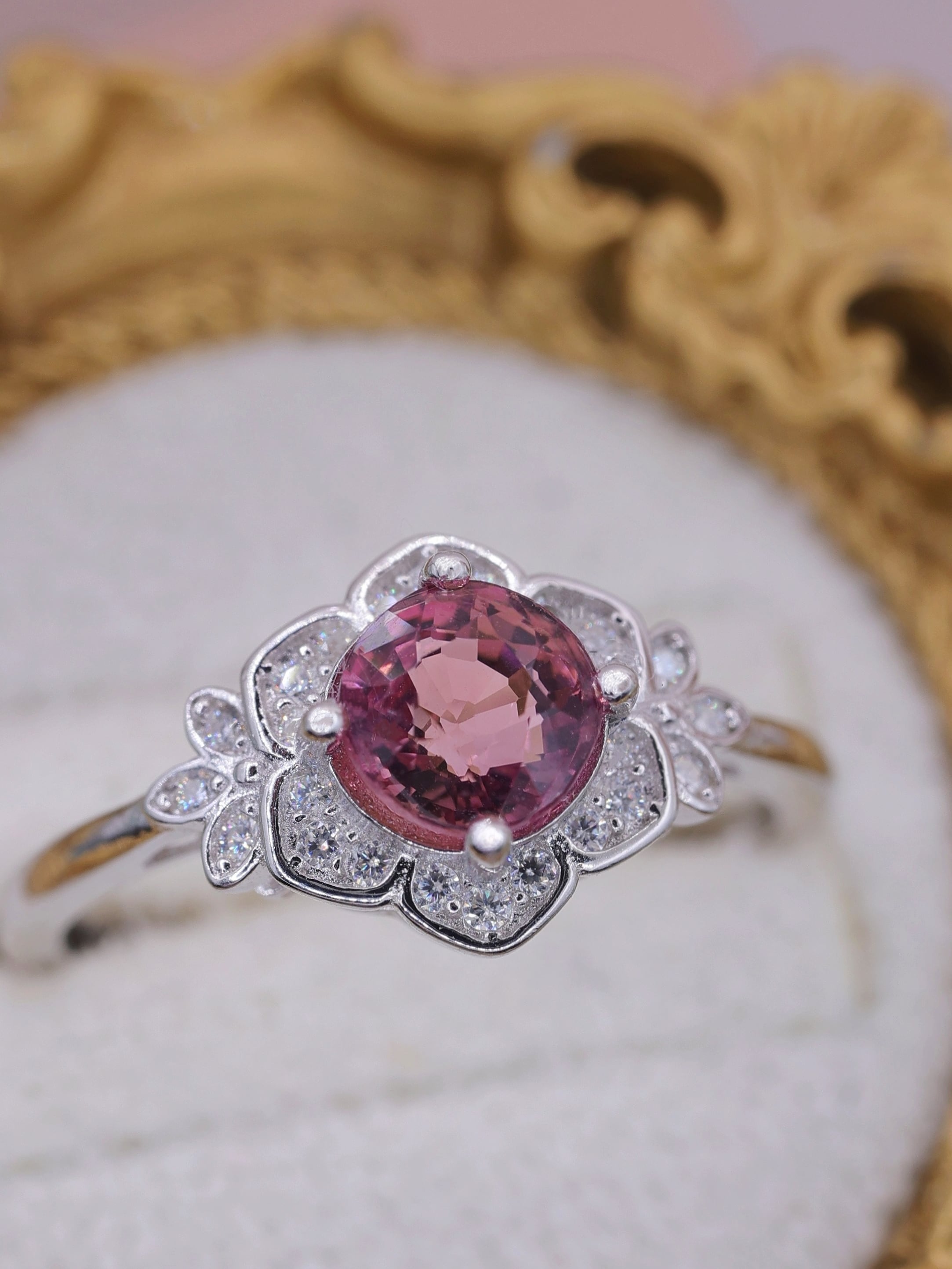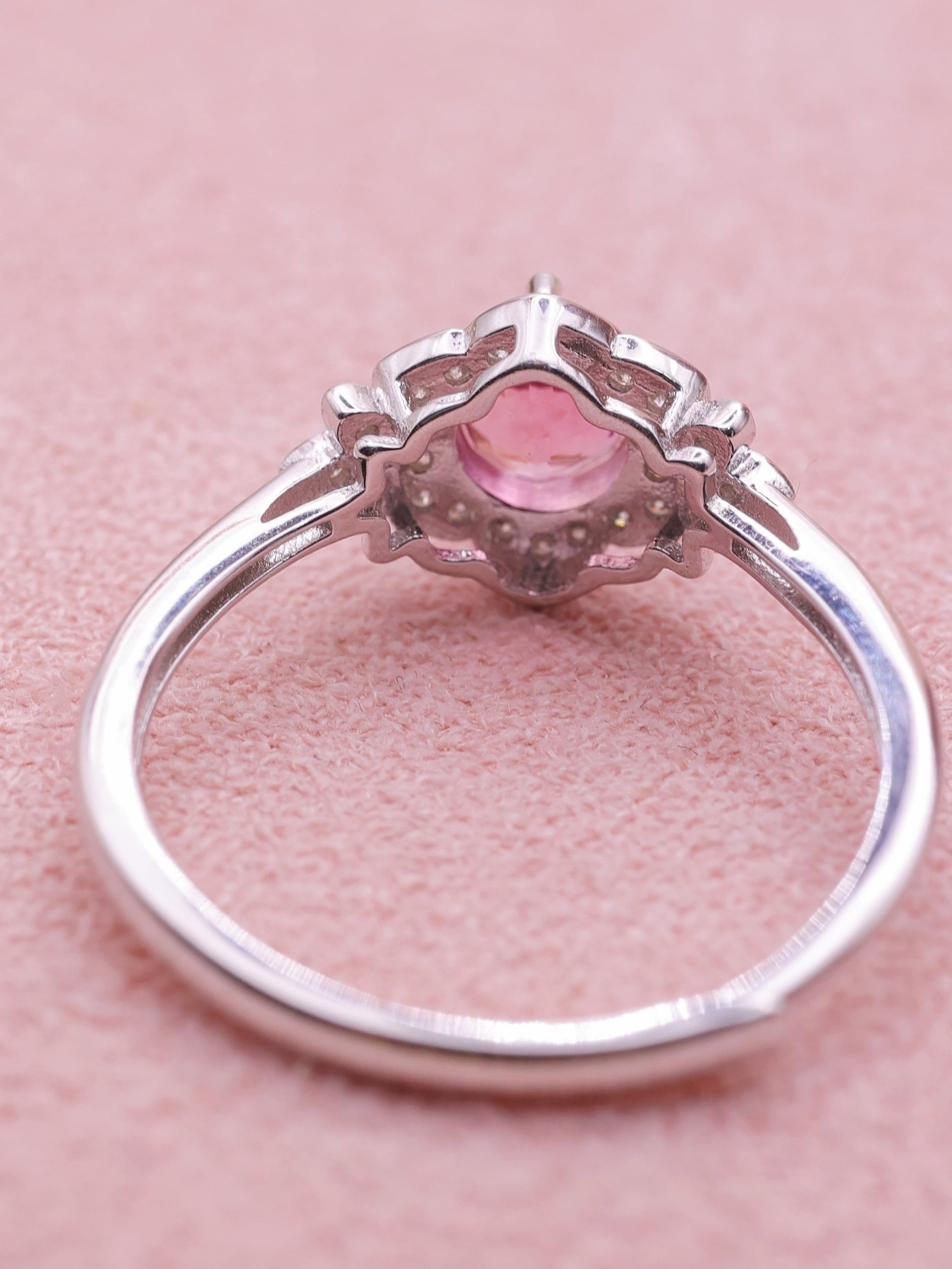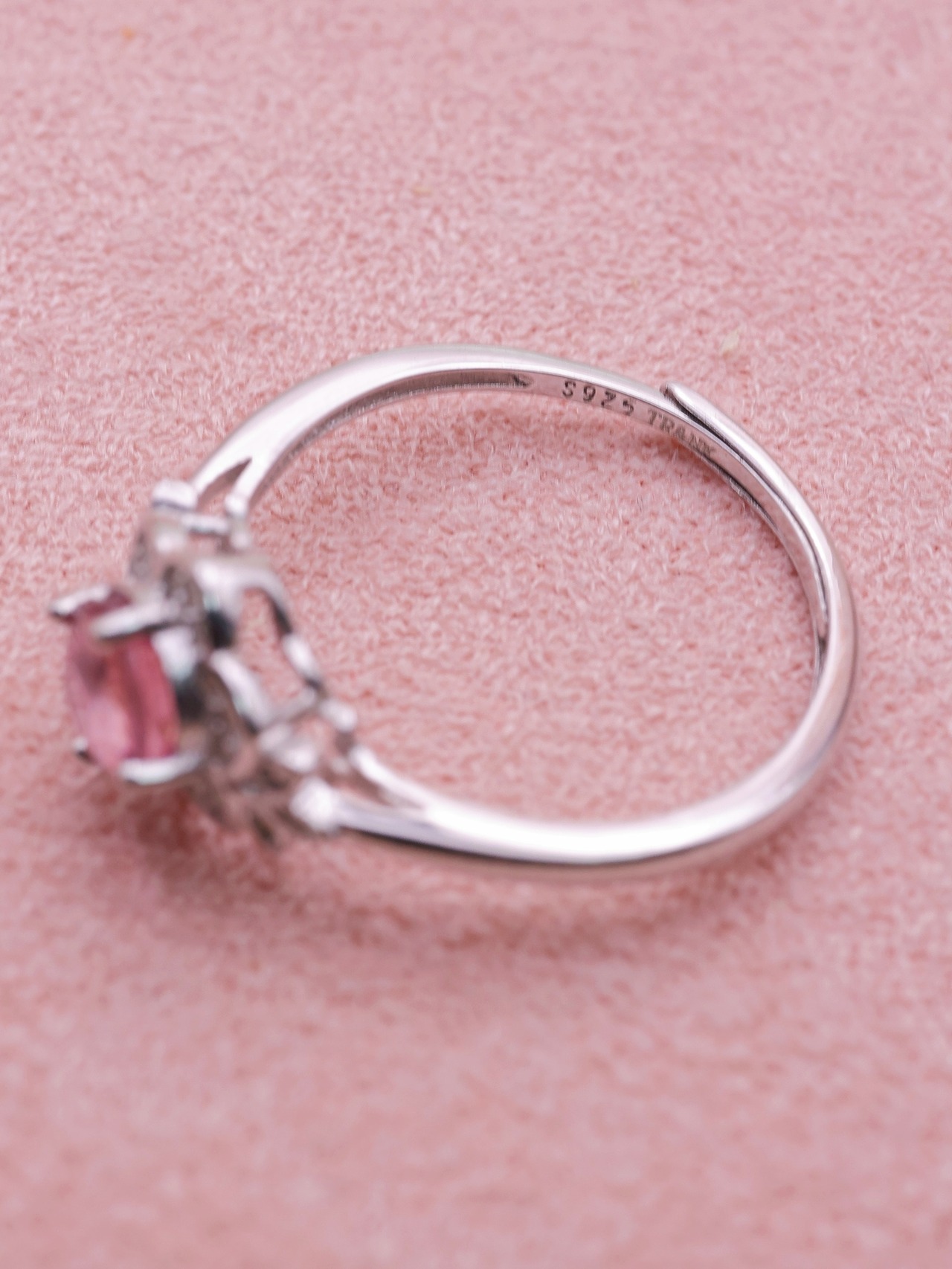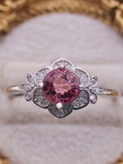 トルマリン特有の奥行きある色彩は、単調になりがちなピンク系とは一線を画し、角度や光量によって表情を変えながら、気品ある輝きを指元に添えます。