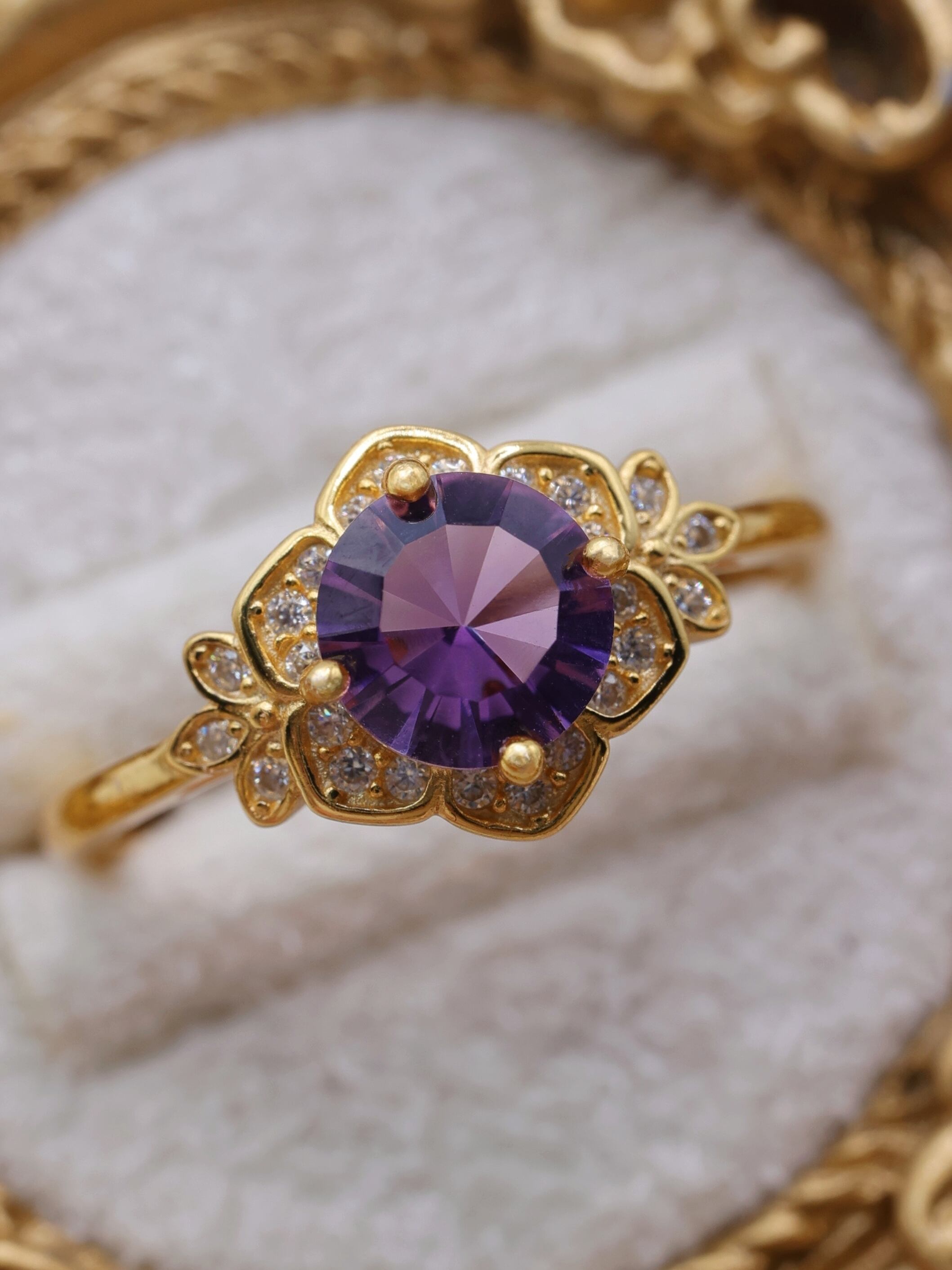一般的なファセットカットでは平面的に見えがちな紫も、