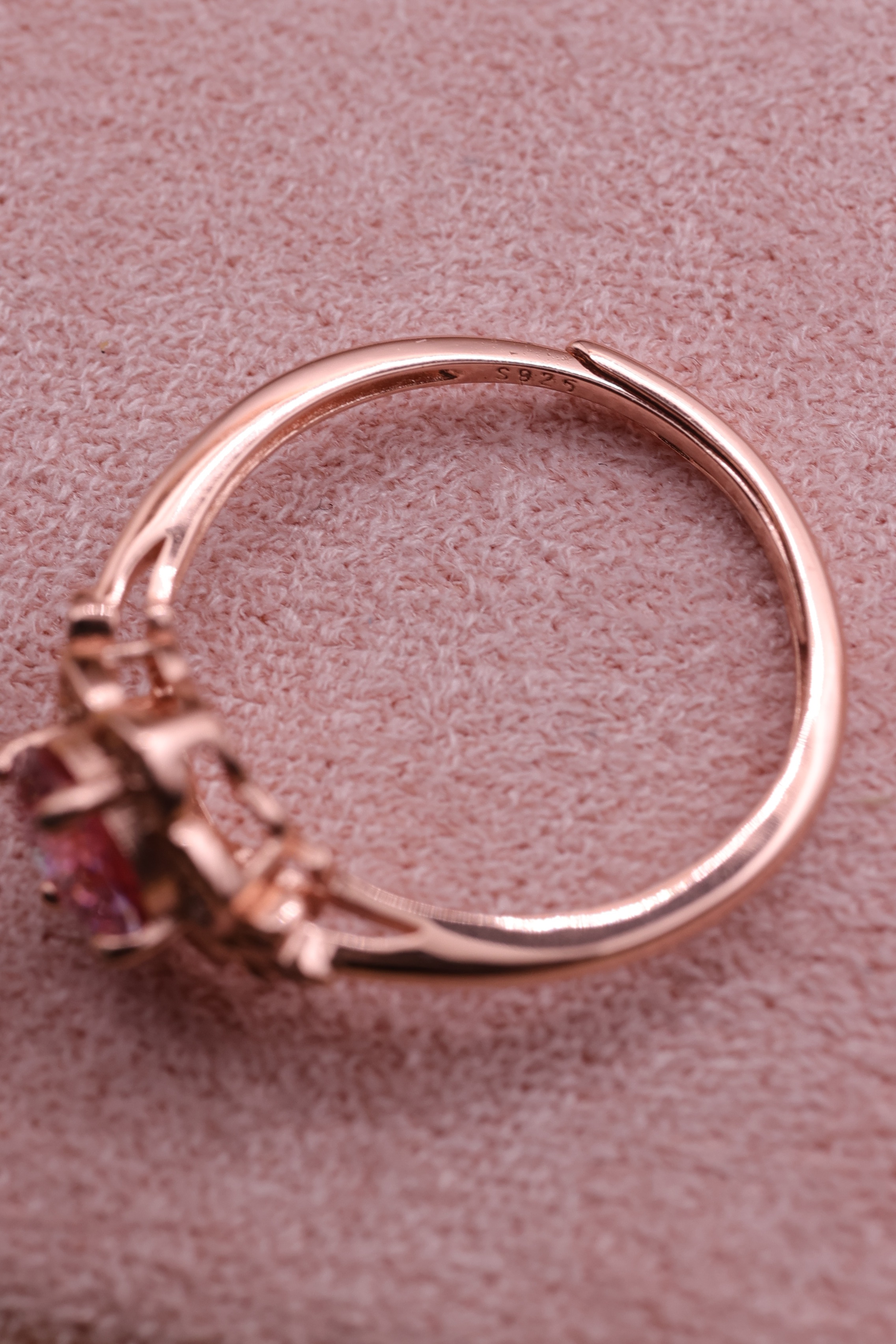 地金には、ピンクカラーの石と相性の良いローズゴールドカラーを採用。