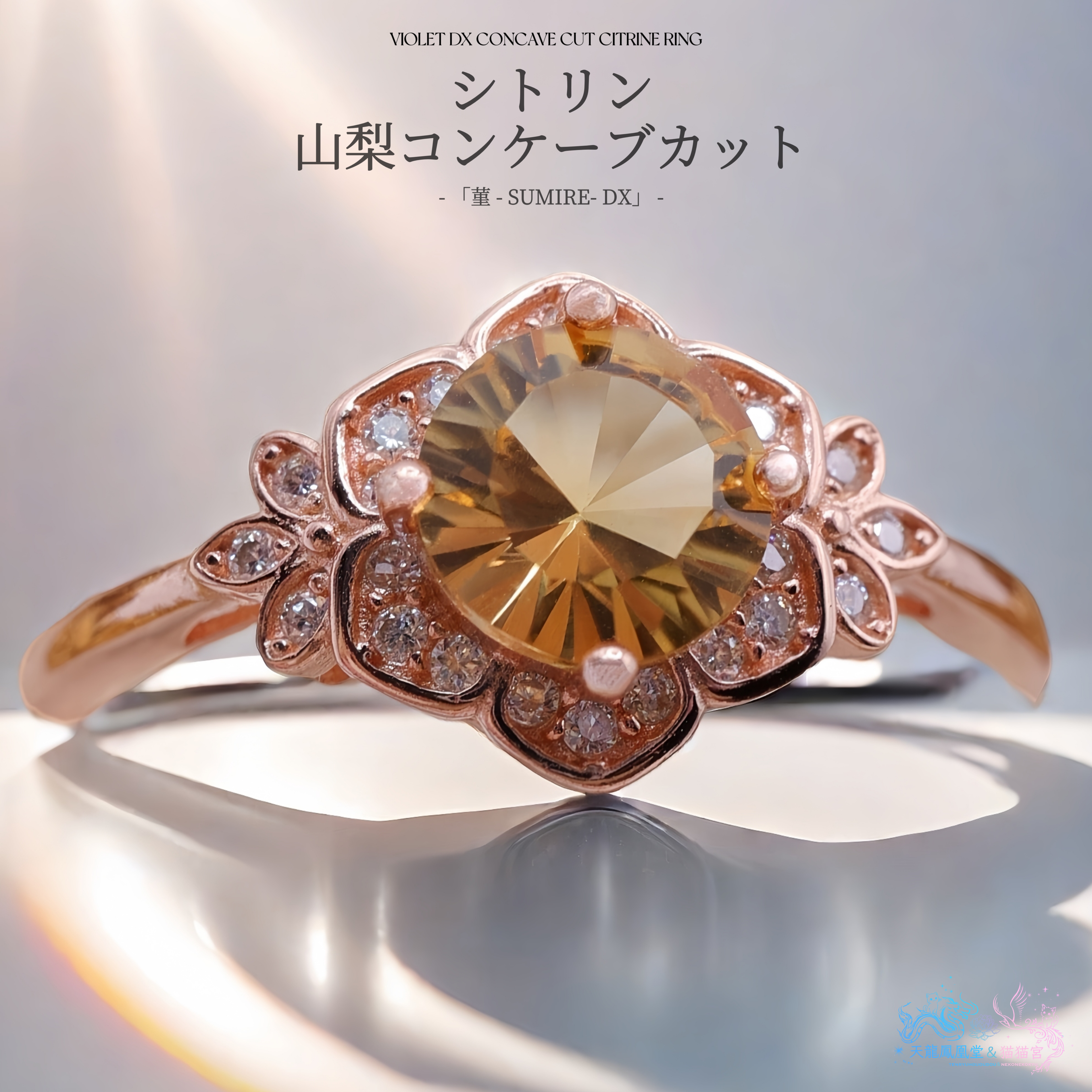 本作は、山梨の宝石職人が一石ずつ手作業で仕上げた、コンケーブカット・シトリンを主石に据えた「菫 − SUMIRE − DX」シリーズの一作です。