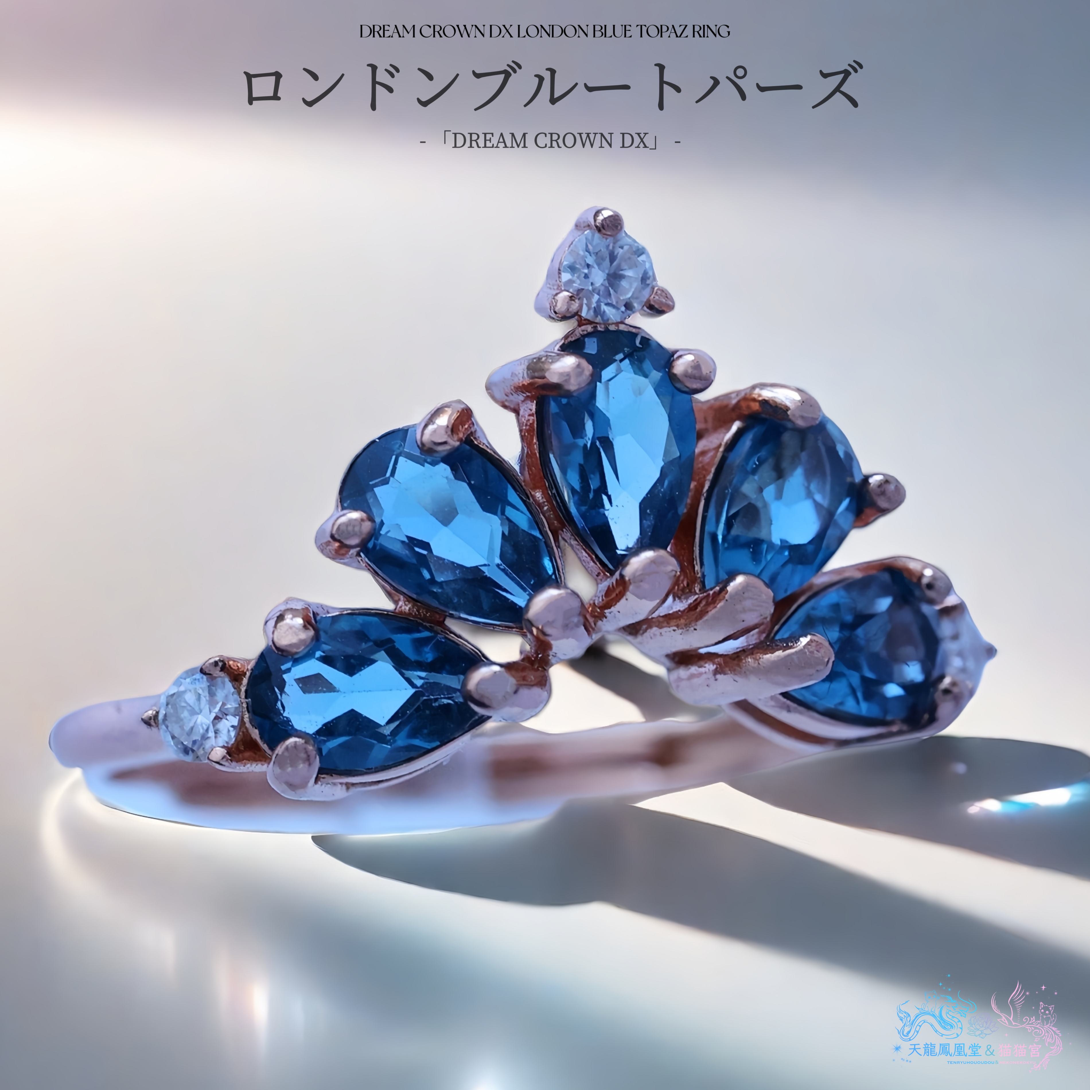 ロンドンの夜空を思わせる、深く落ち着いたブルーが魅力のロンドンブルートパーズを主役にした《DREAM CROWN DX》シリーズのリング。