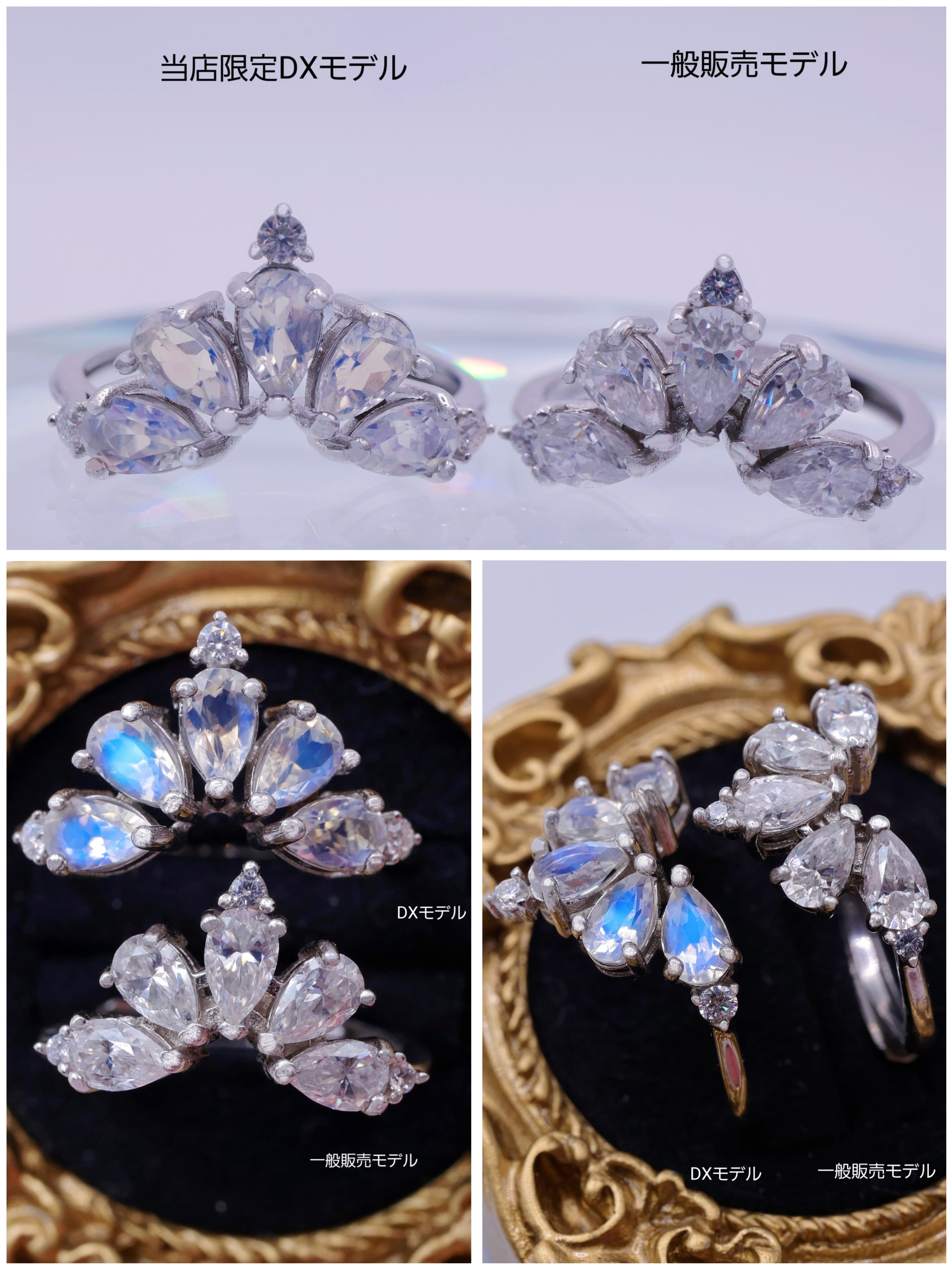 上部(石やデザイン部分)を無理に広げたり縮めたりすると、石割れや爪の緩みにつながる恐れがあります。