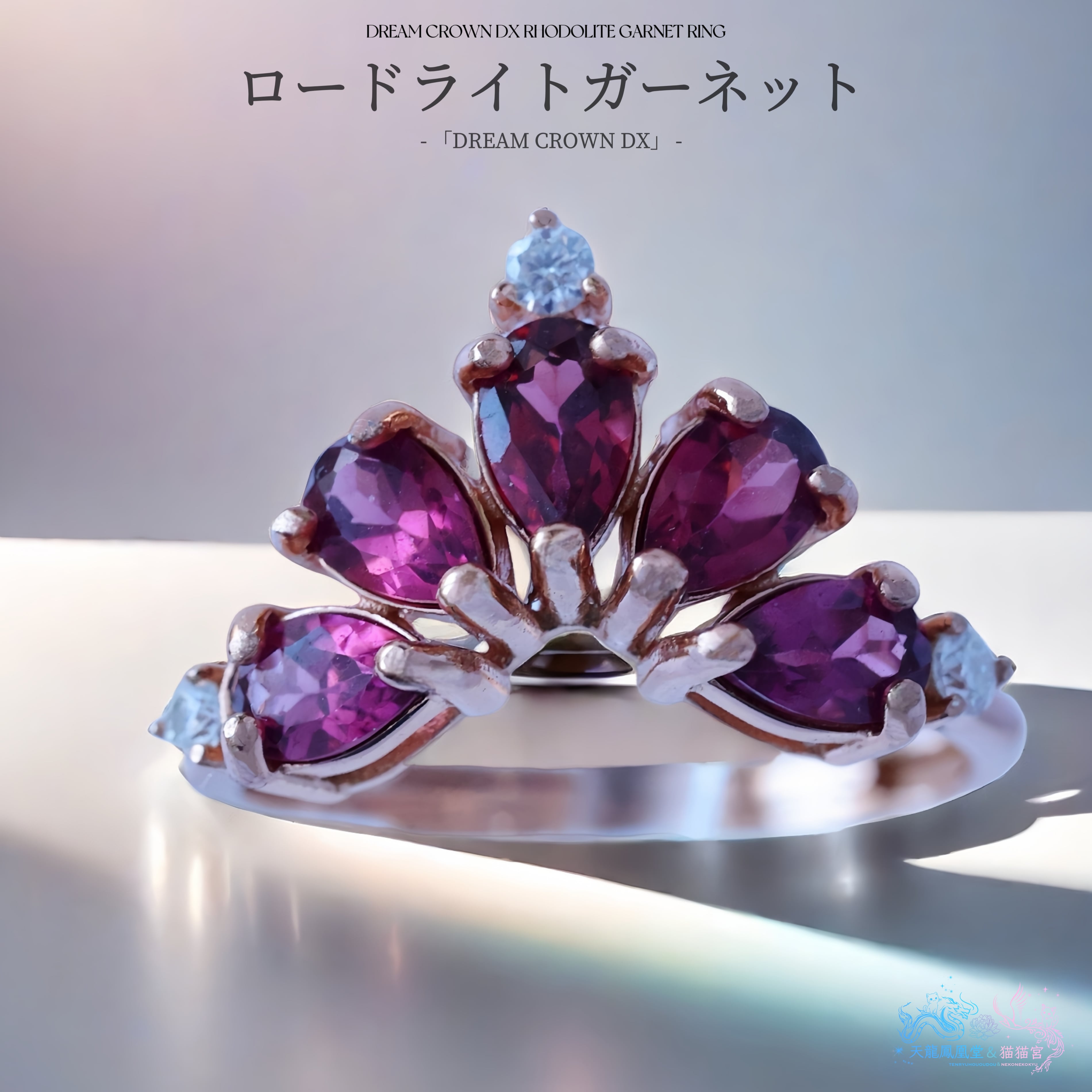 ロードライトガーネットを主役にした《DREAM CROWN DX》シリーズのリング。