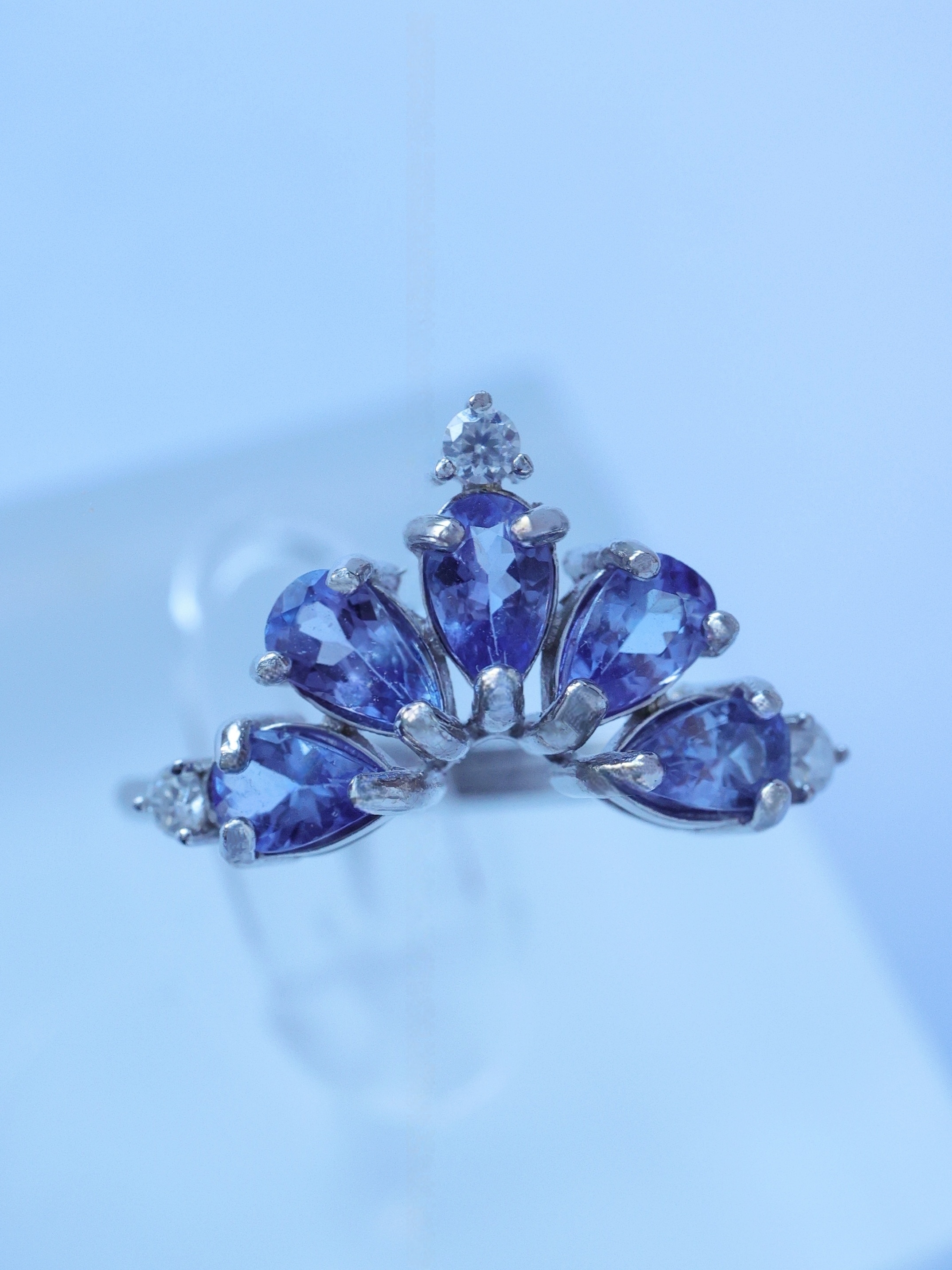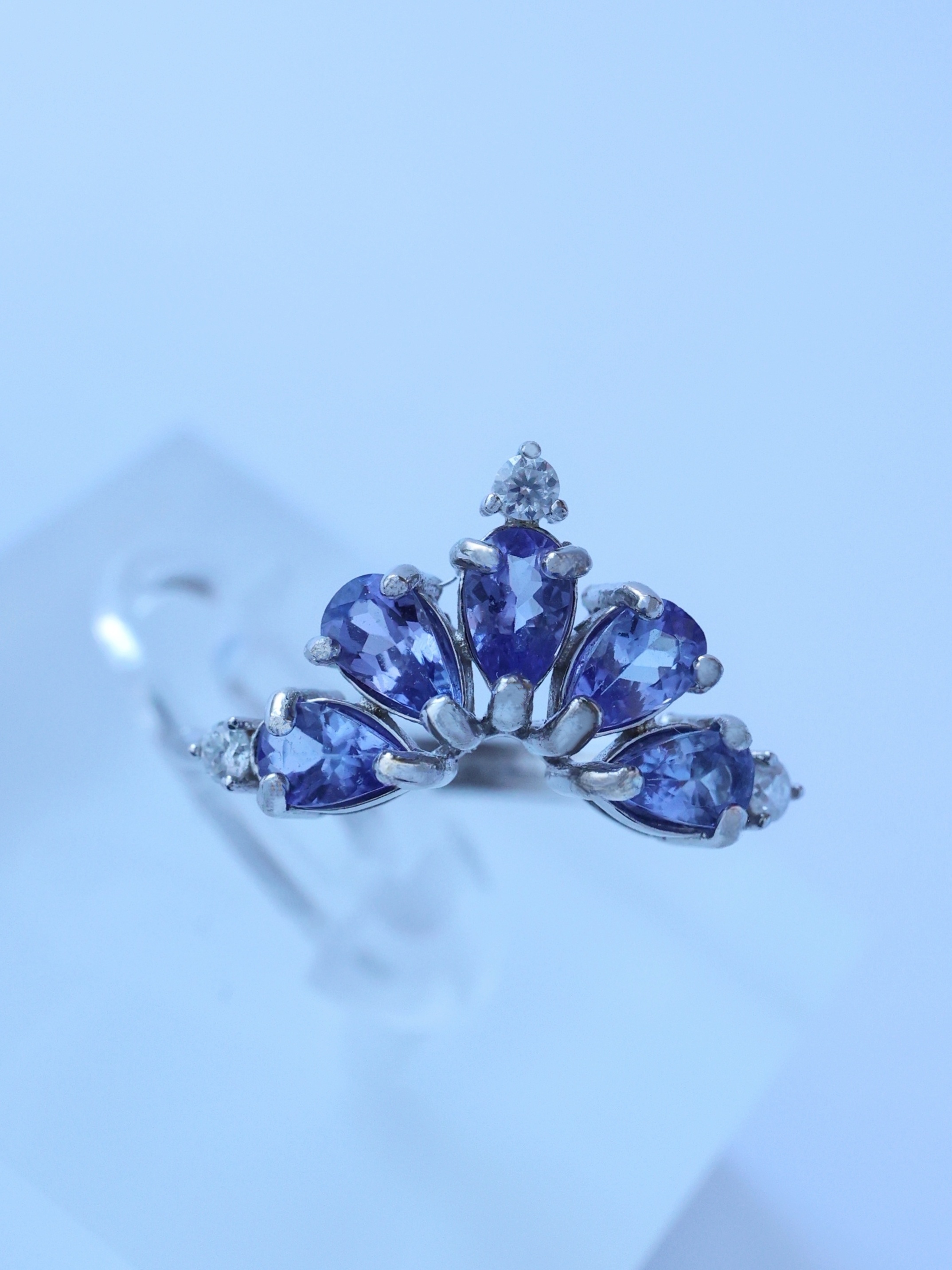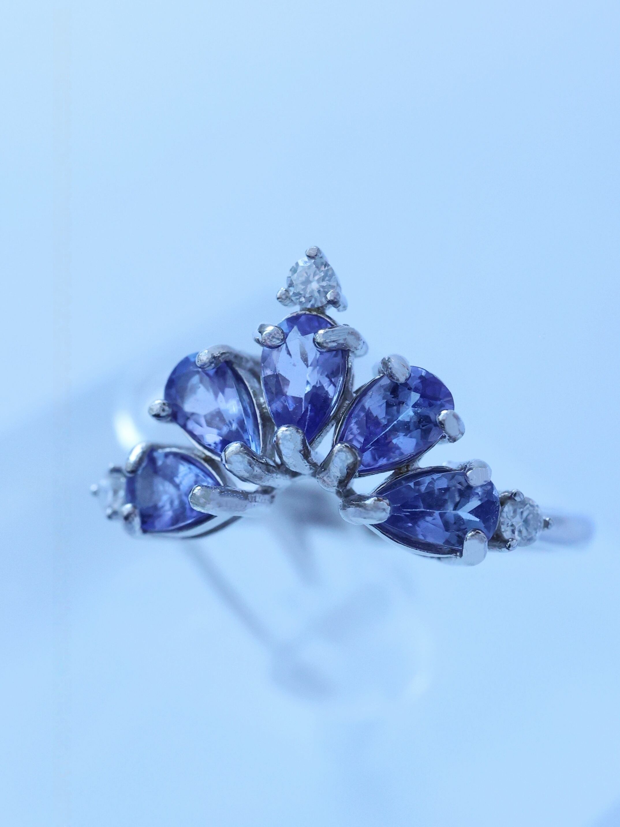 光を受ける角度によって、ブルーが強く現れたり、ヴァイオレットの気配が浮かび上がったりと、タンザナイトならではの奥行きある表情を楽しめます。