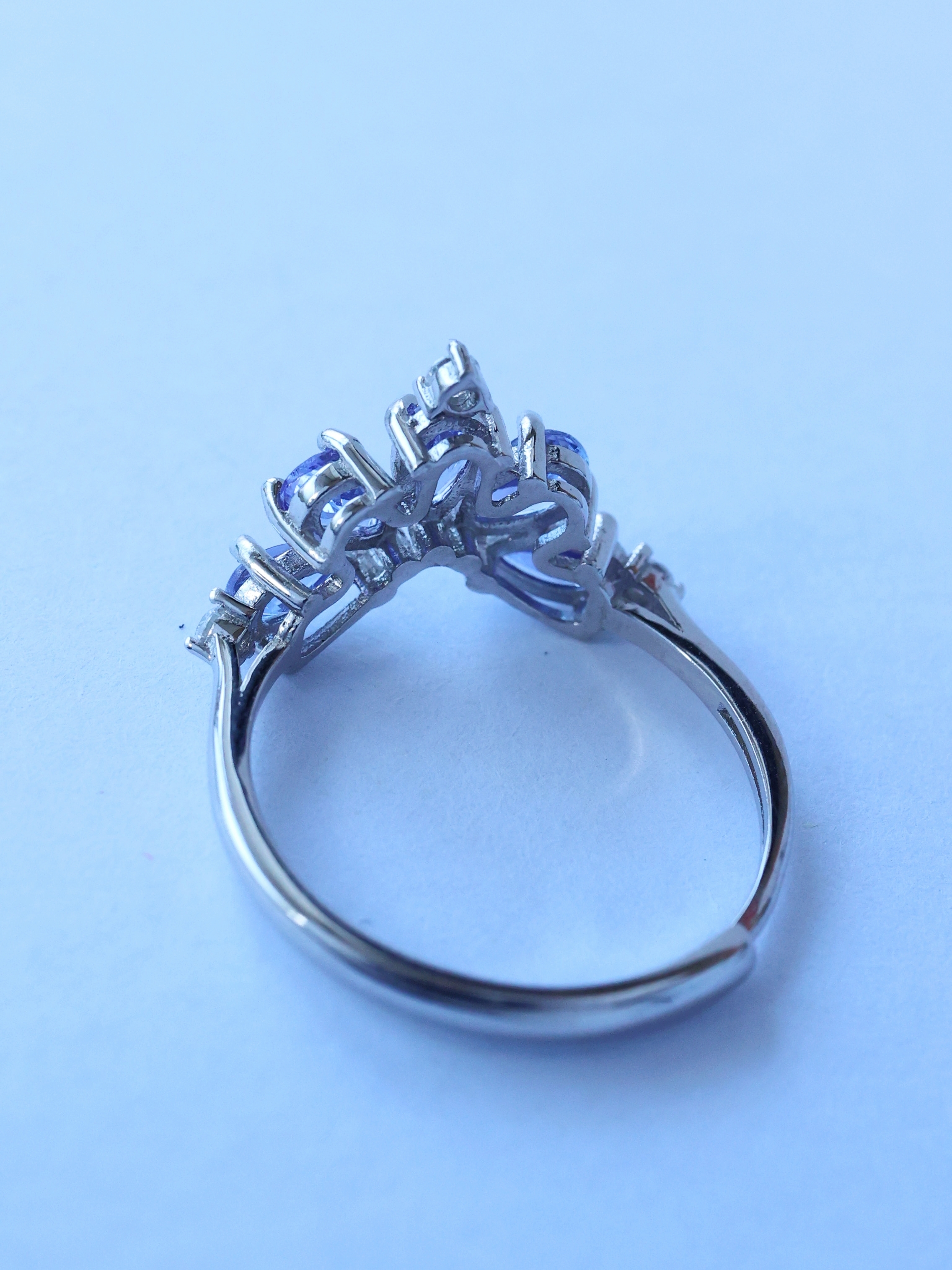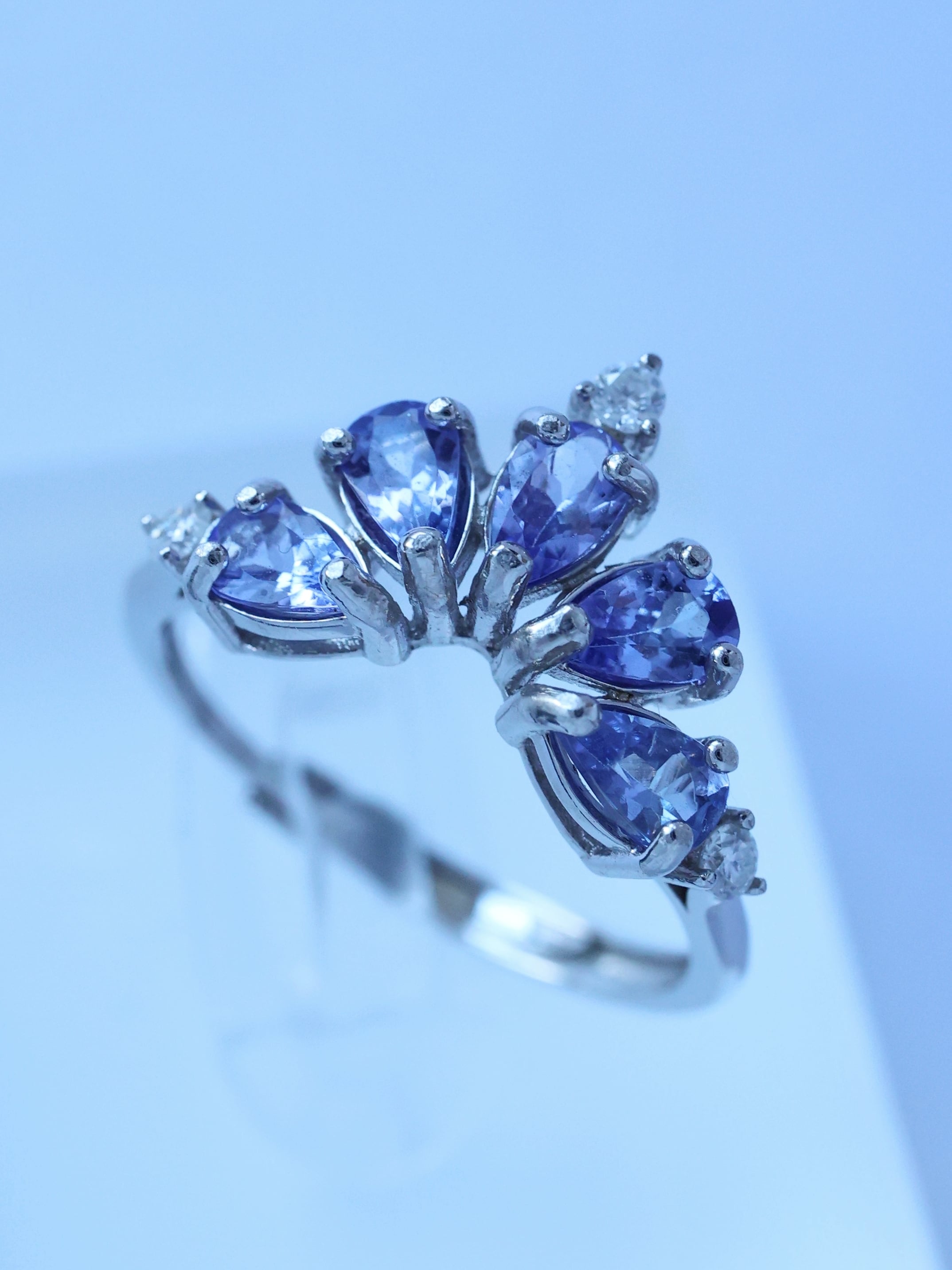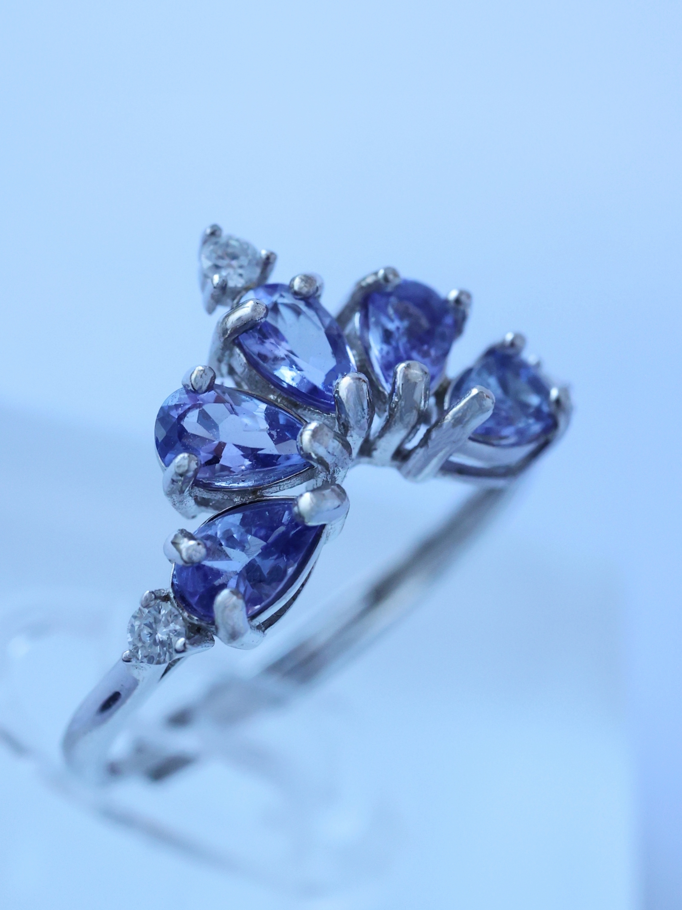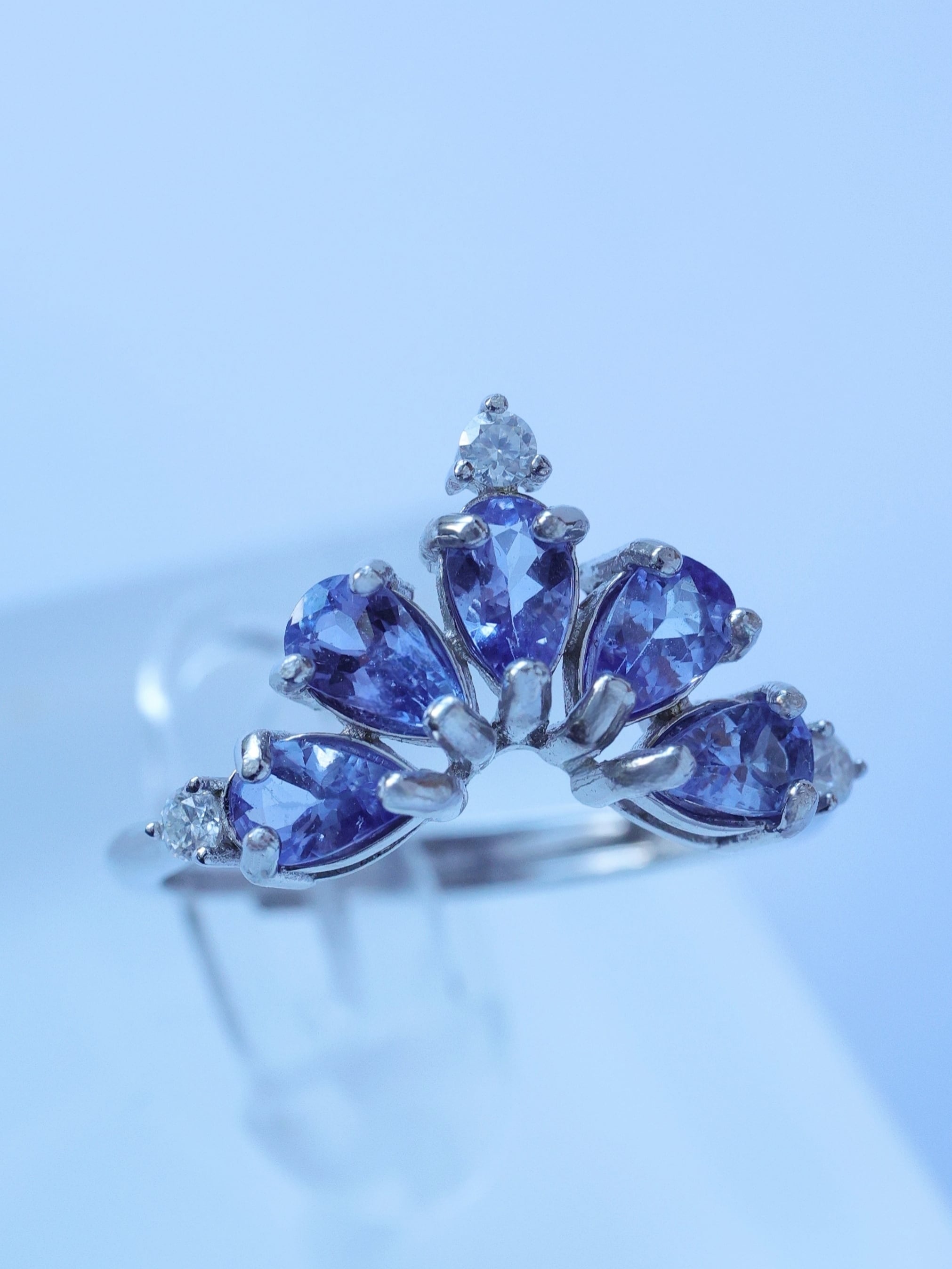 光を受ける角度によって、ブルーが強く現れたり、ヴァイオレットの気配が浮かび上がったりと、タンザナイトならではの奥行きある表情を楽しめます。