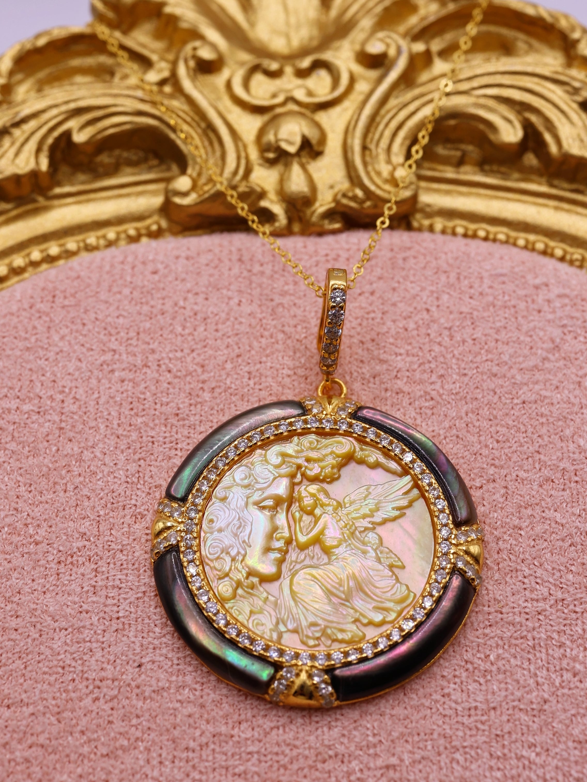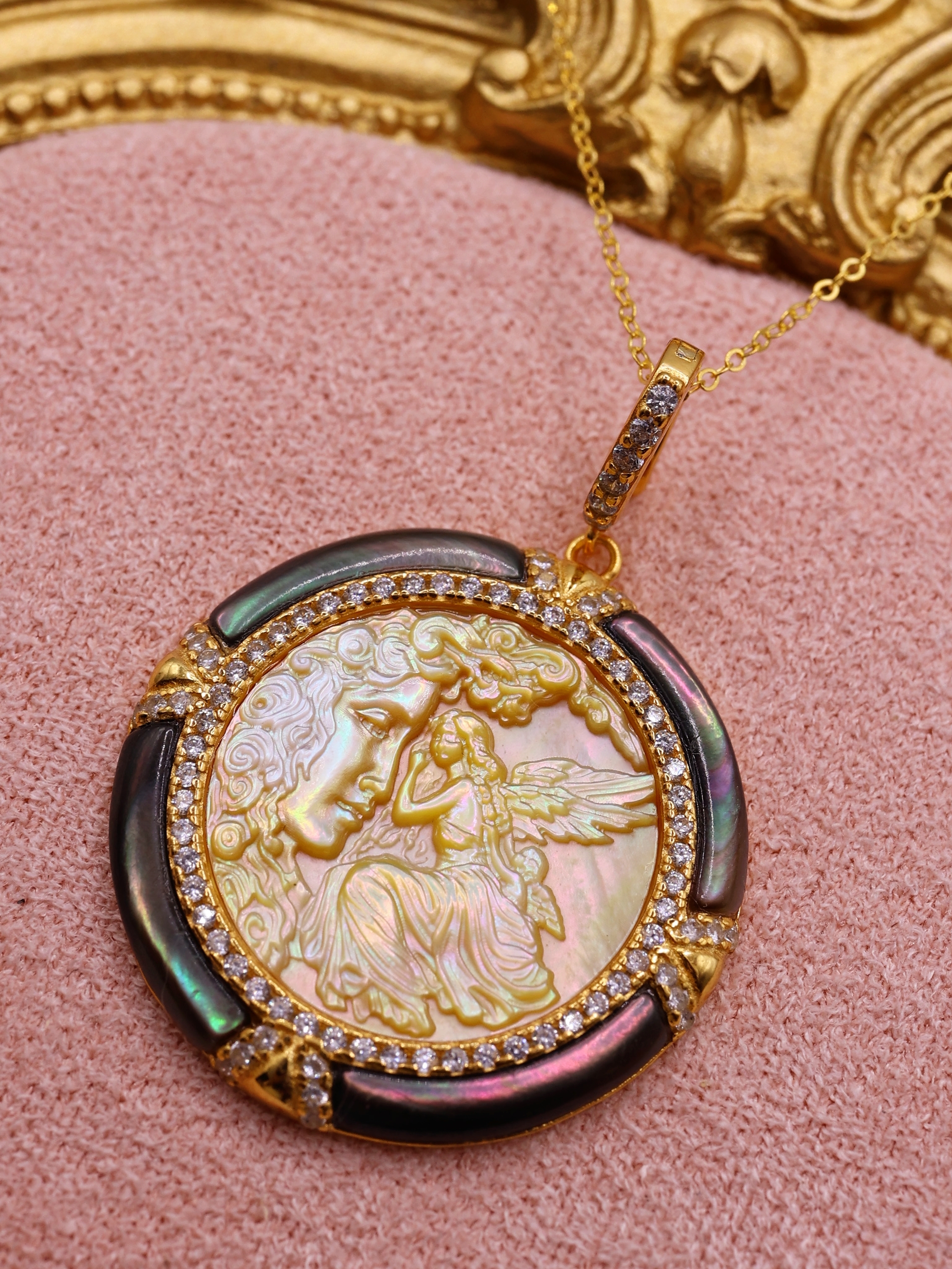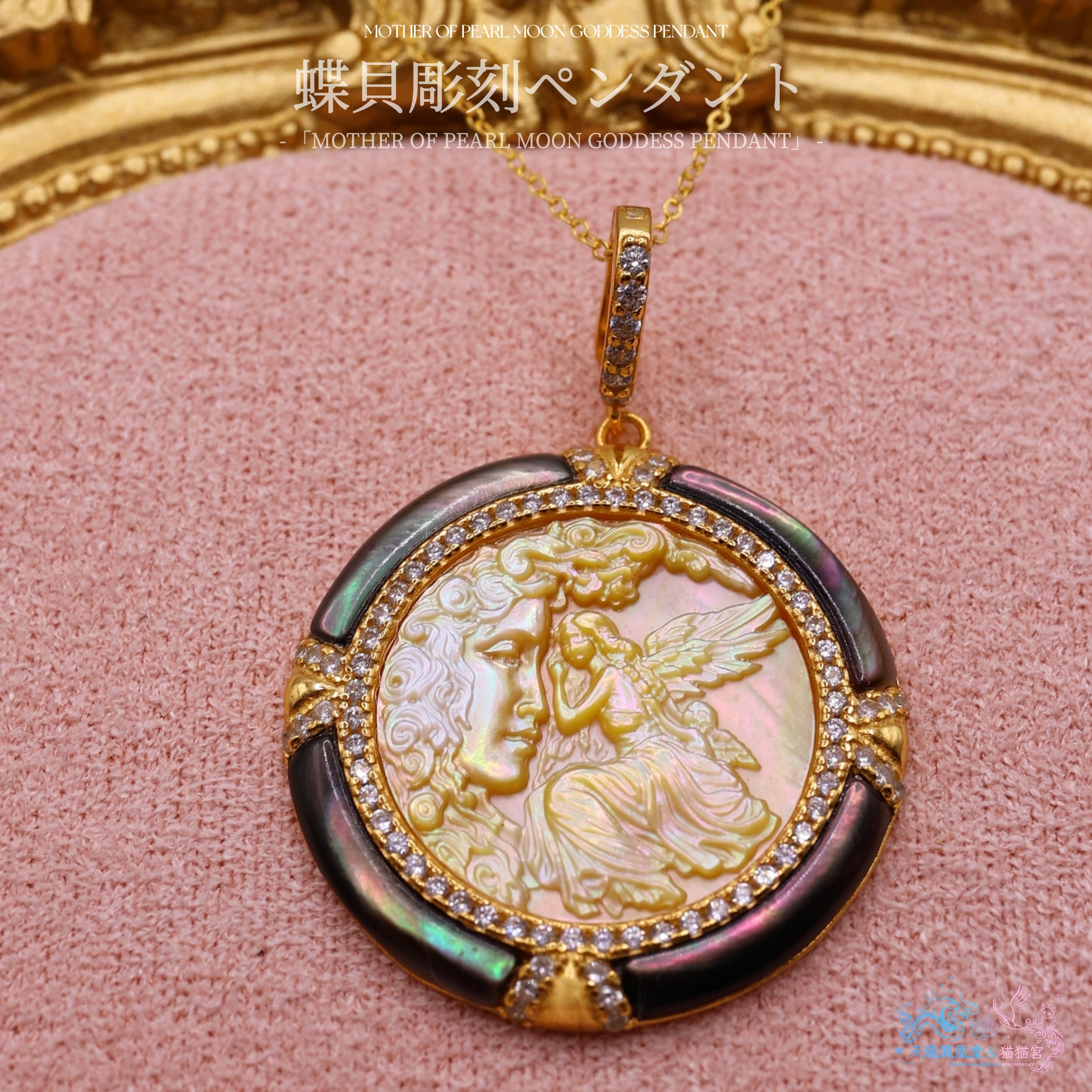 【白蝶貝彫刻シリーズ】月の女神 ペンダント ミュシャ風 天然石 シルバー S925