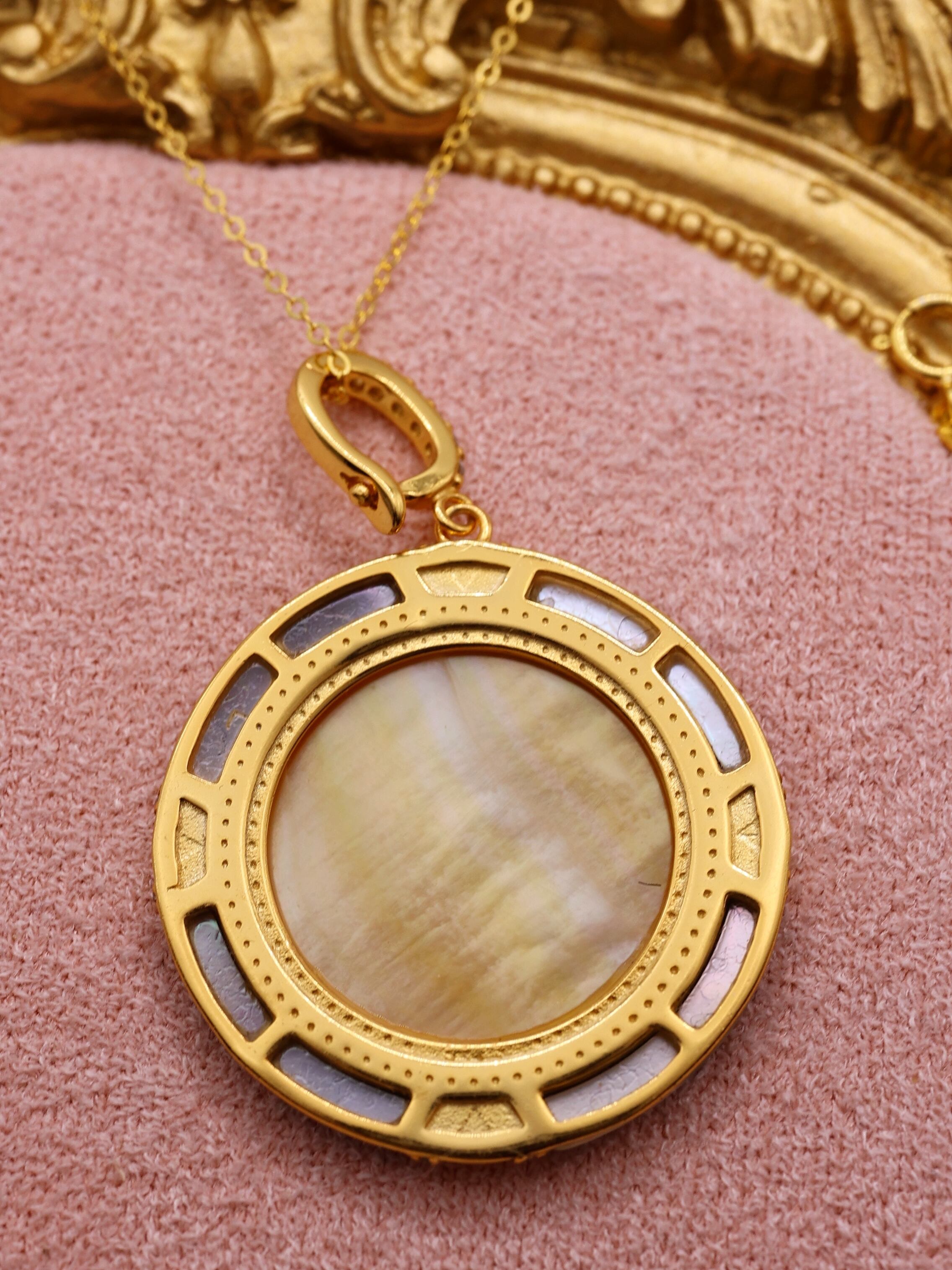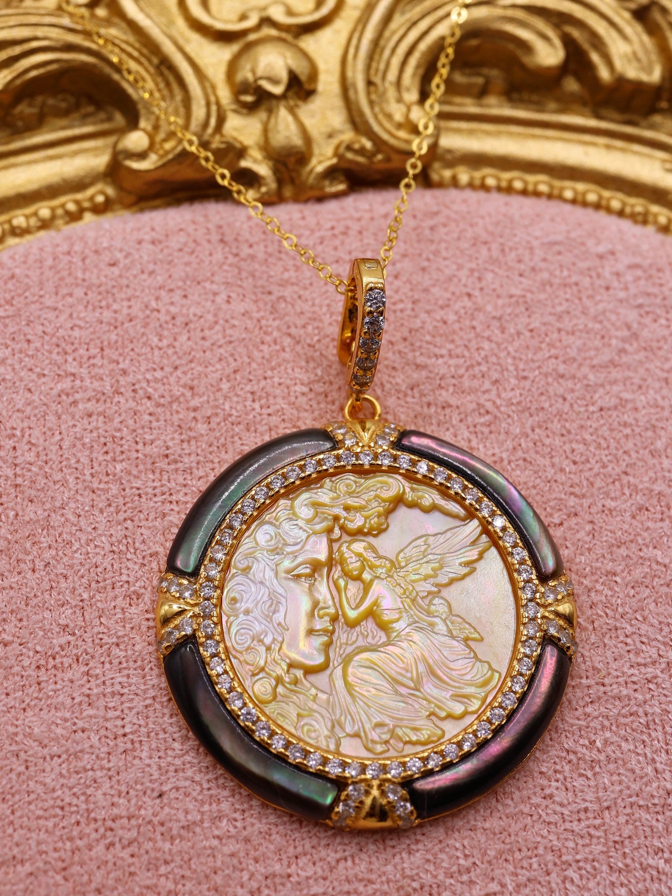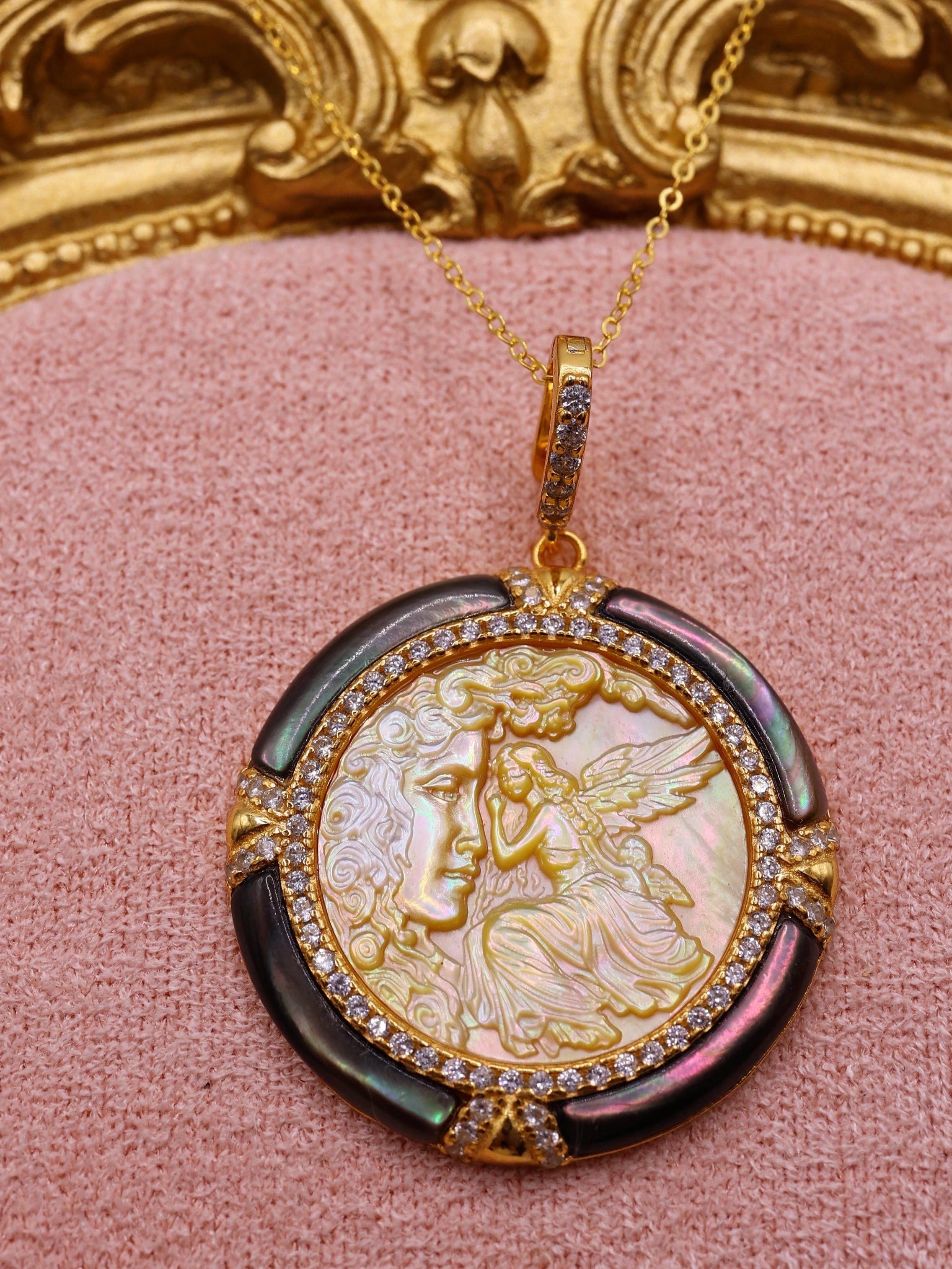 【白蝶貝彫刻シリーズ】月の女神 ペンダント ミュシャ風 天然石 シルバー S925