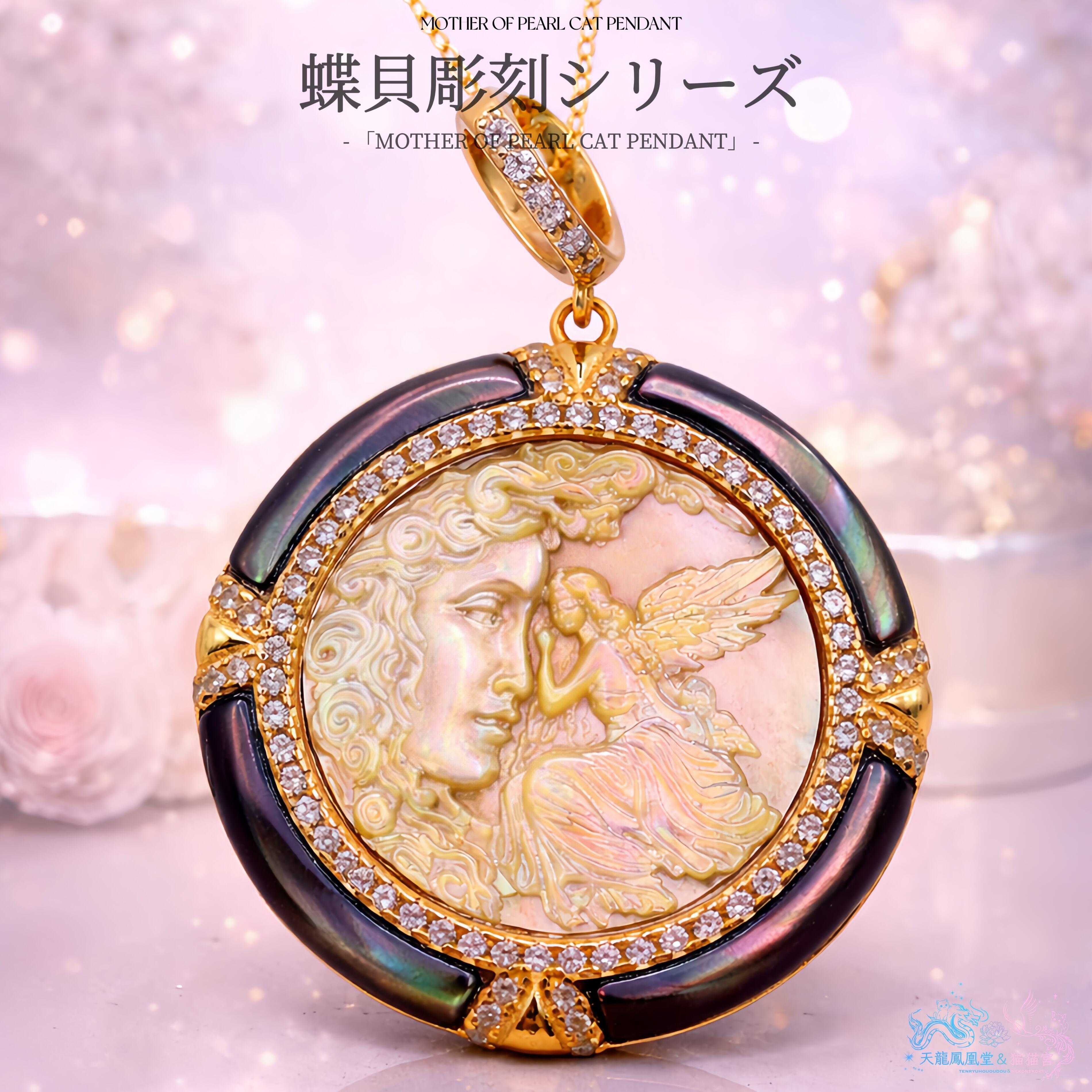 金蝶貝ならではの柔らかな発色は、この幻想的なモチーフと極めて相性が良く、冷たさのない、包み込むような美しさを感じさせます。