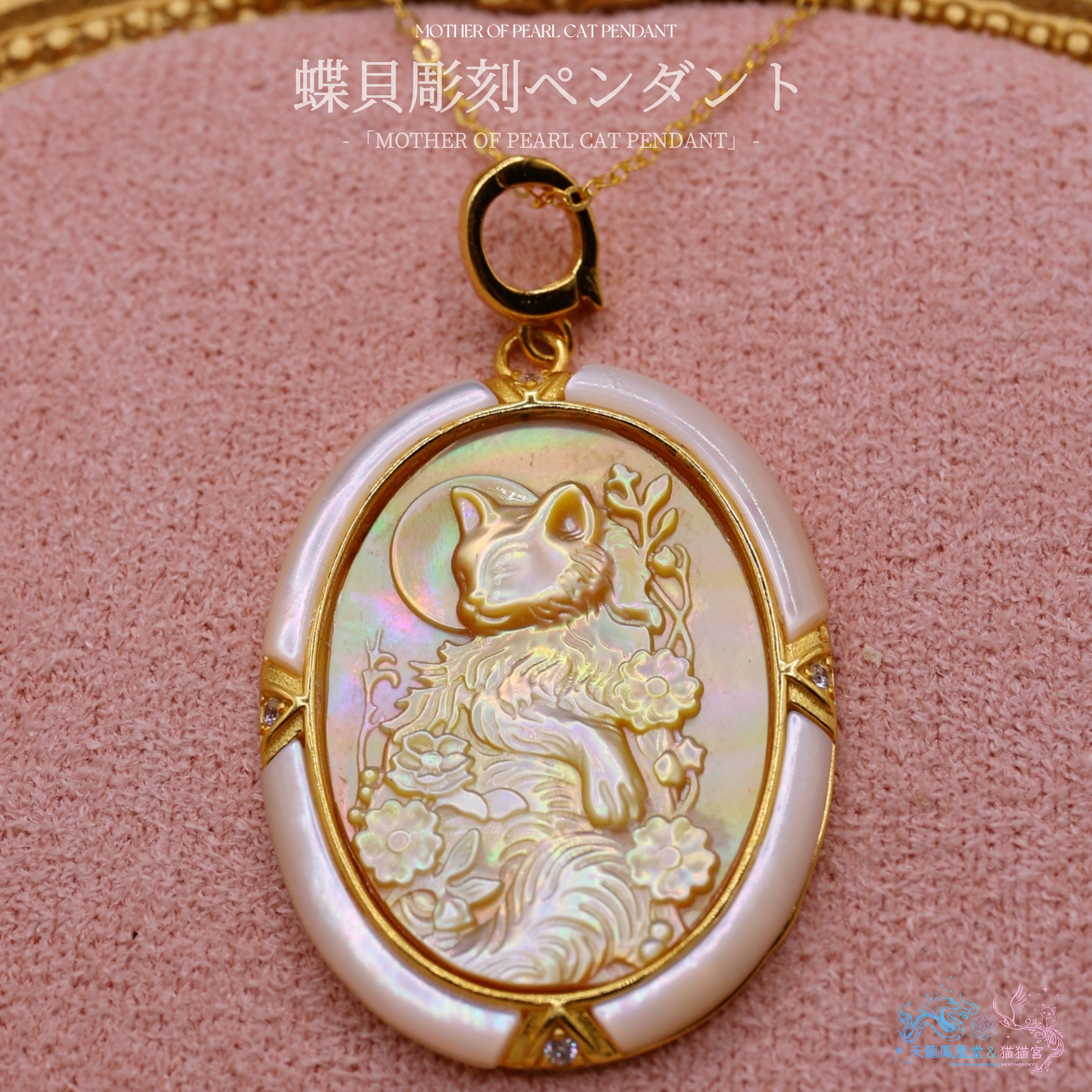 【白蝶貝彫刻シリーズ】猫 ペンダント 天然石 シルバー S925
