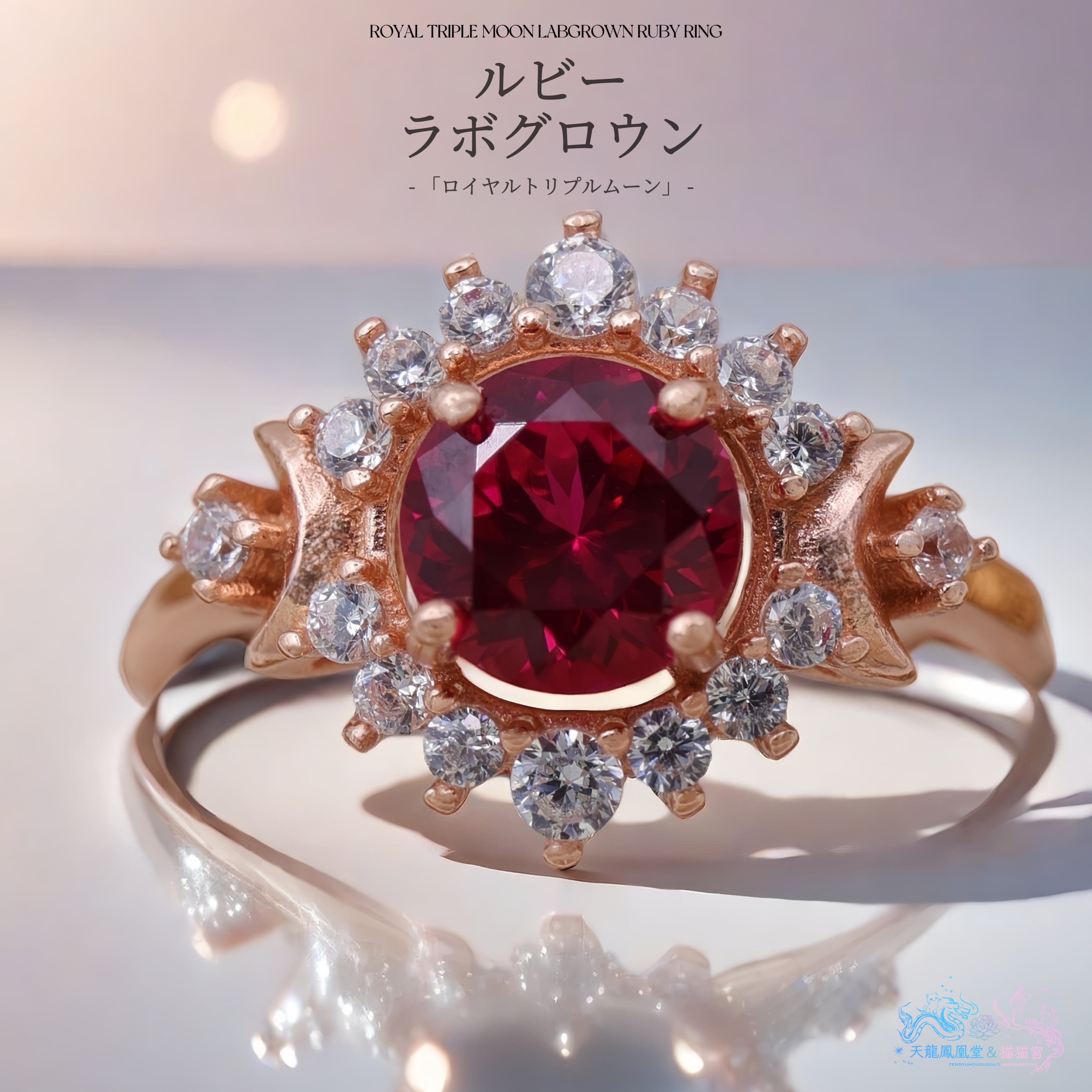 【当店オリジナル】【ロイヤルトリプルムーン】ルビー ラボグロウン リング S925