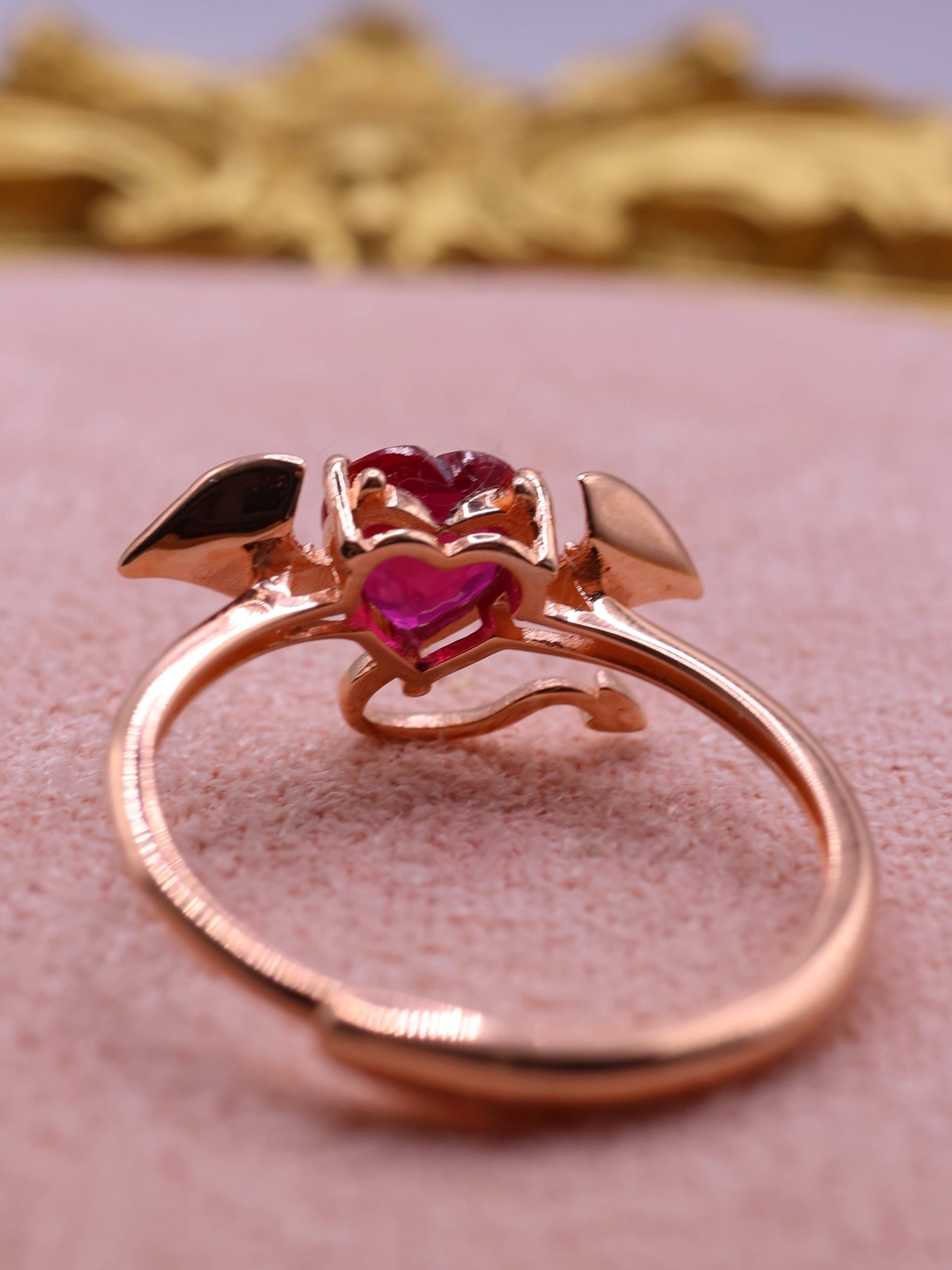 甘さの象徴であるハートと、少し妖しさを感じさせる悪魔デザインを組み合わせることで、可愛いだけでは終わらない、印象に残るリングに仕立てています。