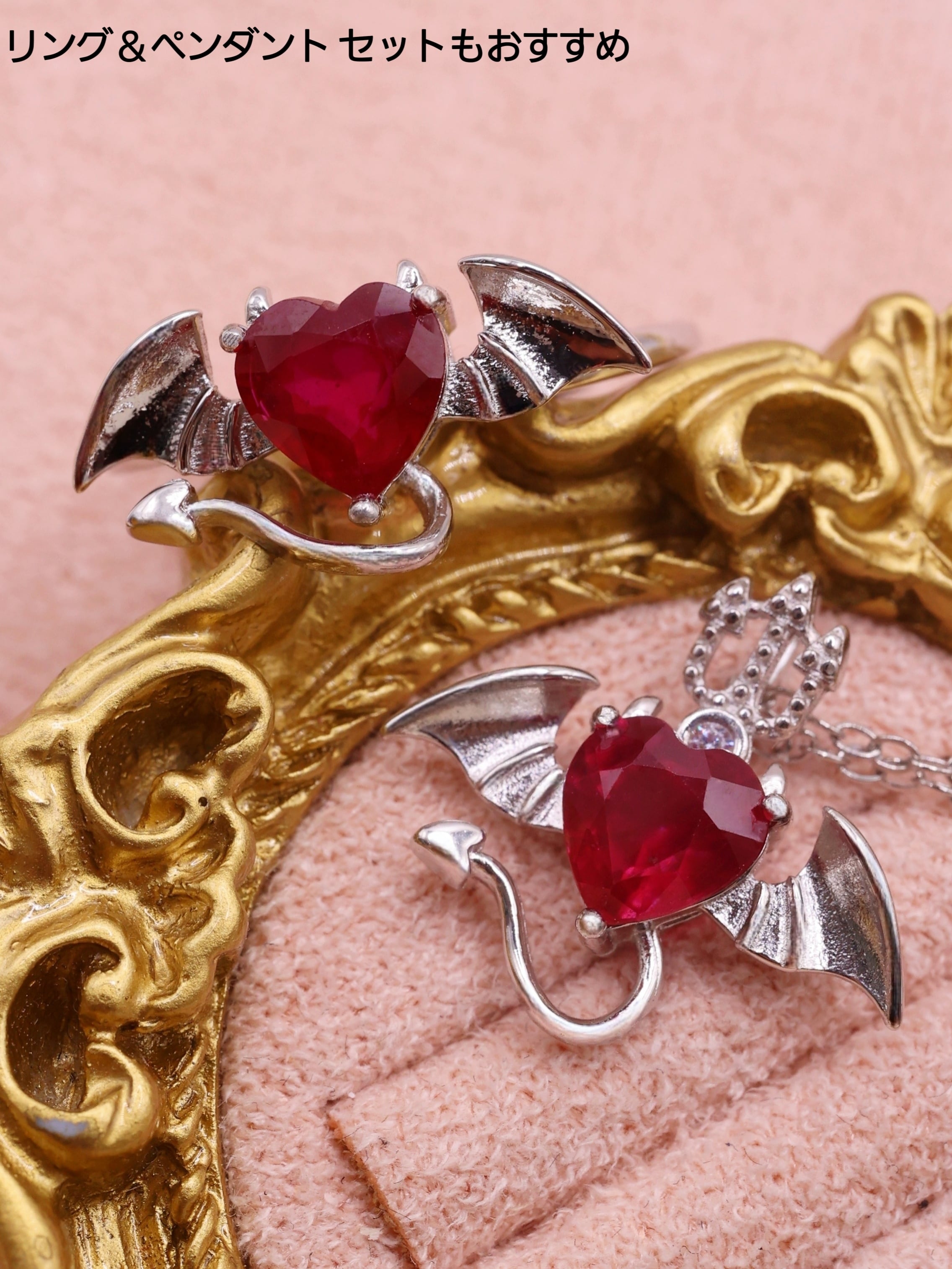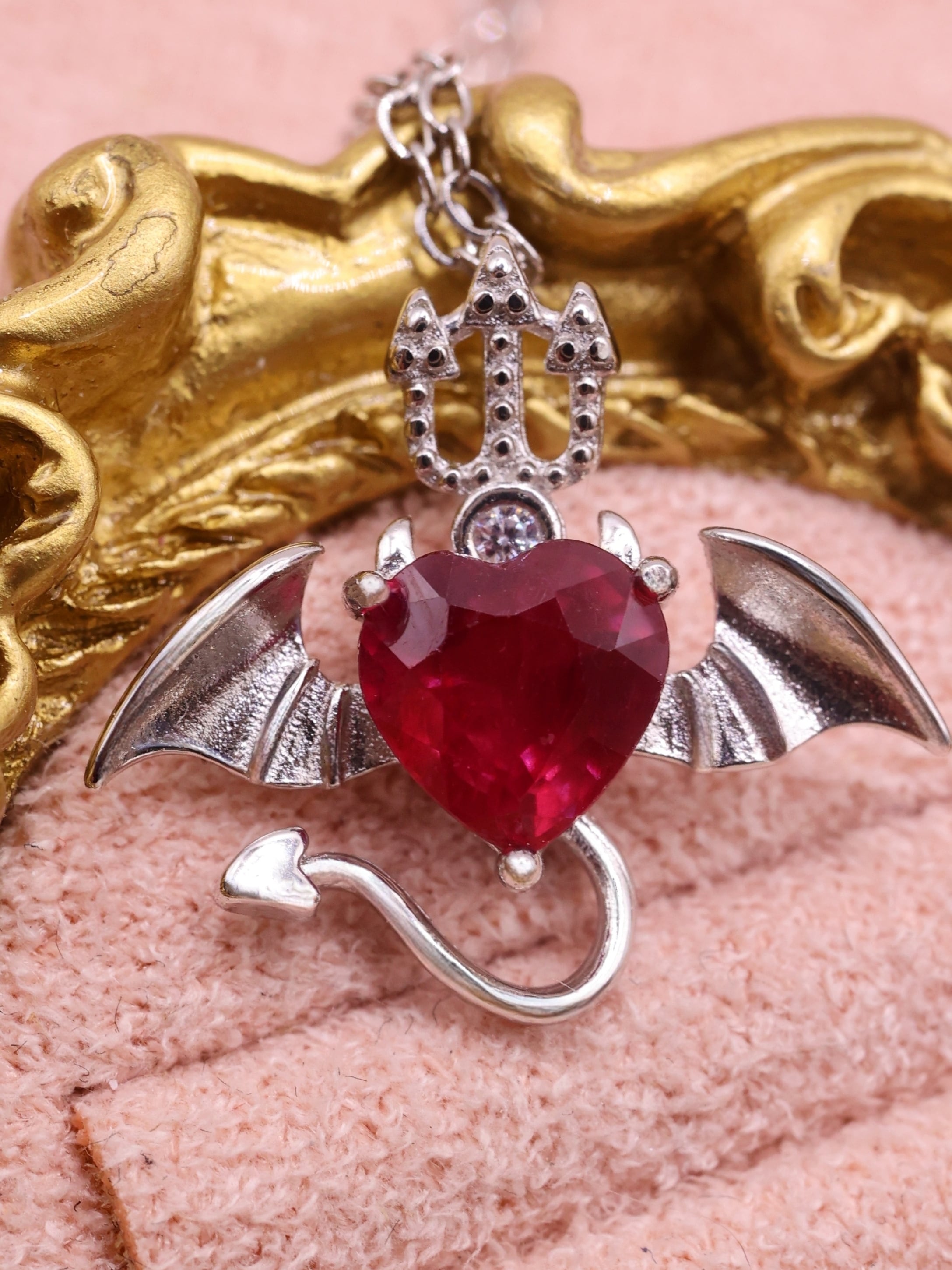 【デビルハート】ルビー 悪魔 ネックレス ペンダント シルバー SV925