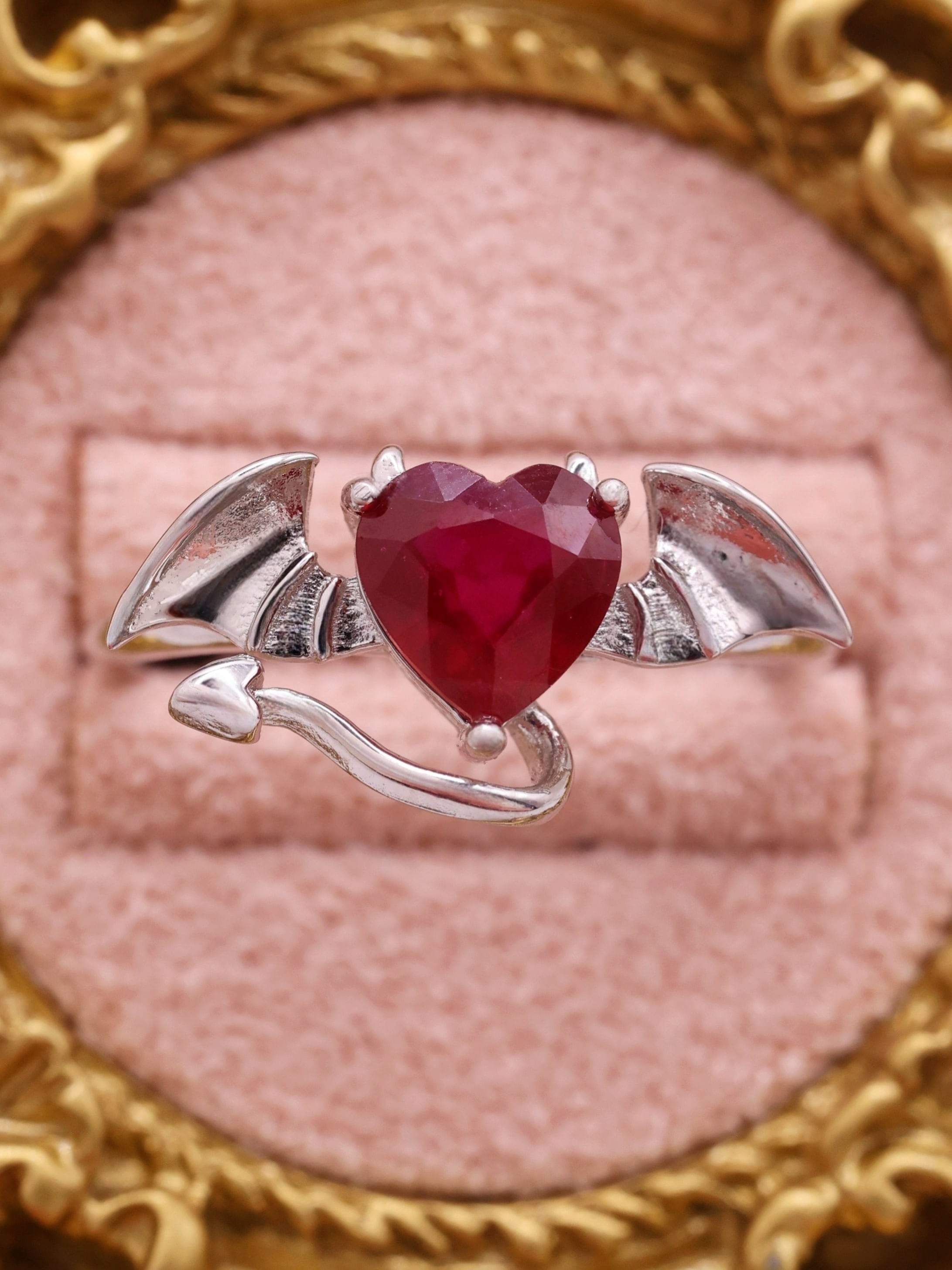 Devil Heart Ruby Ring – Rhodium Ver.