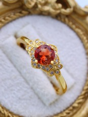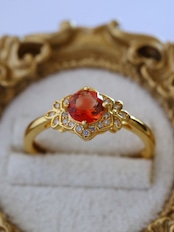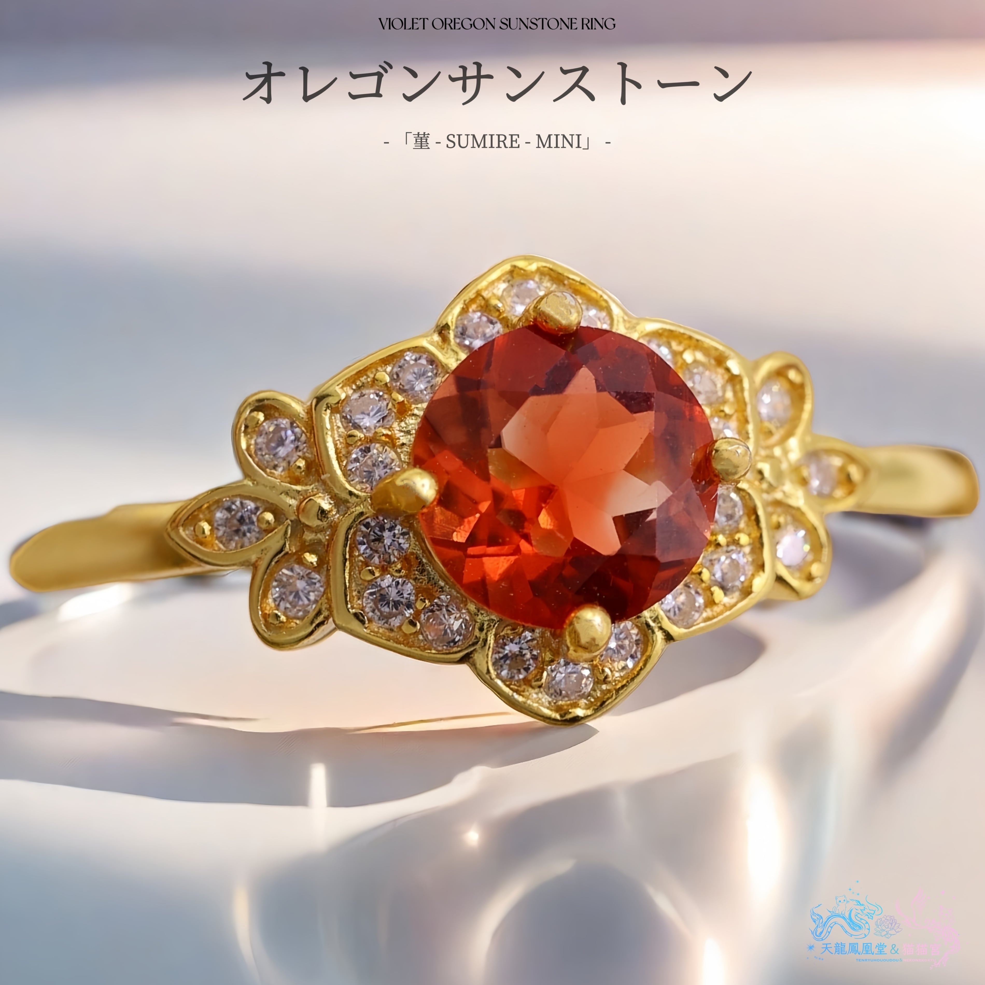 アメリカ・オレゴン州産の天然オレゴンサンストーンを主石に用いた、繊細で気品あるリングです。
