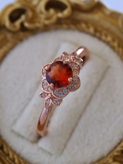 アメリカ・オレゴン州産の天然オレゴンサンストーンを主石に用いた、繊細で気品あるリングです。