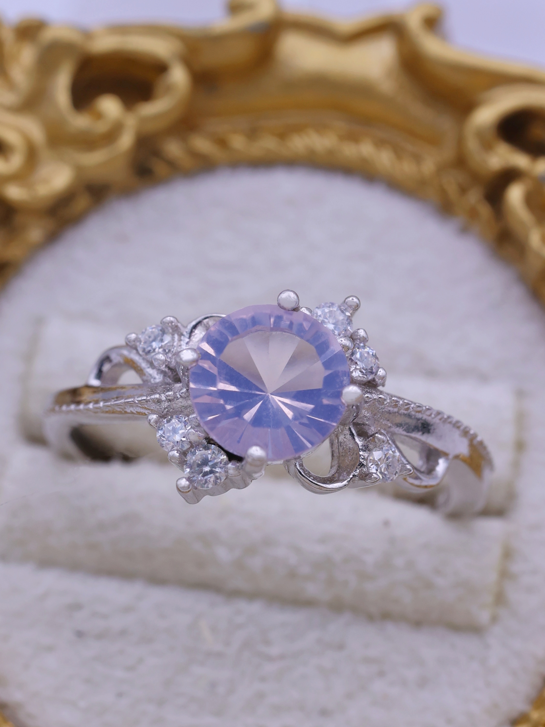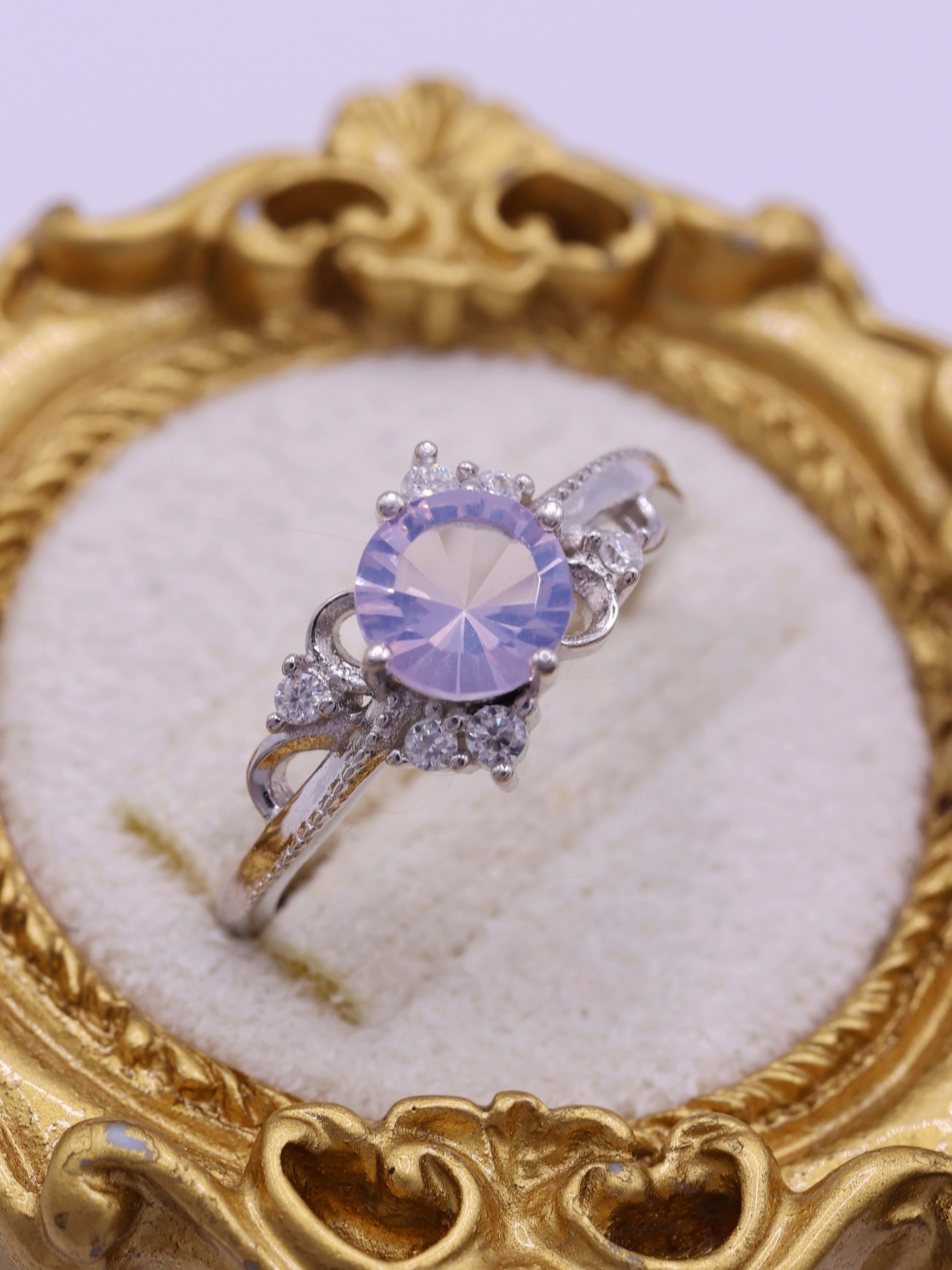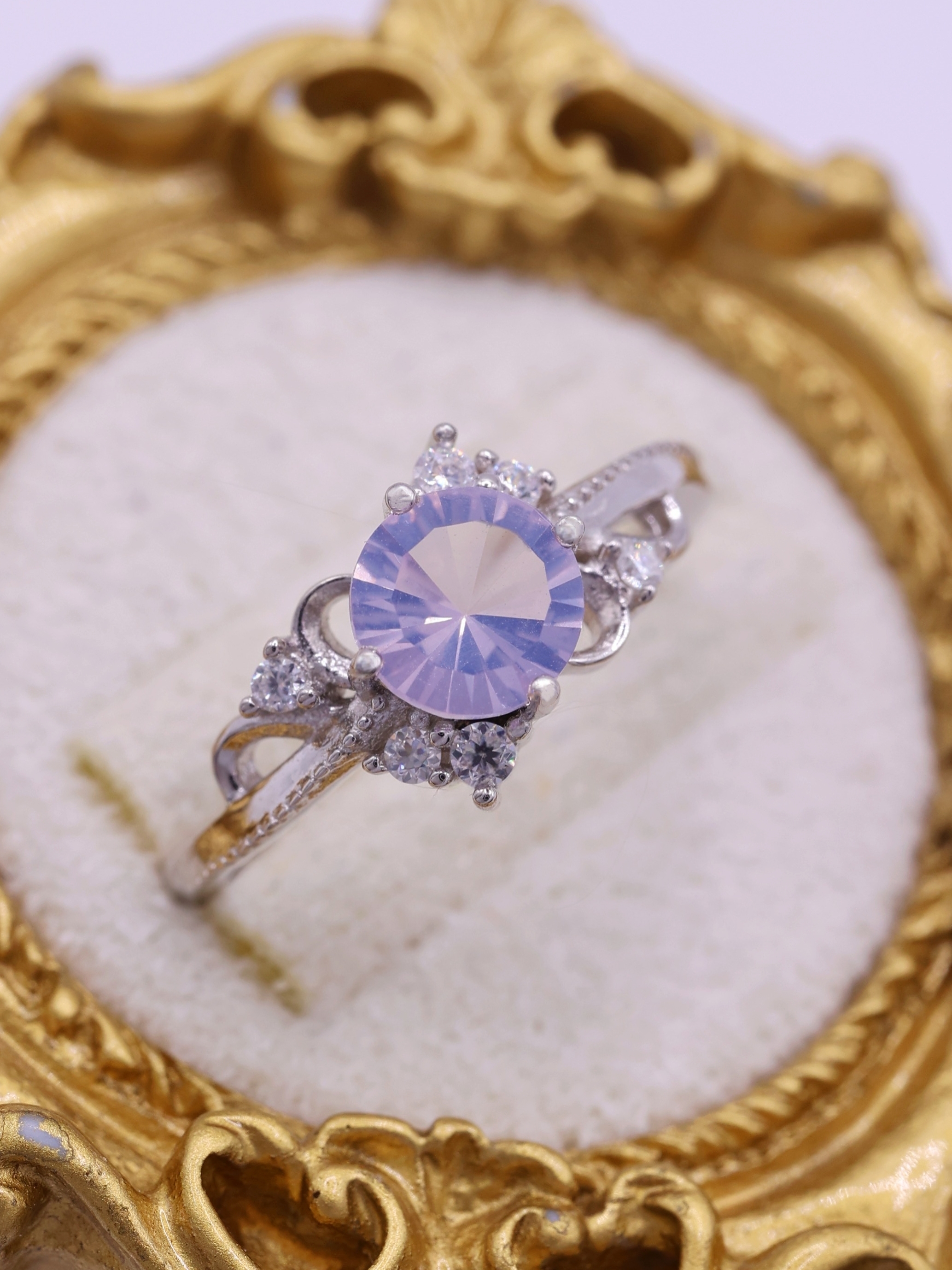 淡く、やわらかな藤色を宿したスコロライトを主役にしたリング。