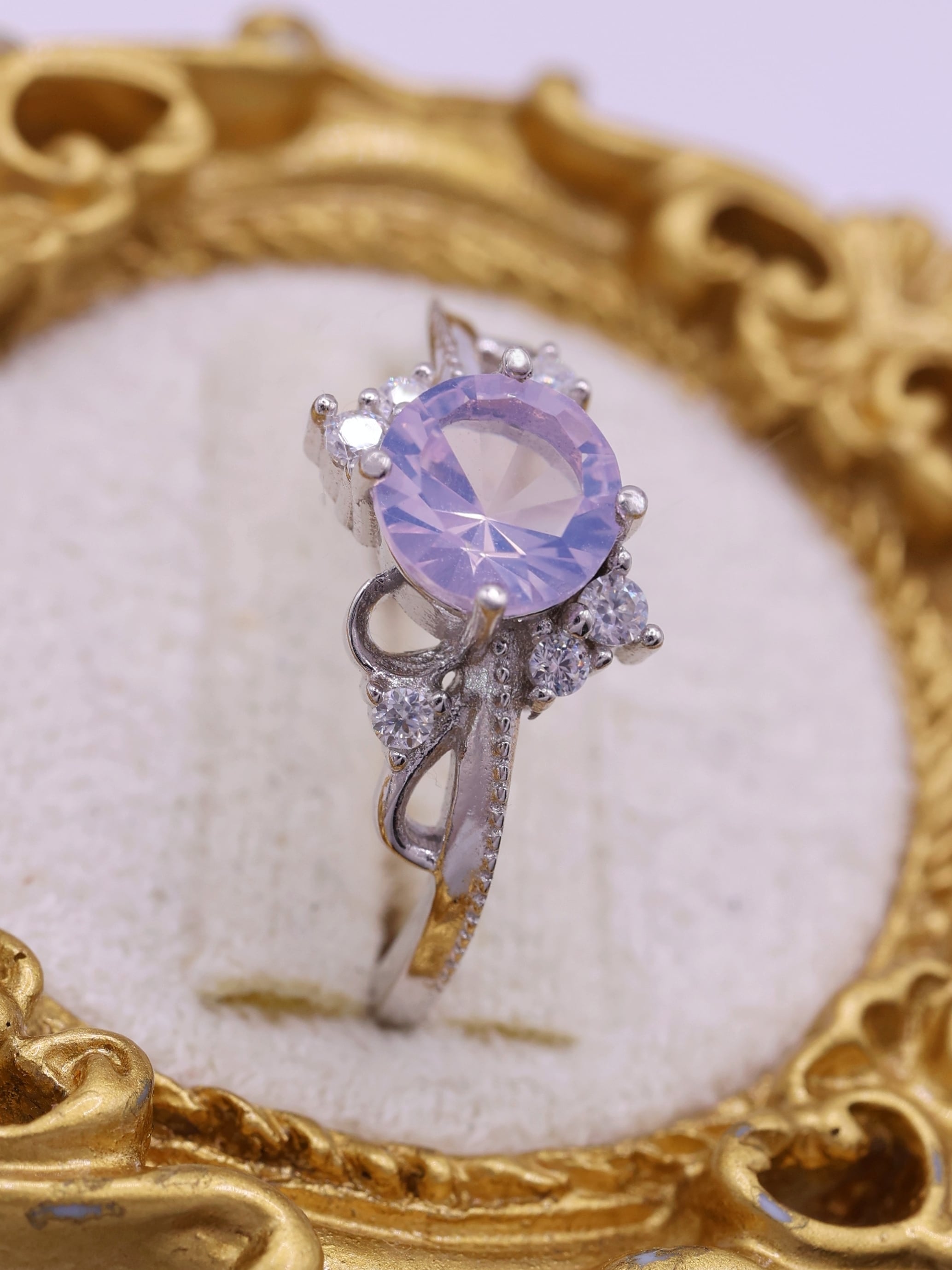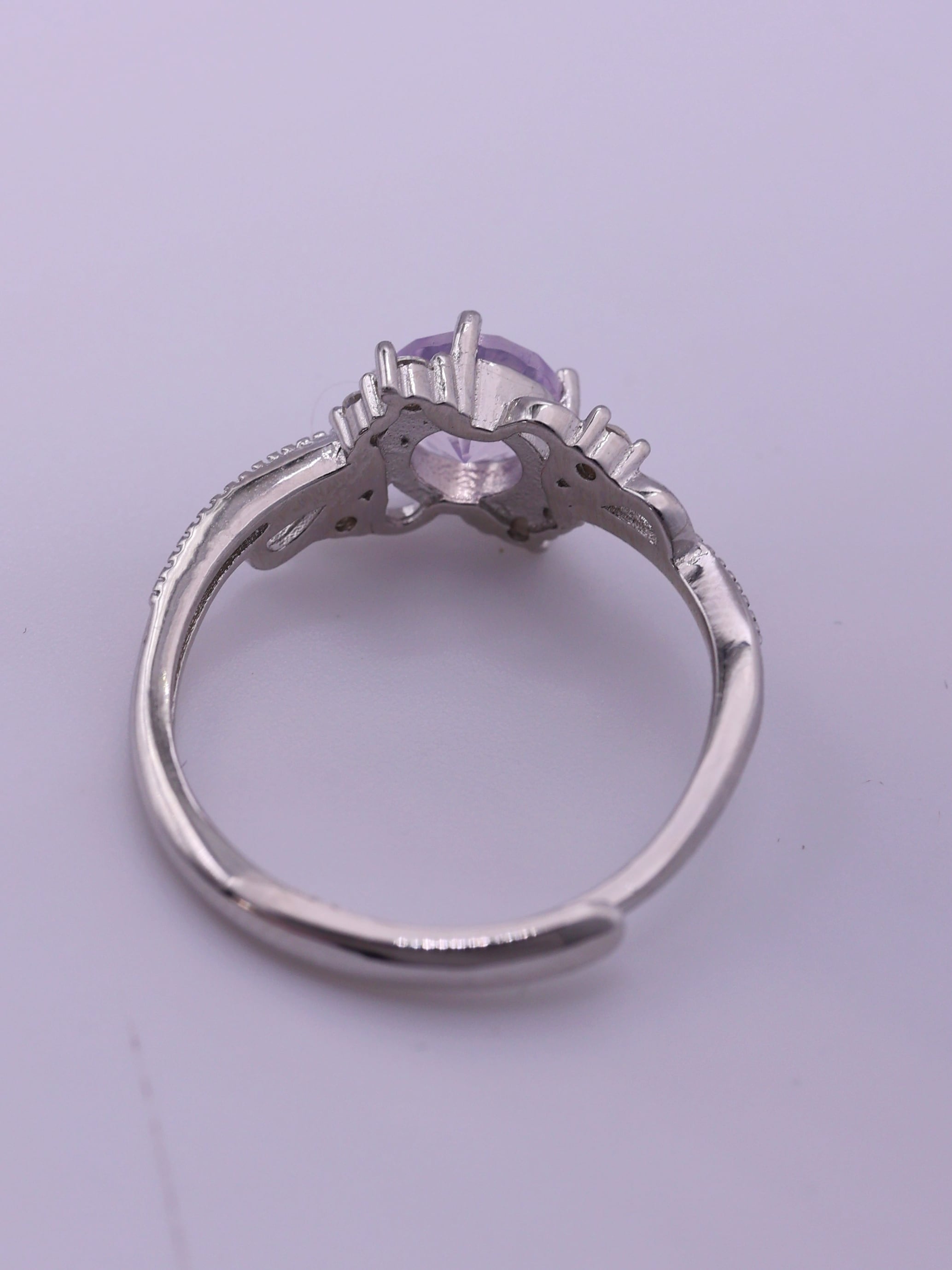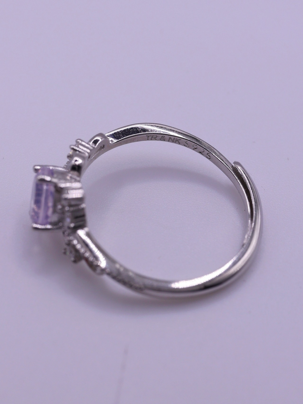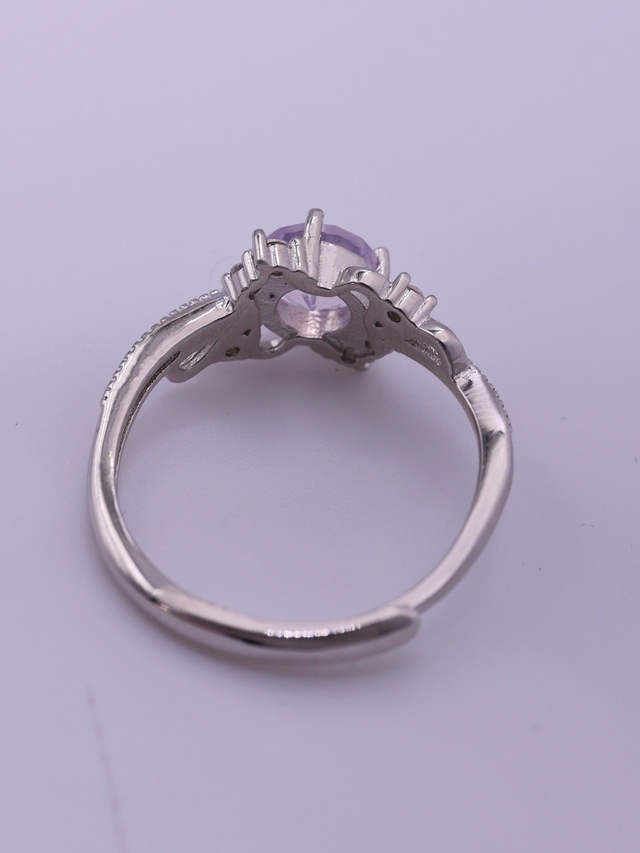 淡く、やわらかな藤色を宿したスコロライトを主役にしたリング。